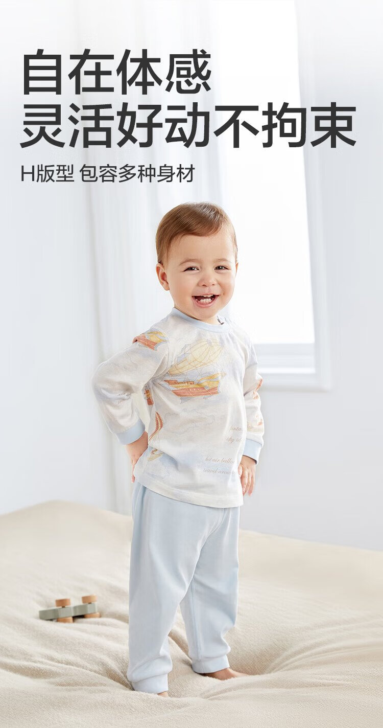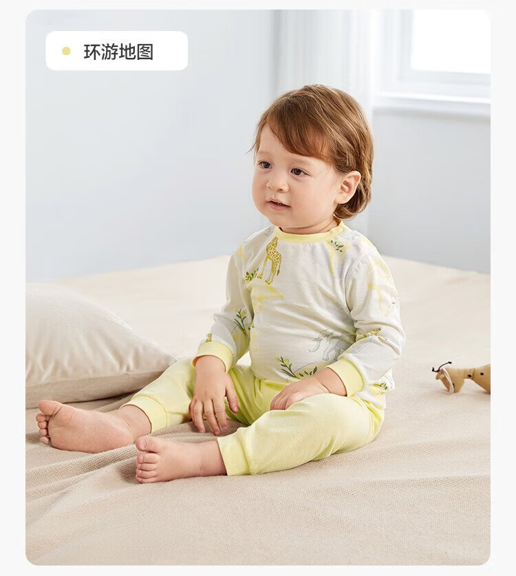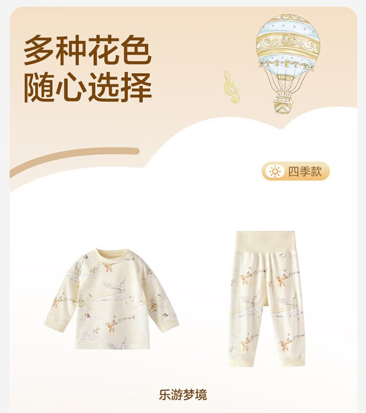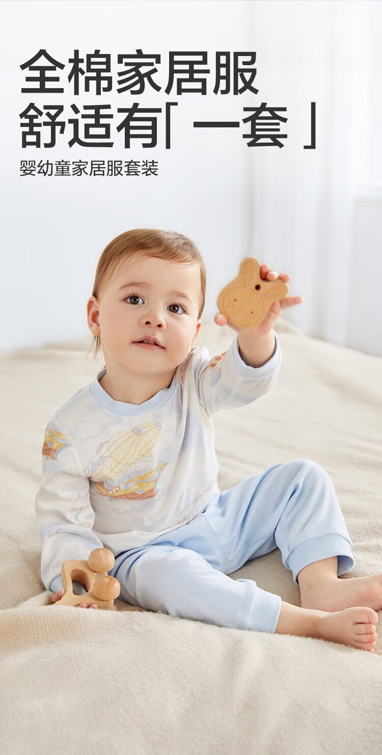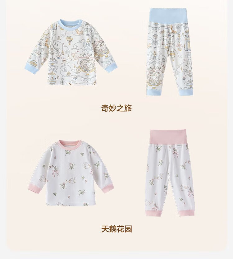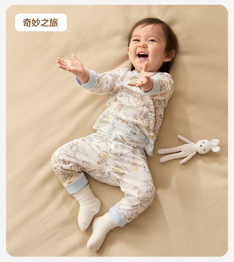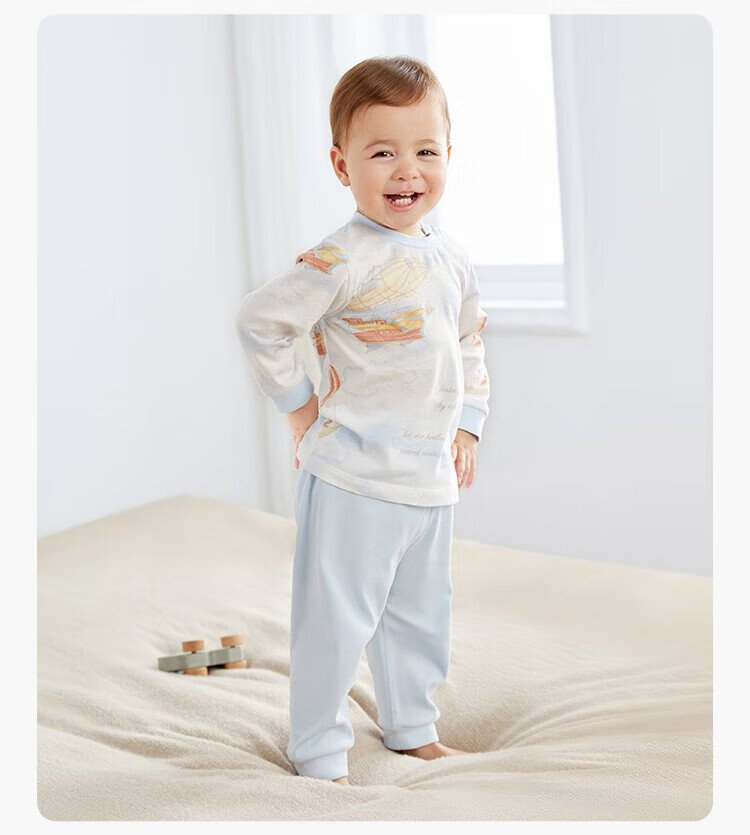 Cotton Era Infant and Toddler Home Clothes Set Pure Cotton Comfortable and Breathable Long Sleeve Round Neck Bottoming Clothes Fairy Tale Tree House 90 Sizes