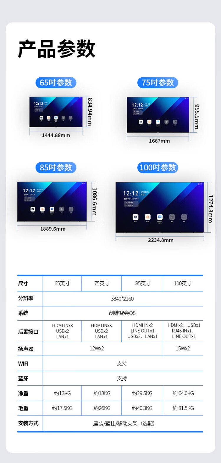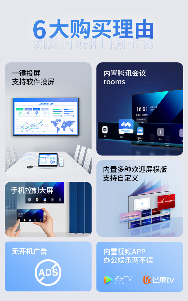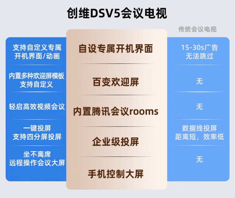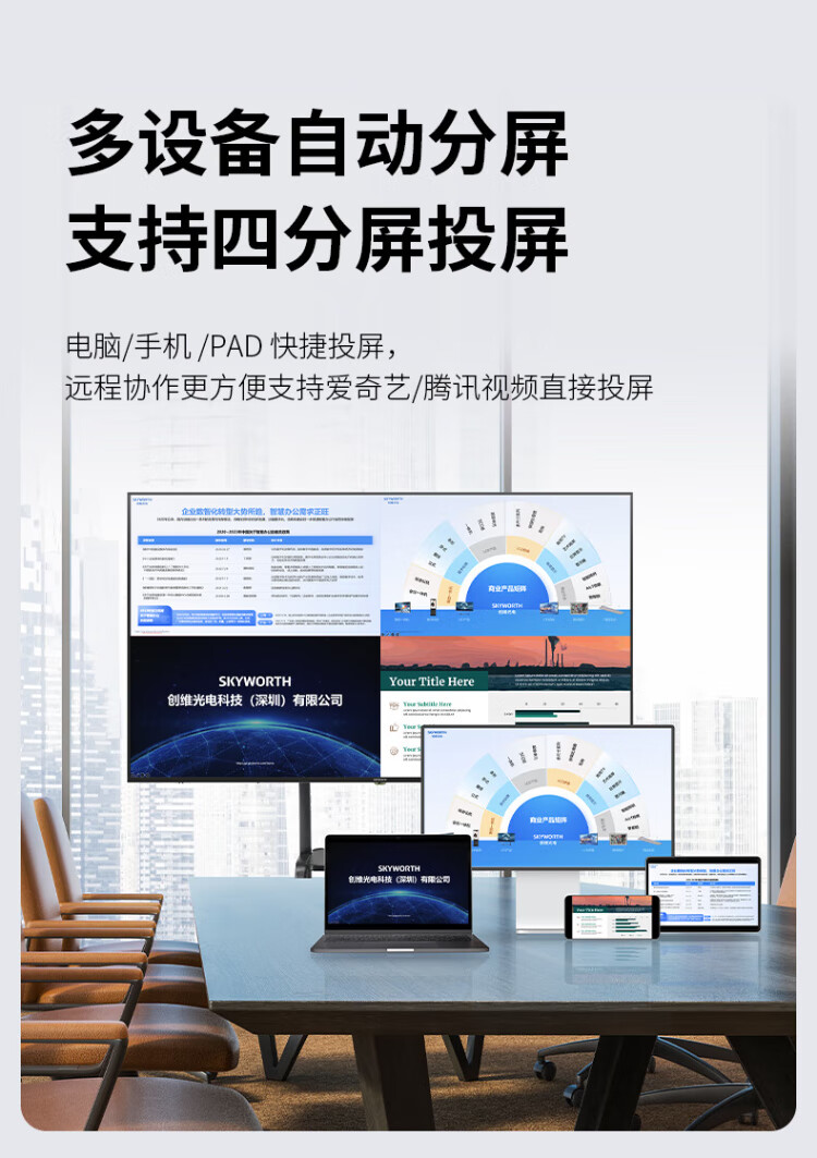 Skyworth 65-inch conference video conference flat-panel TV all-in-one 4K ultra-clear mobile ultra-thin wireless projection smart display office training commercial teaching large screen 65DSV5