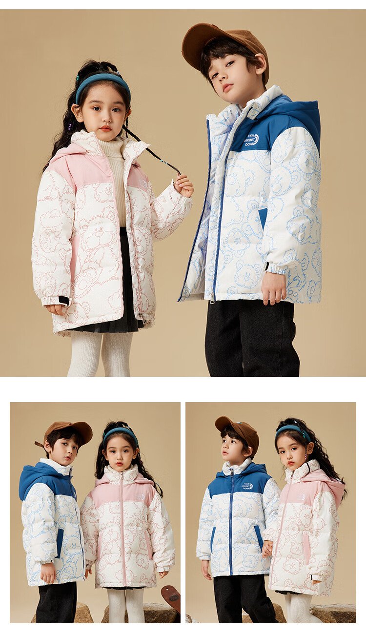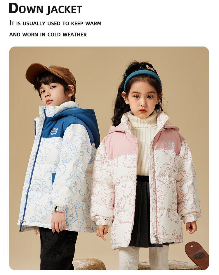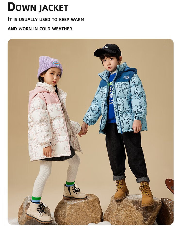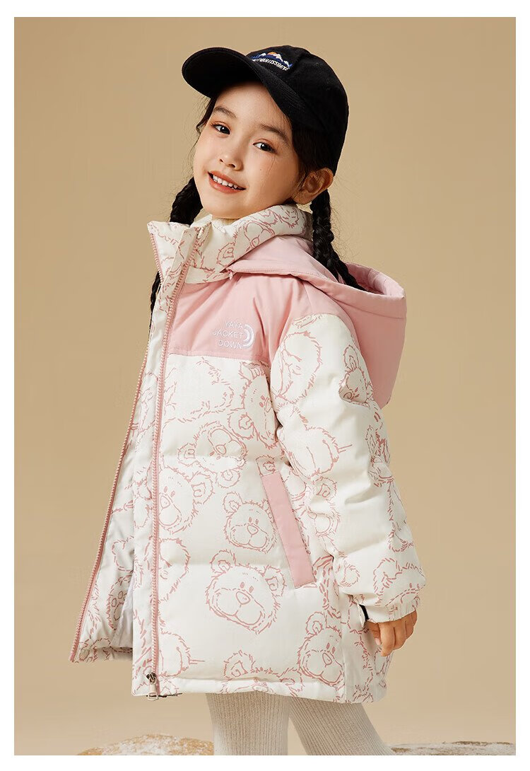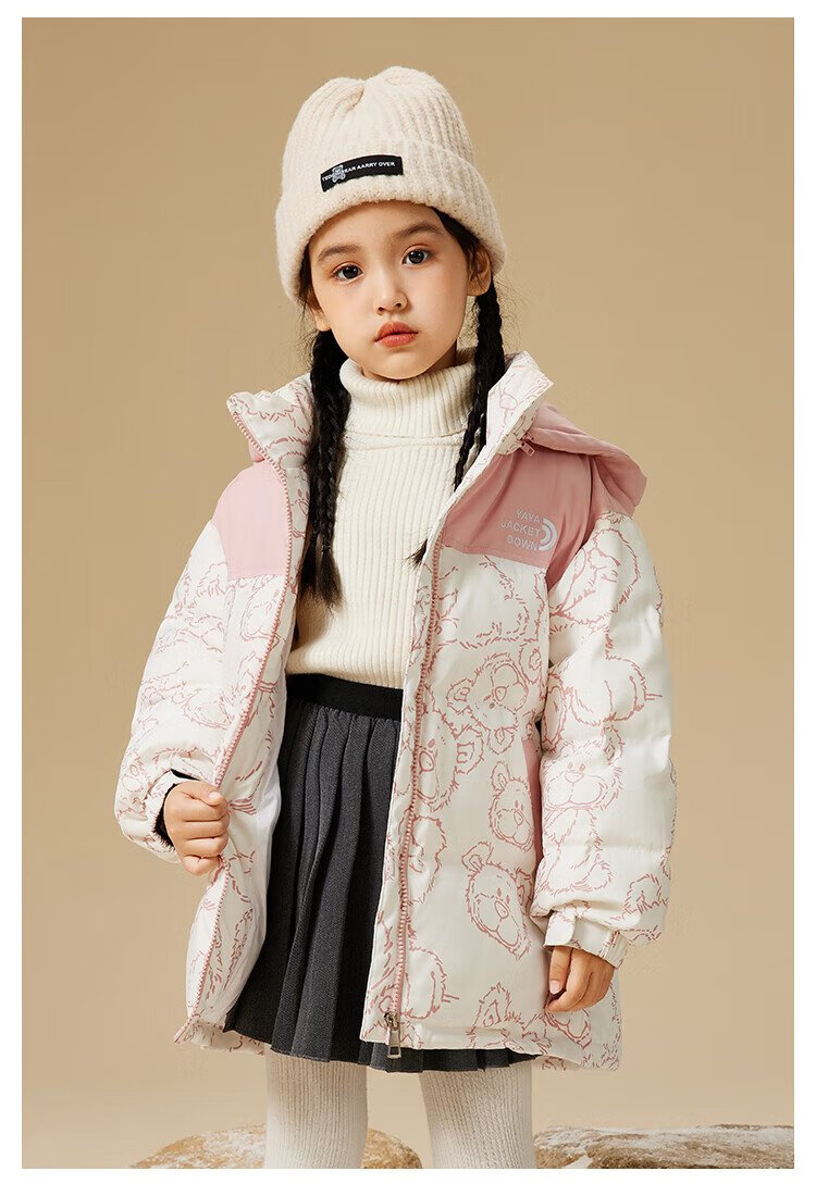 Ducky children's down jacket for men, women, middle and large children 2024 new loose warm thickened short children's jacket pink 140