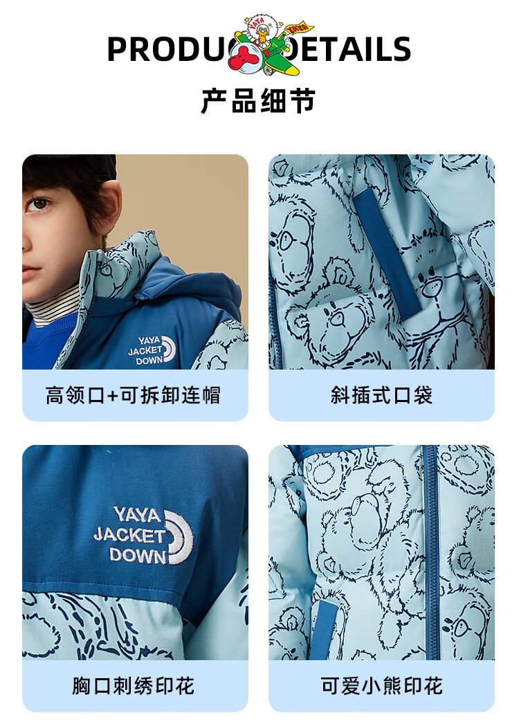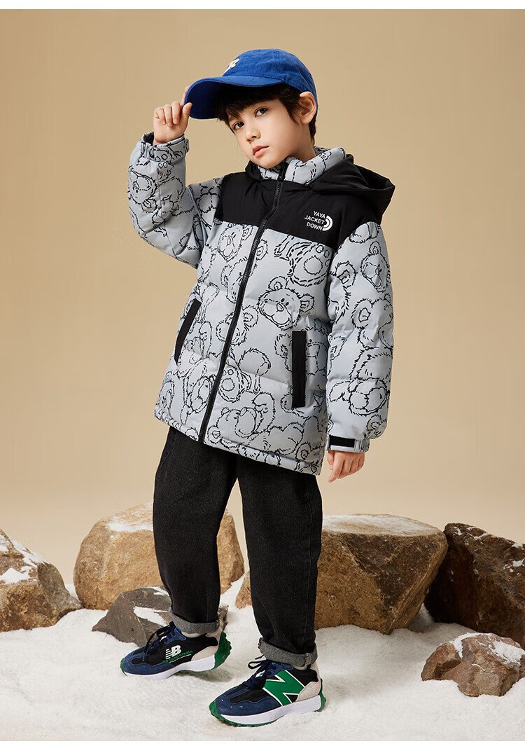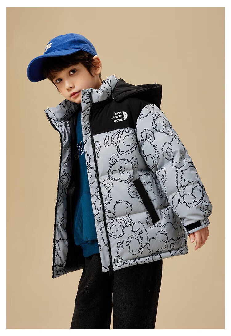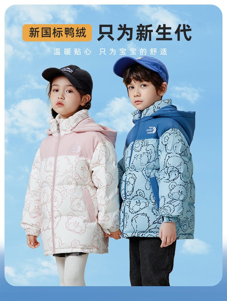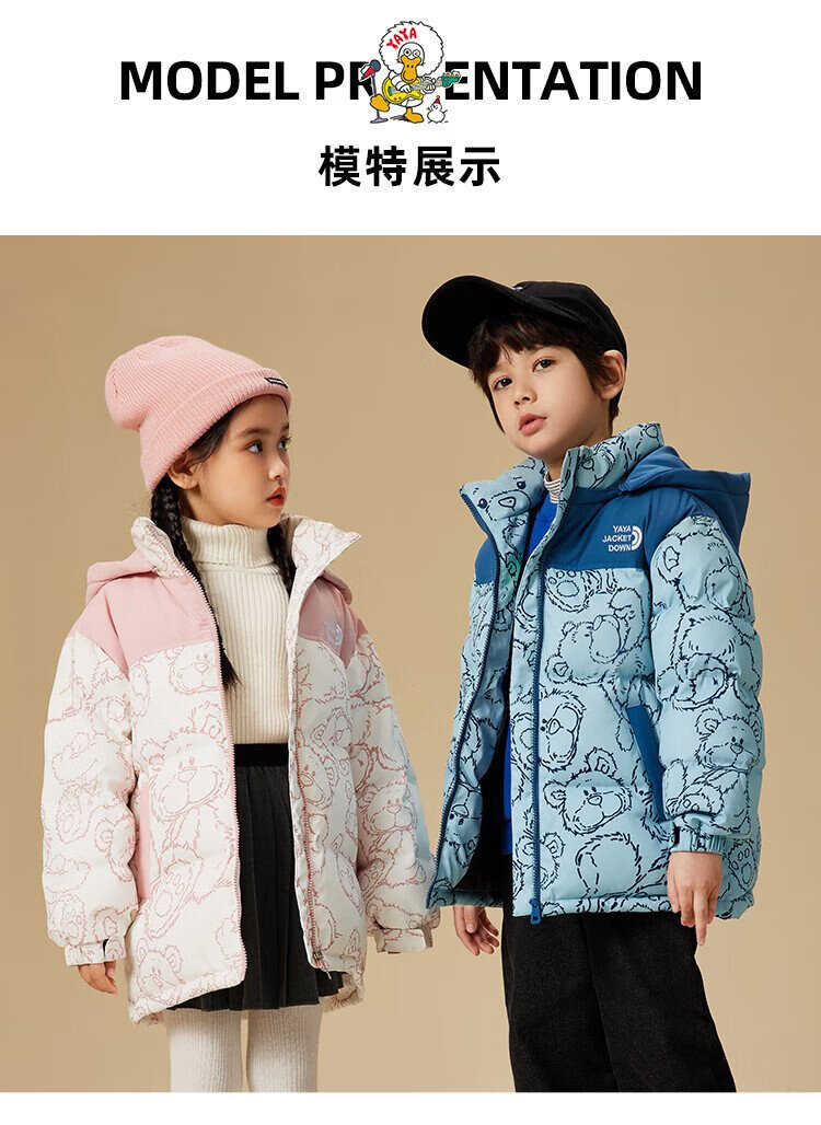 Ducky children's down jacket for men, women, middle and large children 2024 new loose warm thickened short children's jacket pink 140