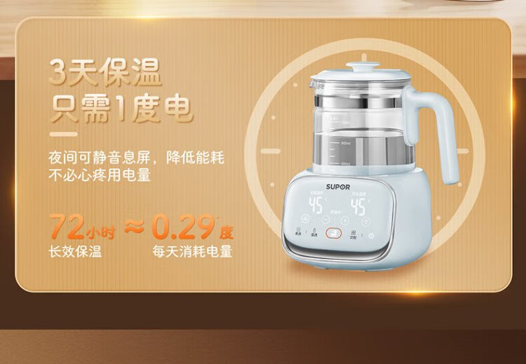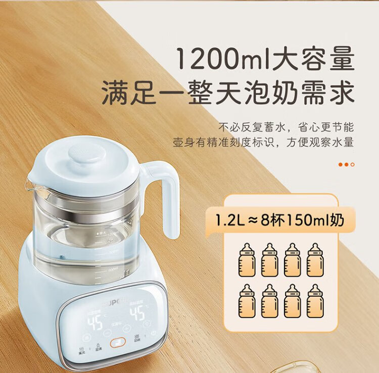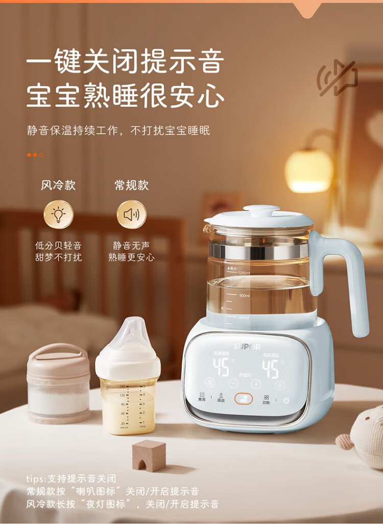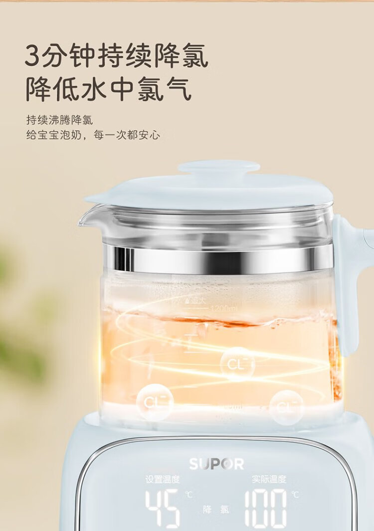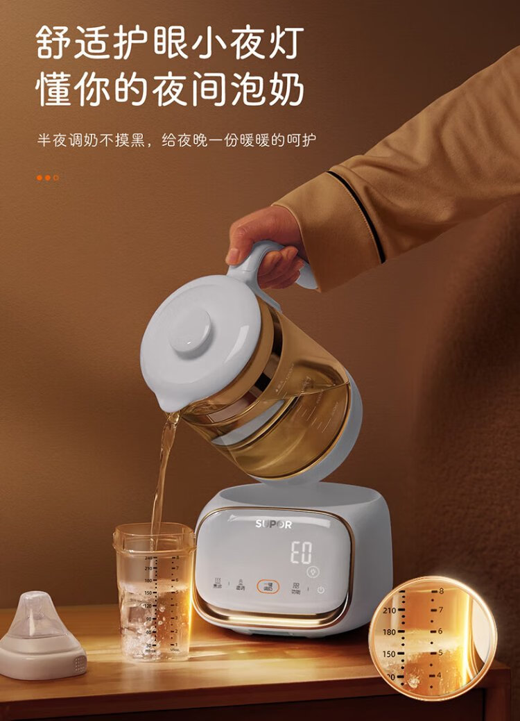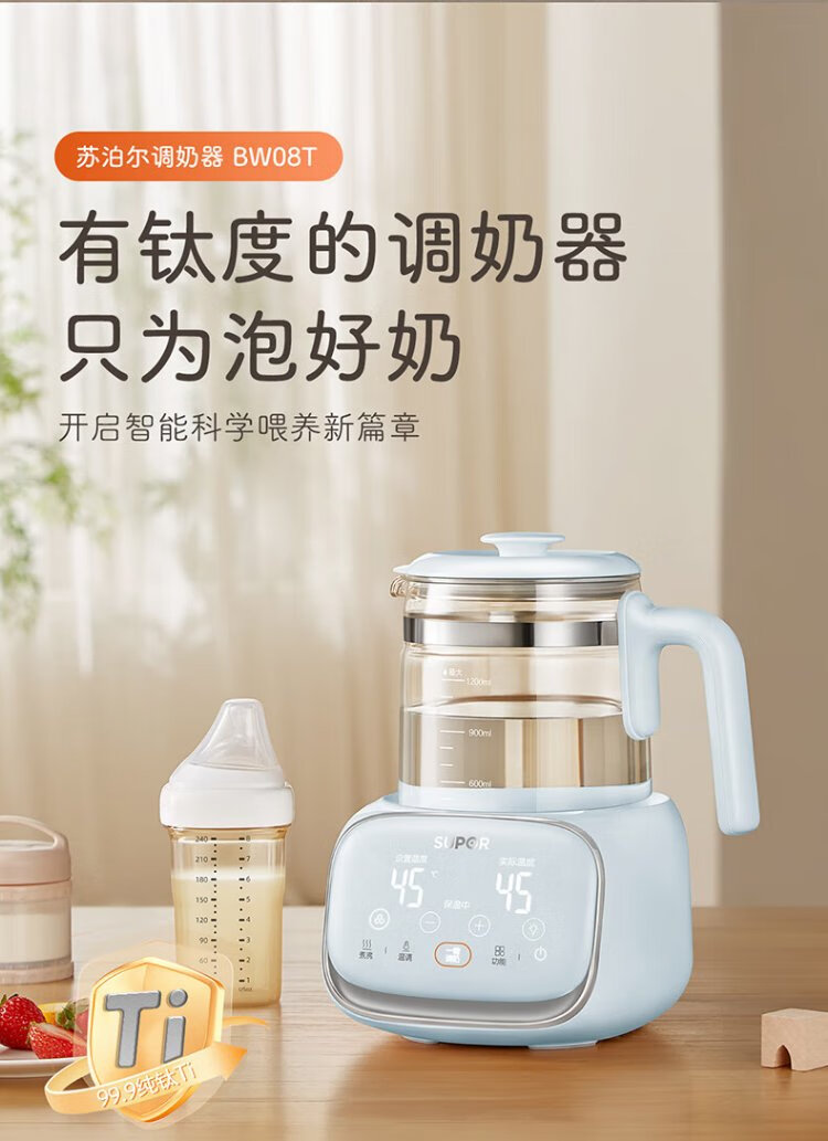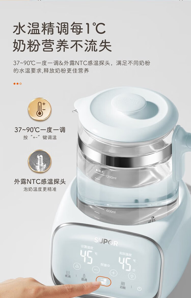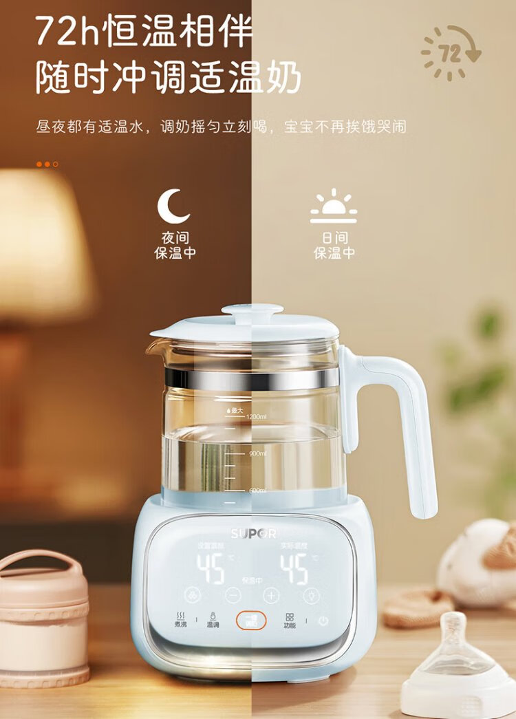 苏泊尔(SUPOR)恒温水壶 婴儿调奶器 宝宝玻璃纯钛烧水壶 泡奶粉机1.2L BW08T