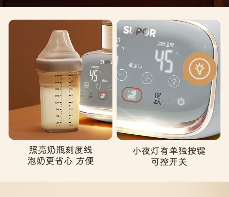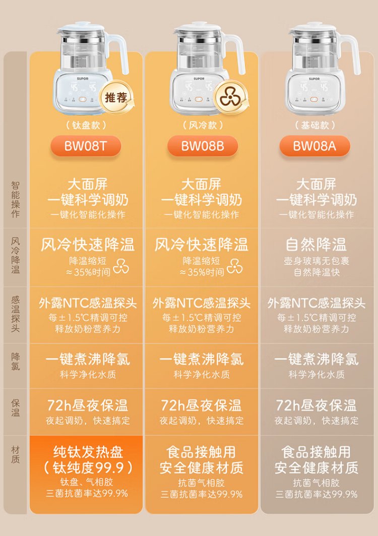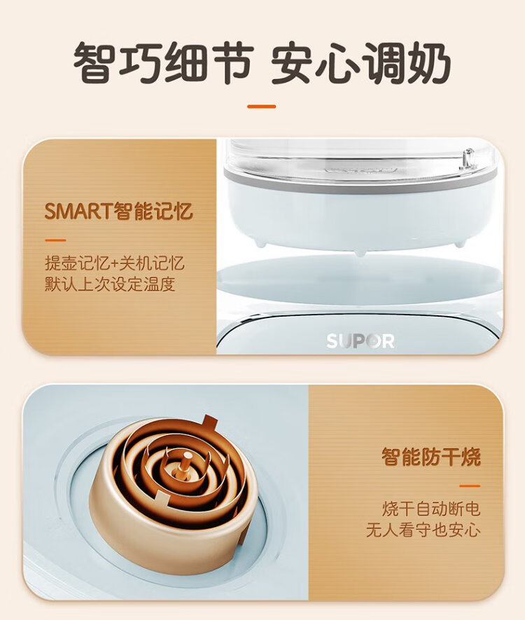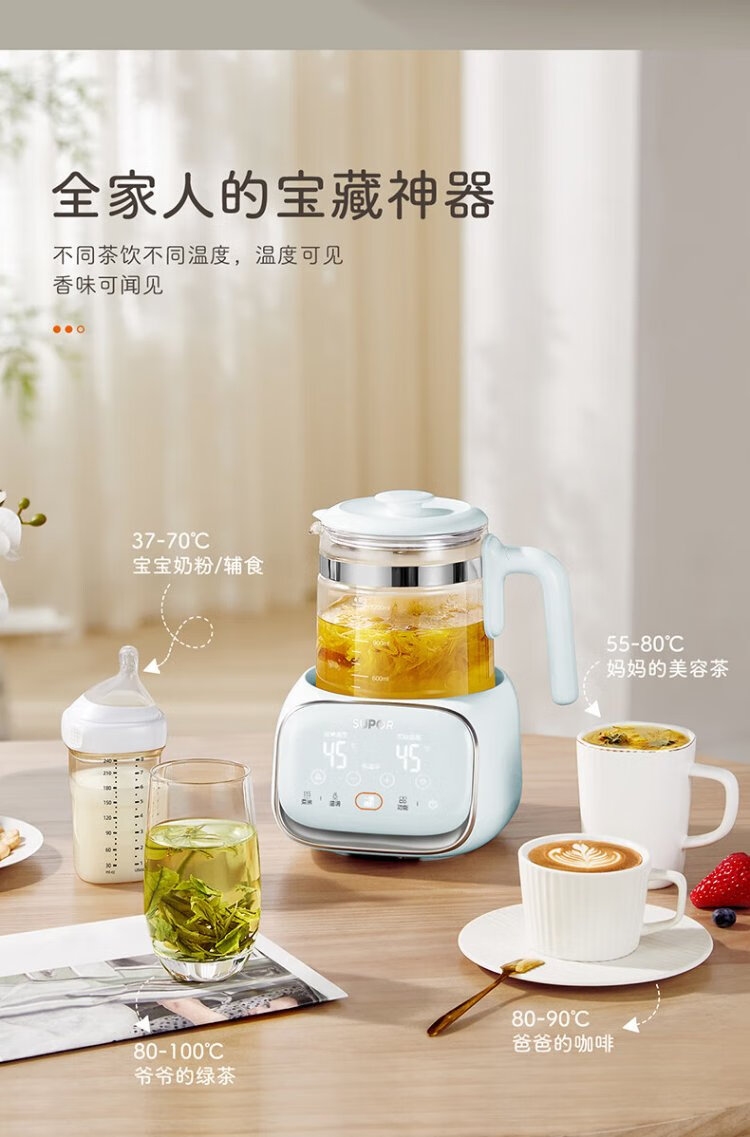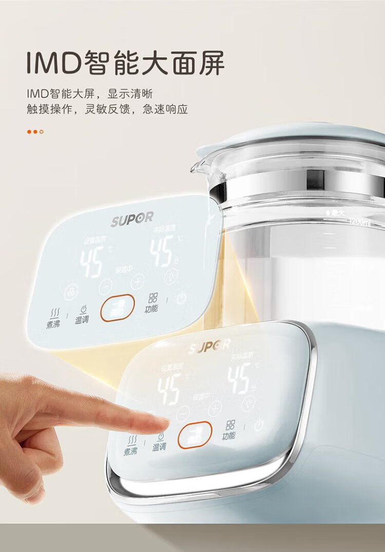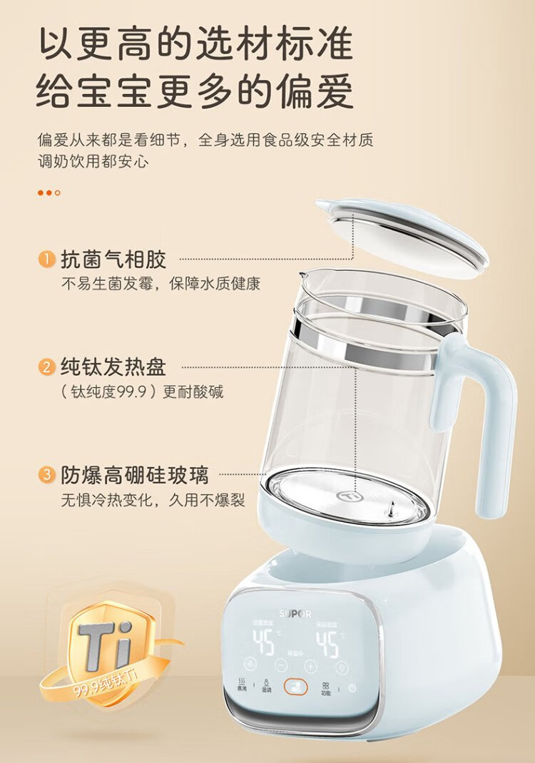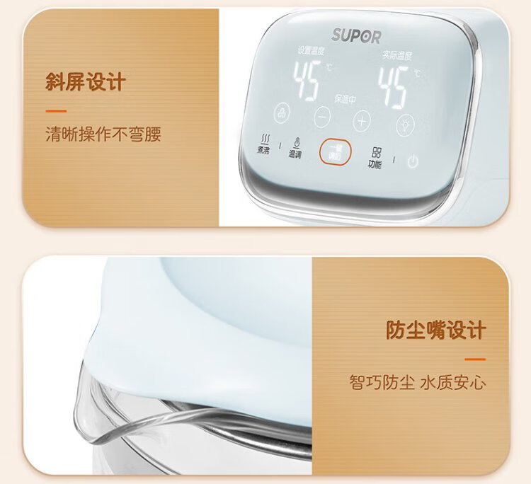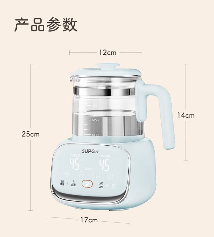 苏泊尔(SUPOR)恒温水壶 婴儿调奶器 宝宝玻璃纯钛烧水壶 泡奶粉机1.2L BW08T