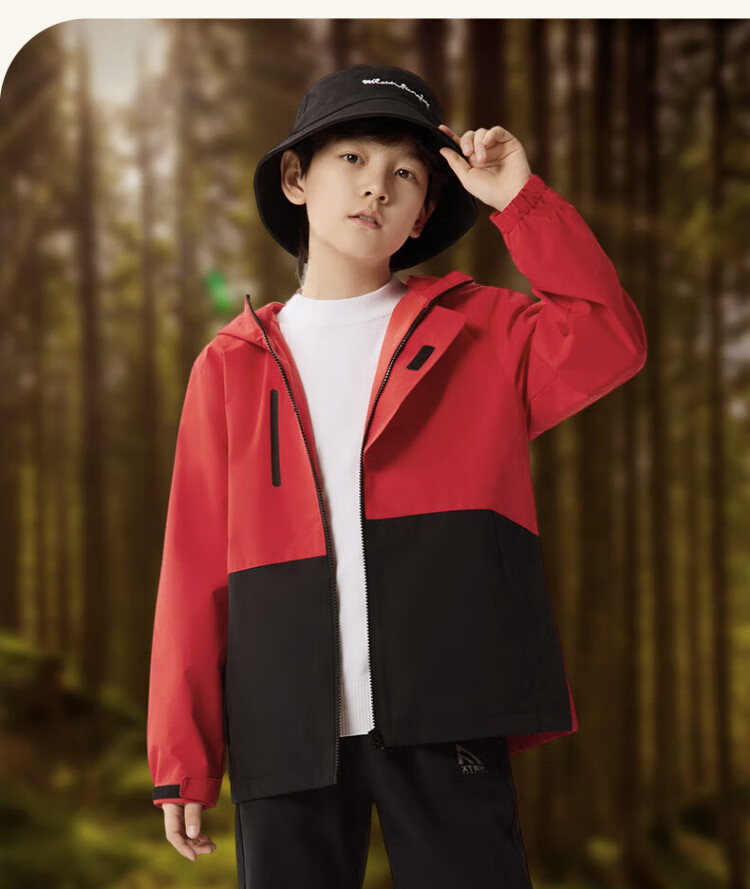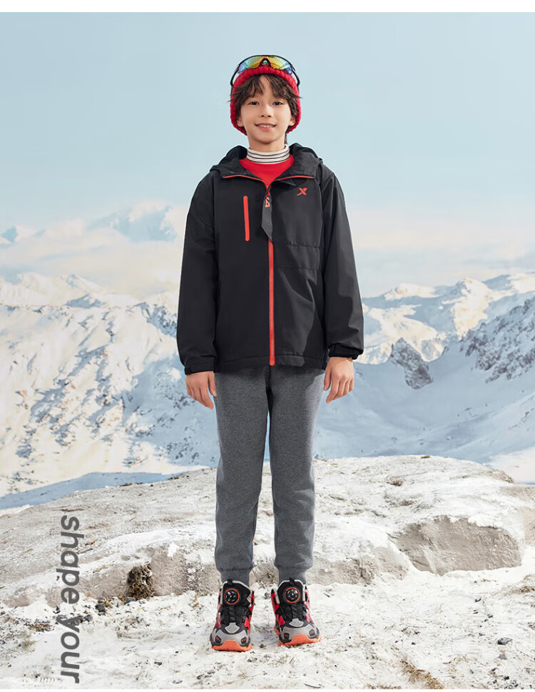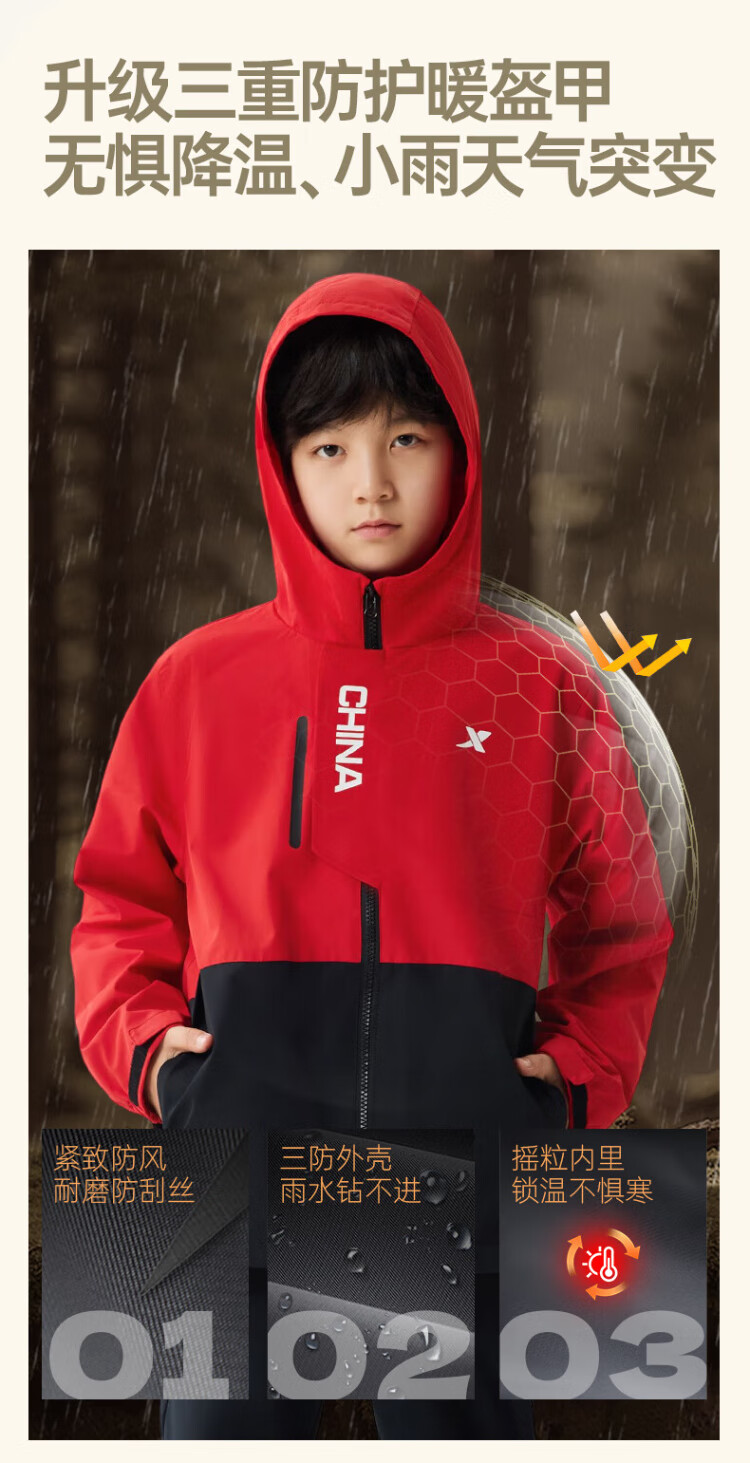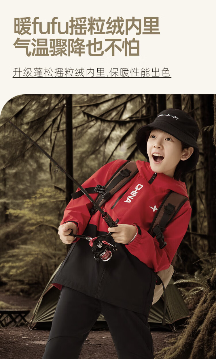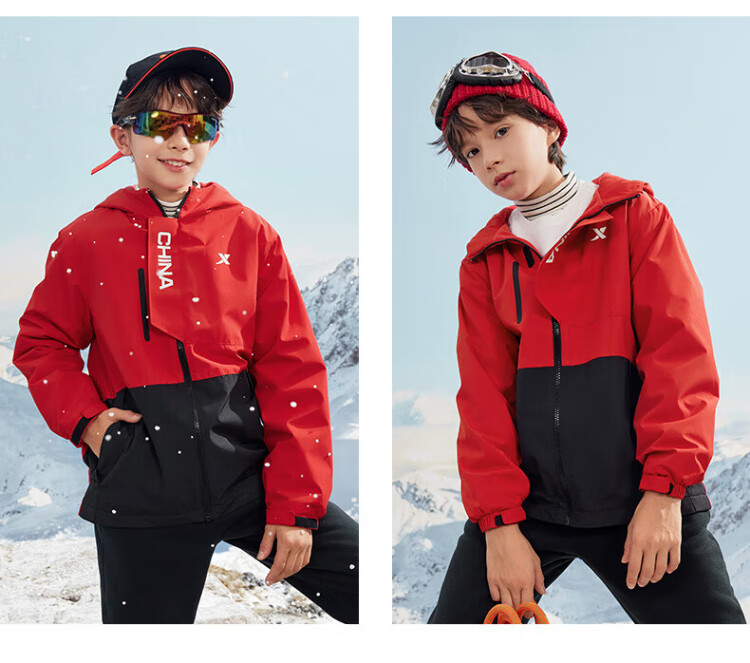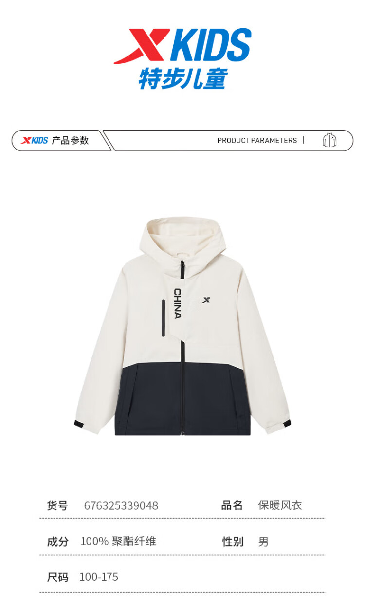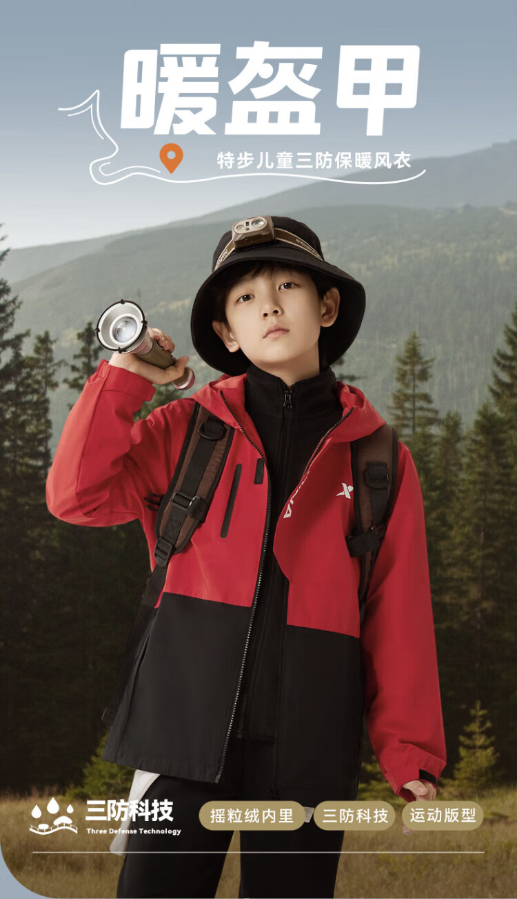 特步儿童童装男童中大童三防拼色摇粒绒时尚保暖风衣 宝钻红 170cm