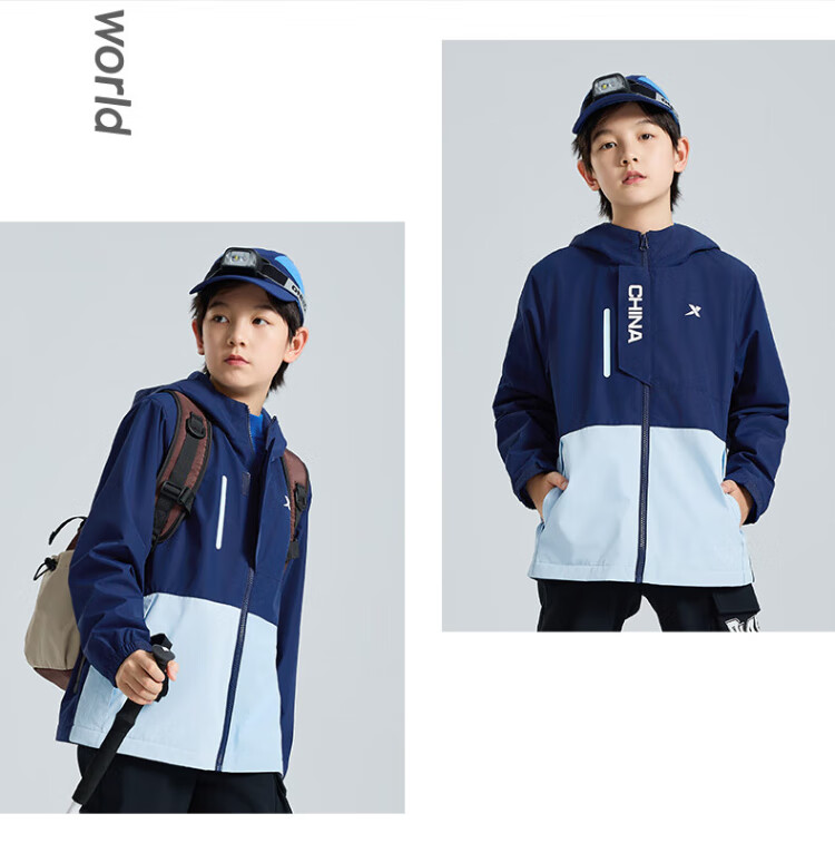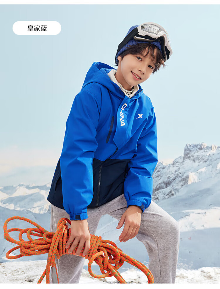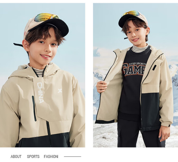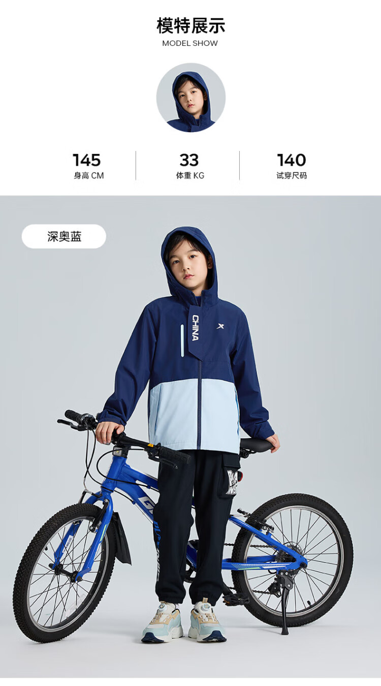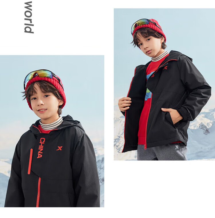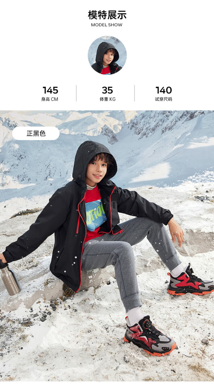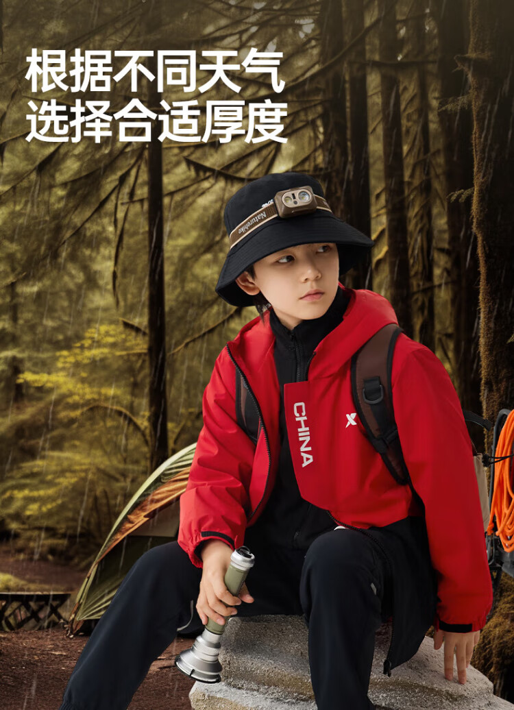 特步儿童童装男童中大童三防拼色摇粒绒时尚保暖风衣 宝钻红 170cm