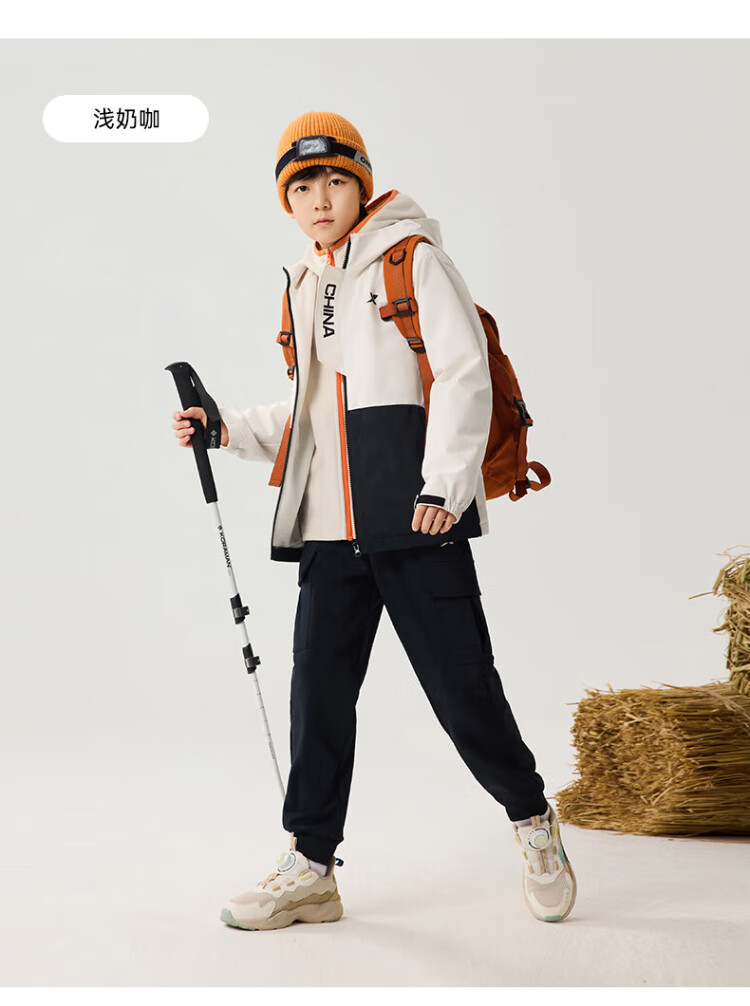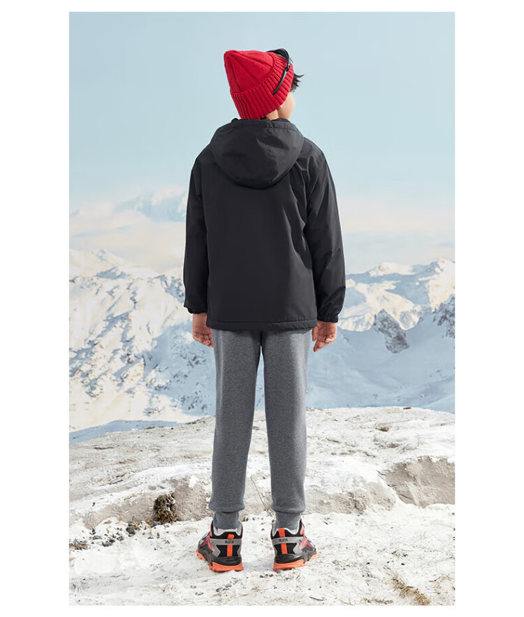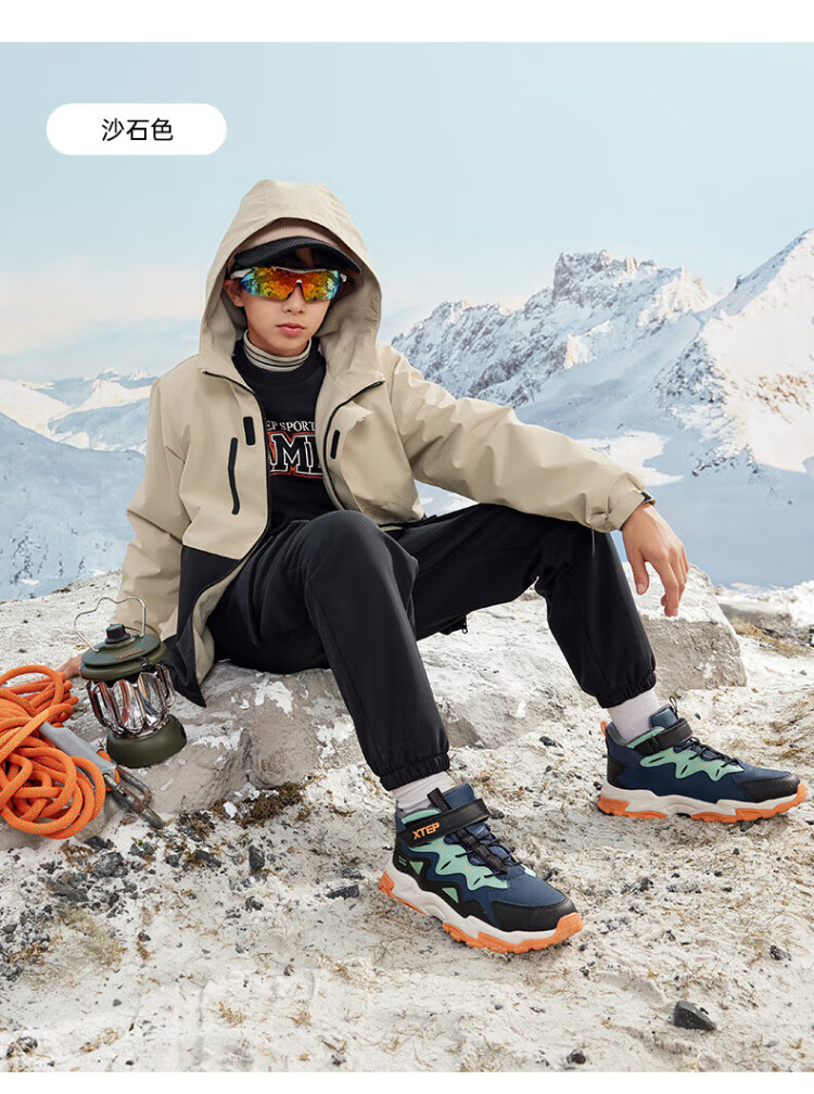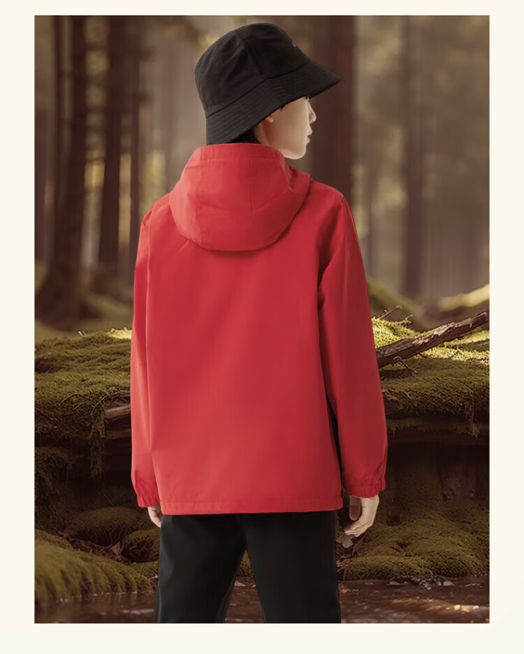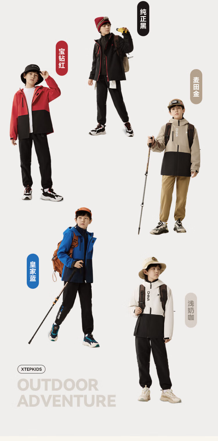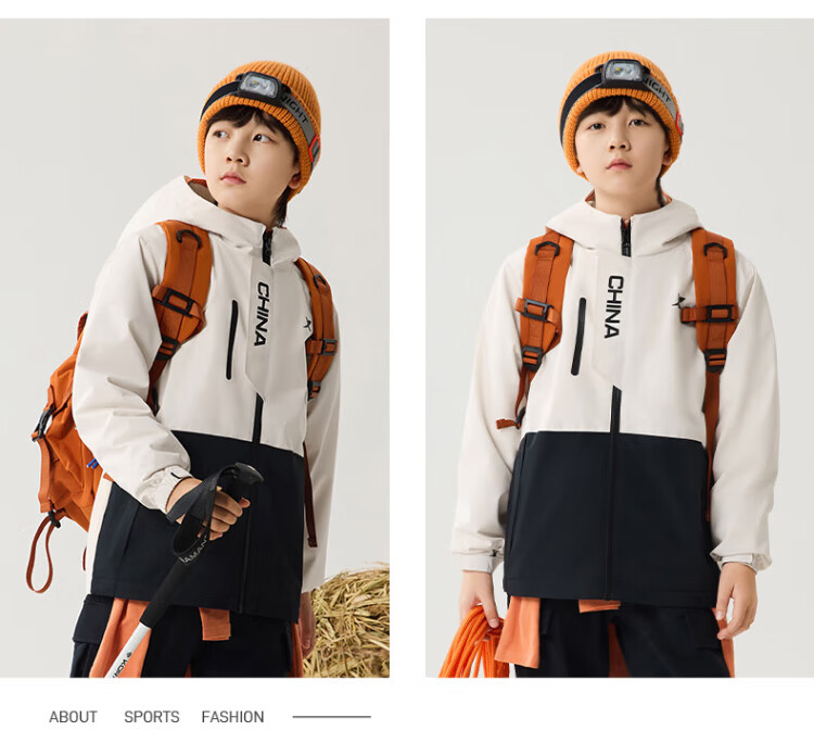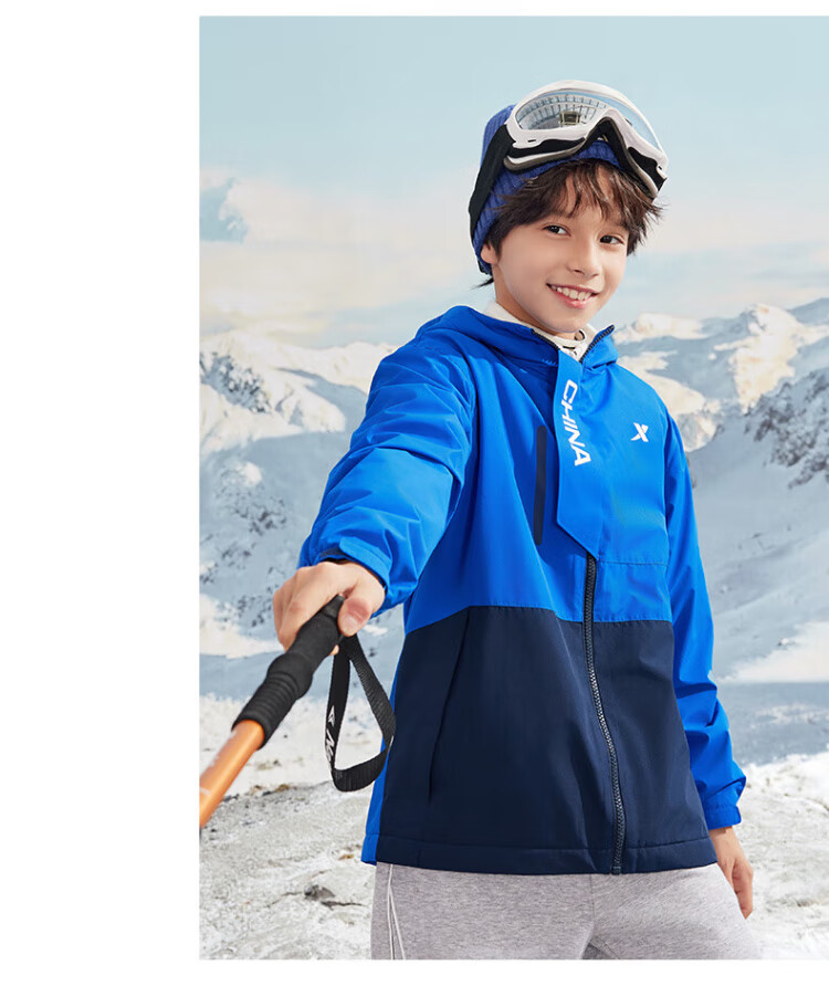 特步儿童童装男童中大童三防拼色摇粒绒时尚保暖风衣 宝钻红 170cm