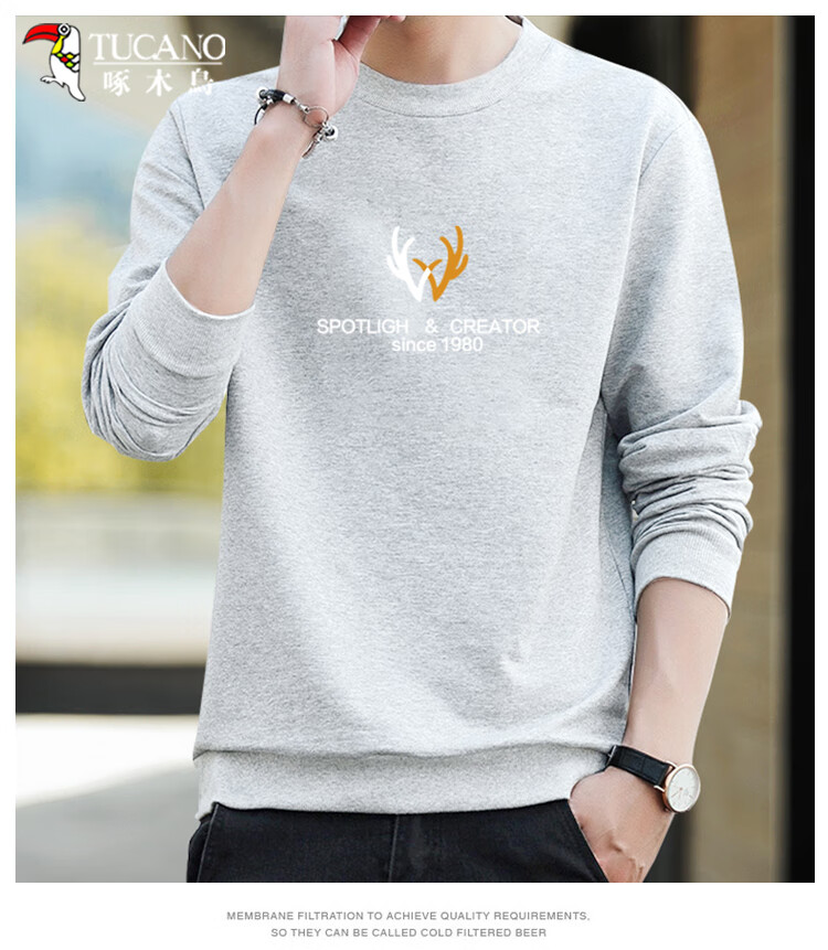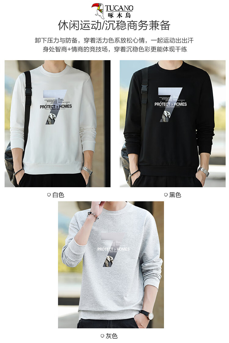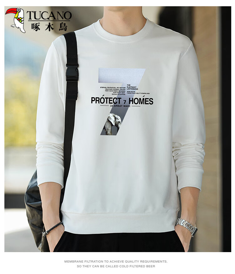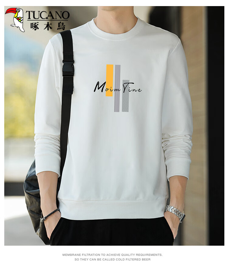 Толстовка Woodpecker (TUCANO), мужская повседневная универсальная футболка с длинными рукавами, мужской свободный пуловер с круглым вырезом, студенческие топы, мужские белые XL