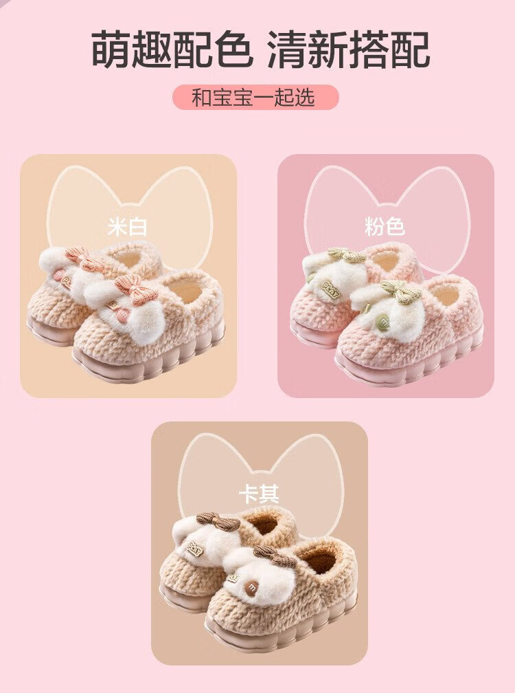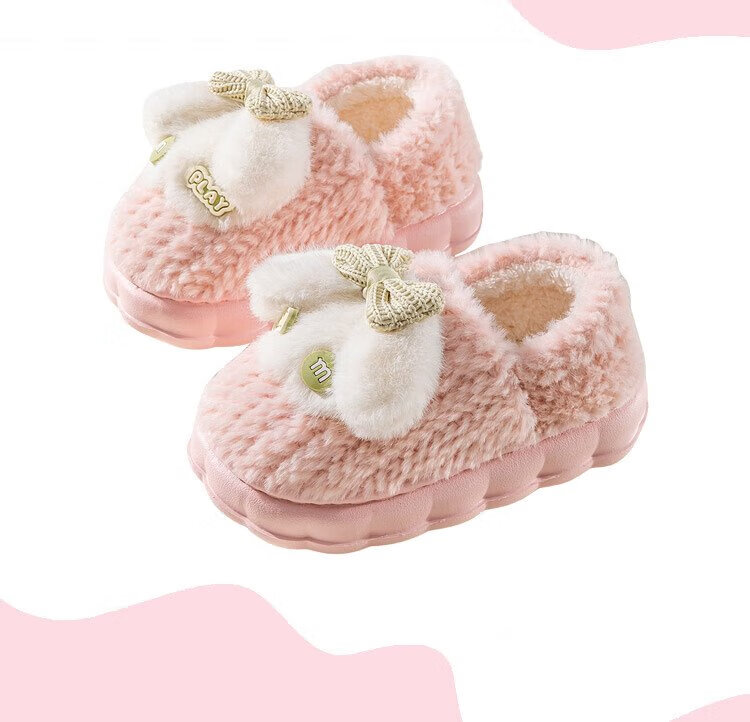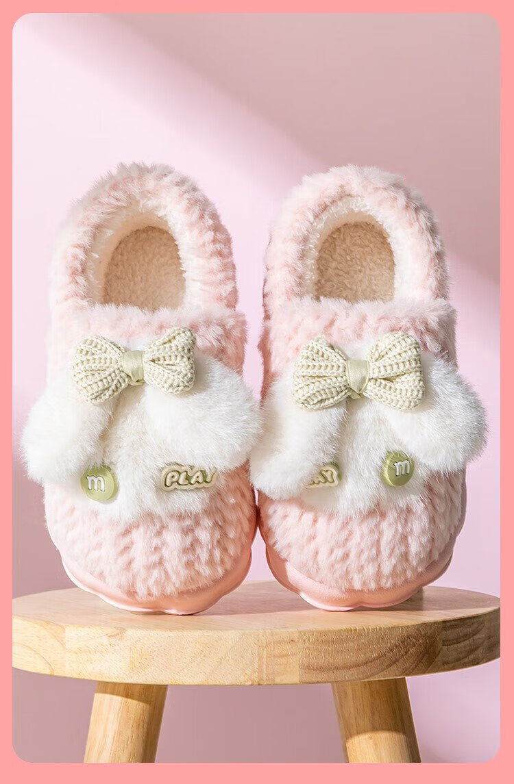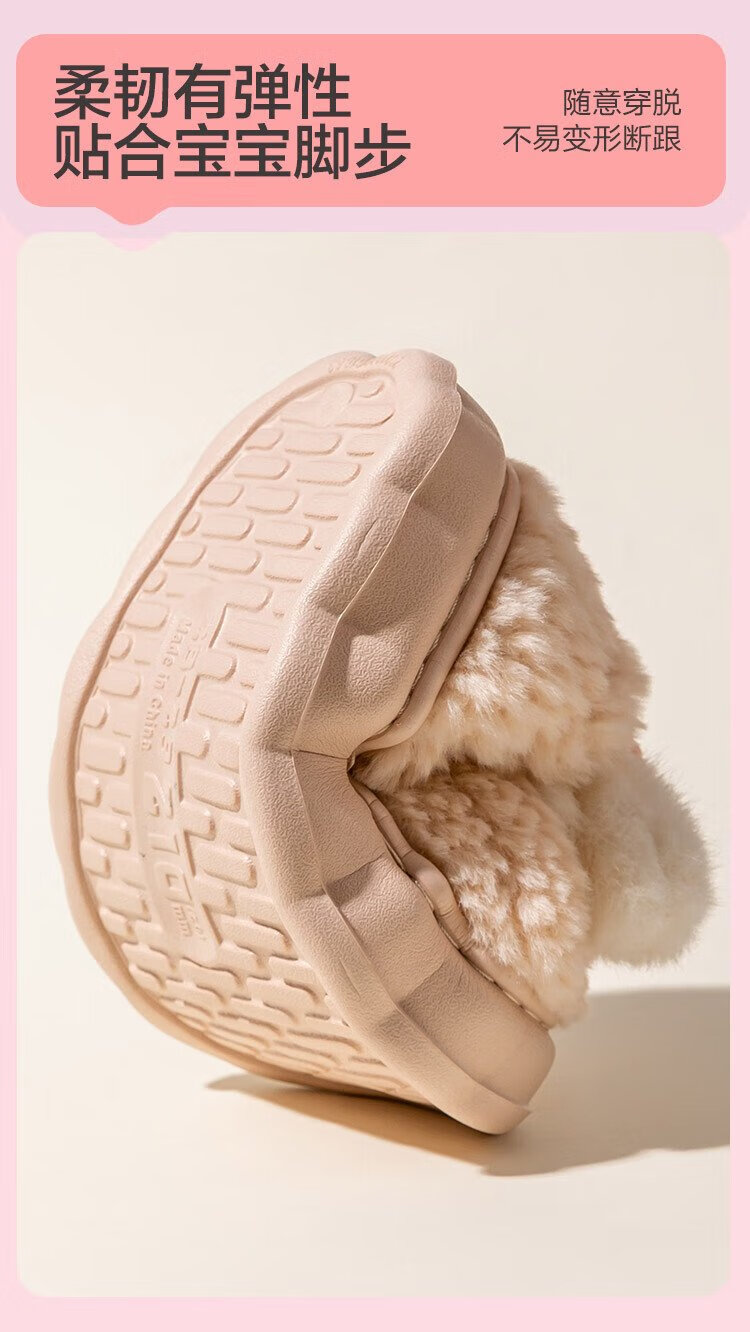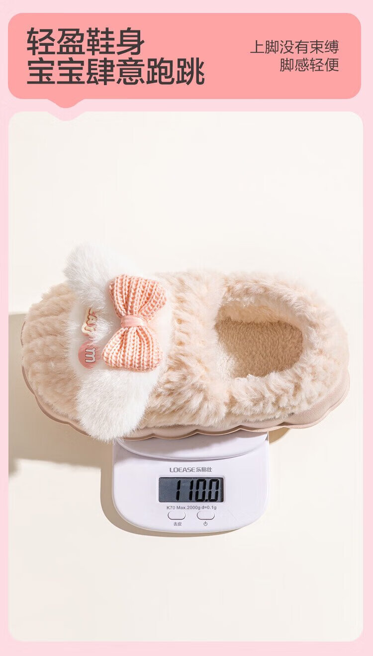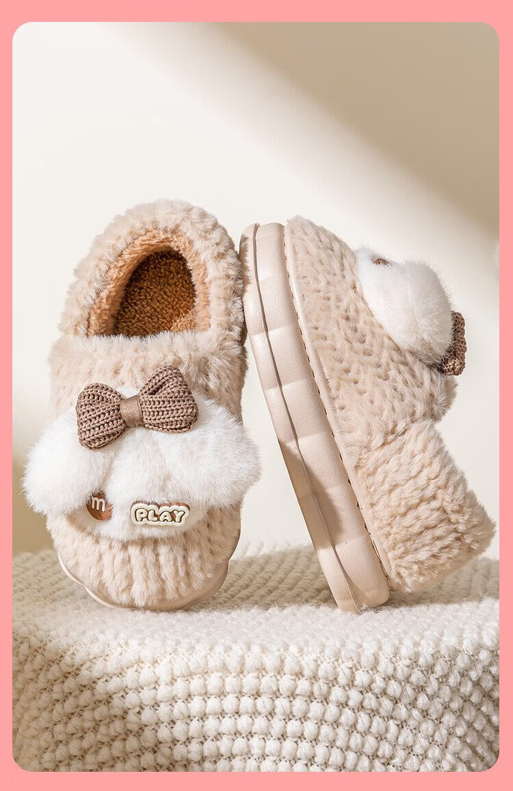 京东京造时尚包脚儿童棉拖鞋男女童毛绒蝴蝶结包跟保暖棉拖鞋卡其色30-31