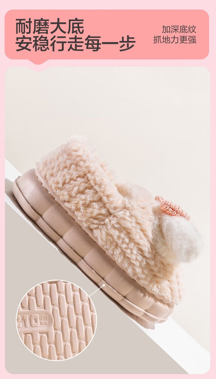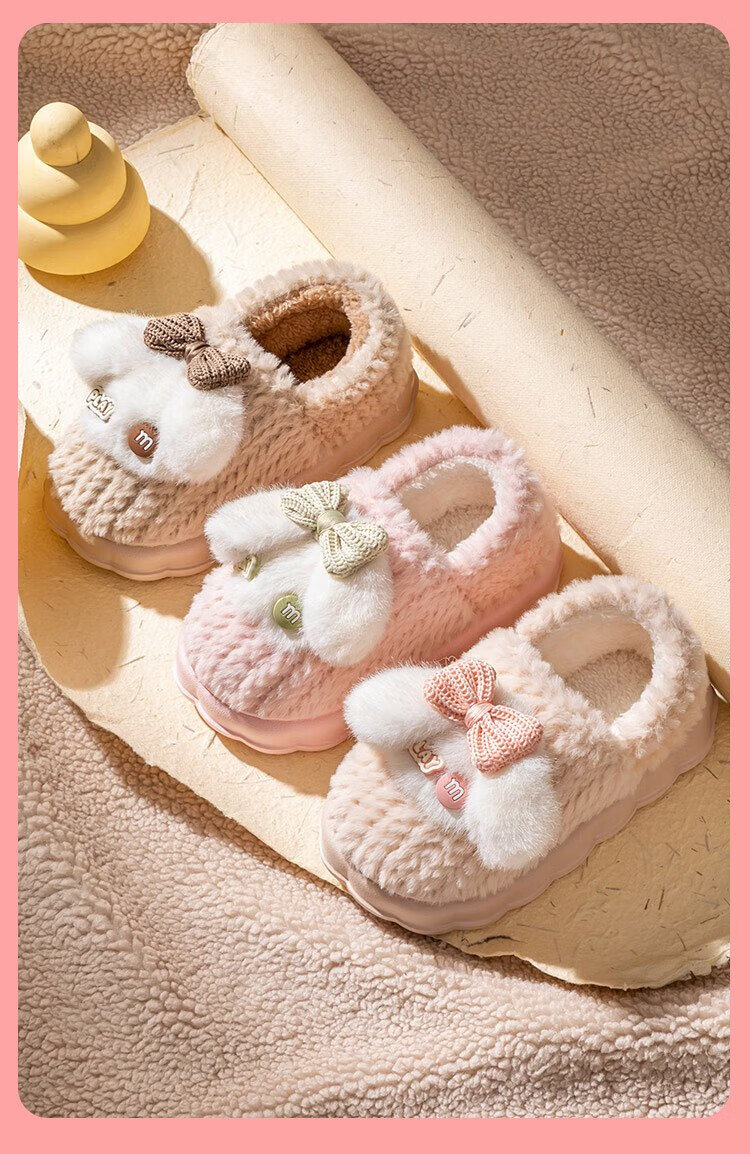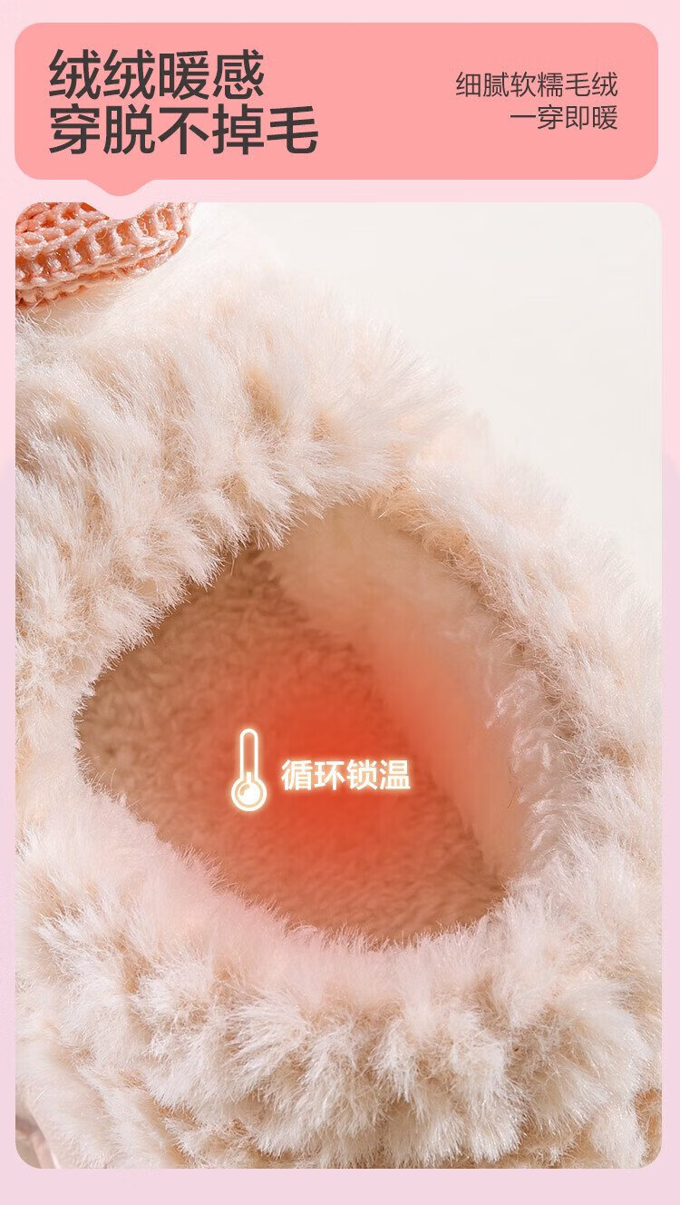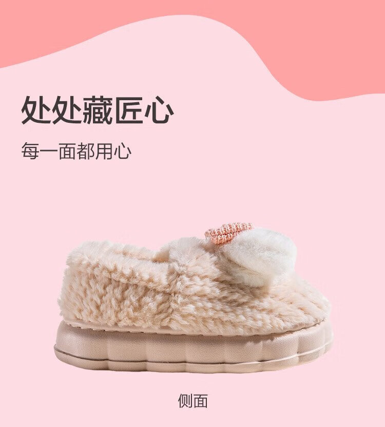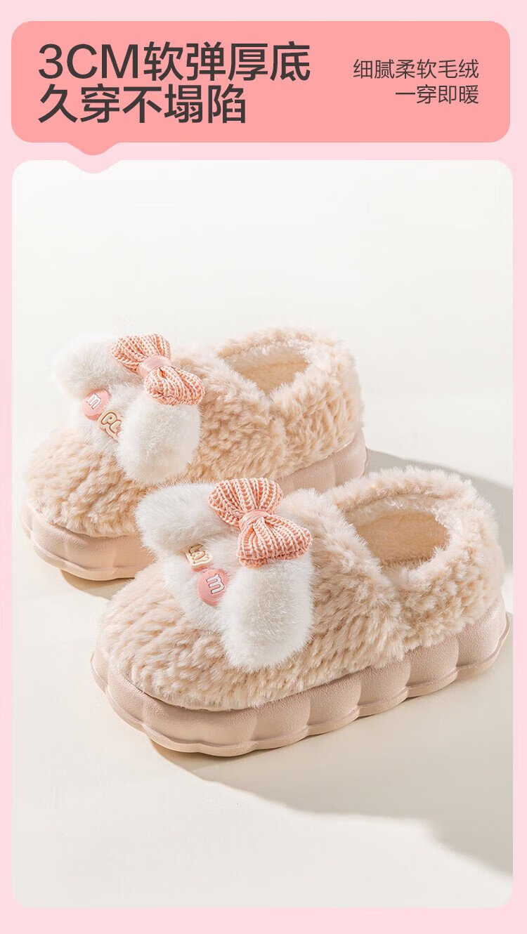 京东京造时尚包脚儿童棉拖鞋男女童毛绒蝴蝶结包跟保暖棉拖鞋卡其色30-31