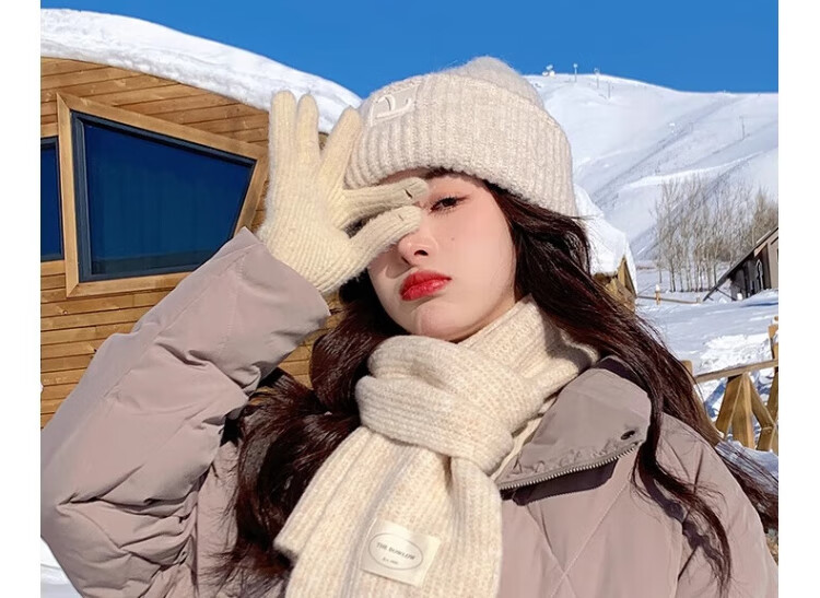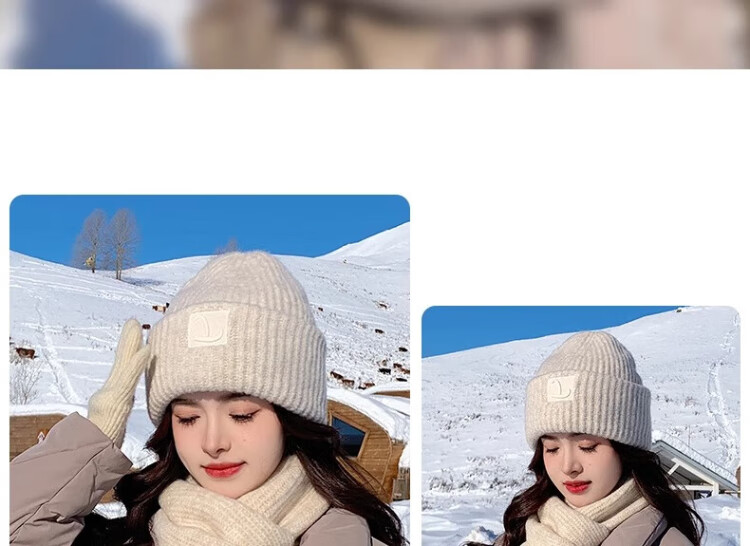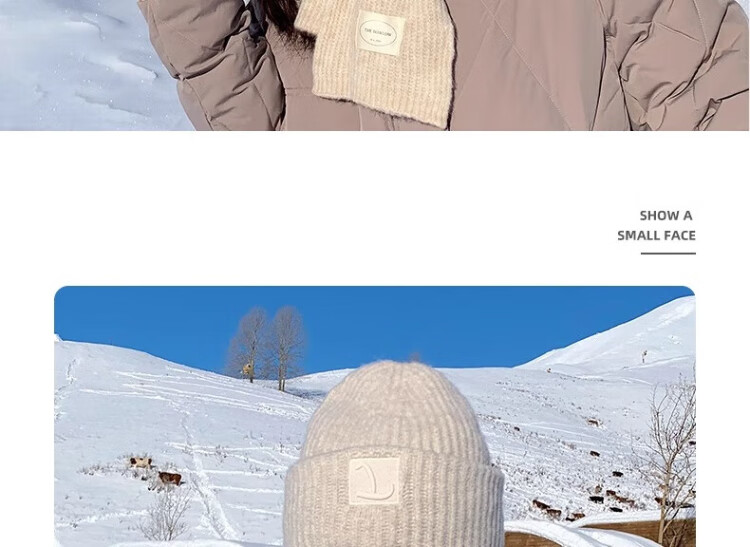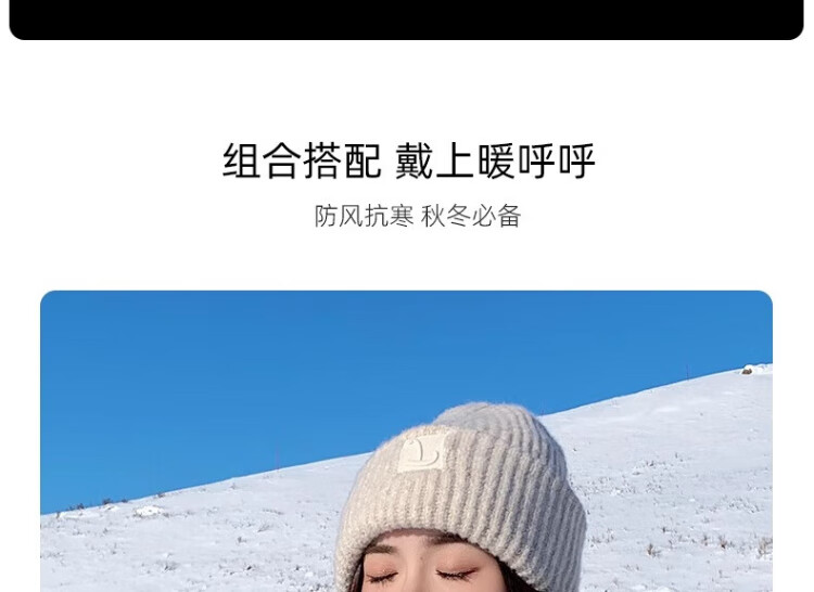 Yalu Bonnet tricoté Beige pour Femme, Chapeau d'hiver à Petits Poils, Chapeau en Laine à Grosse tête, Protection des Oreilles d'automne et d'hiver, Chapeau Chaud et Froid Mignon
