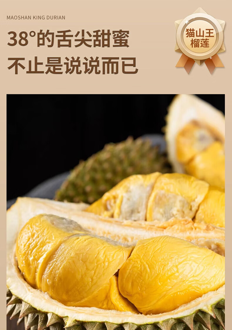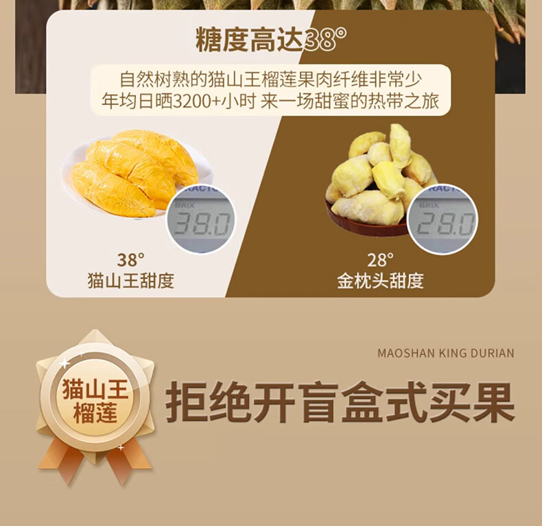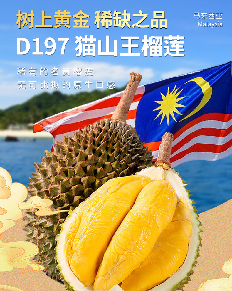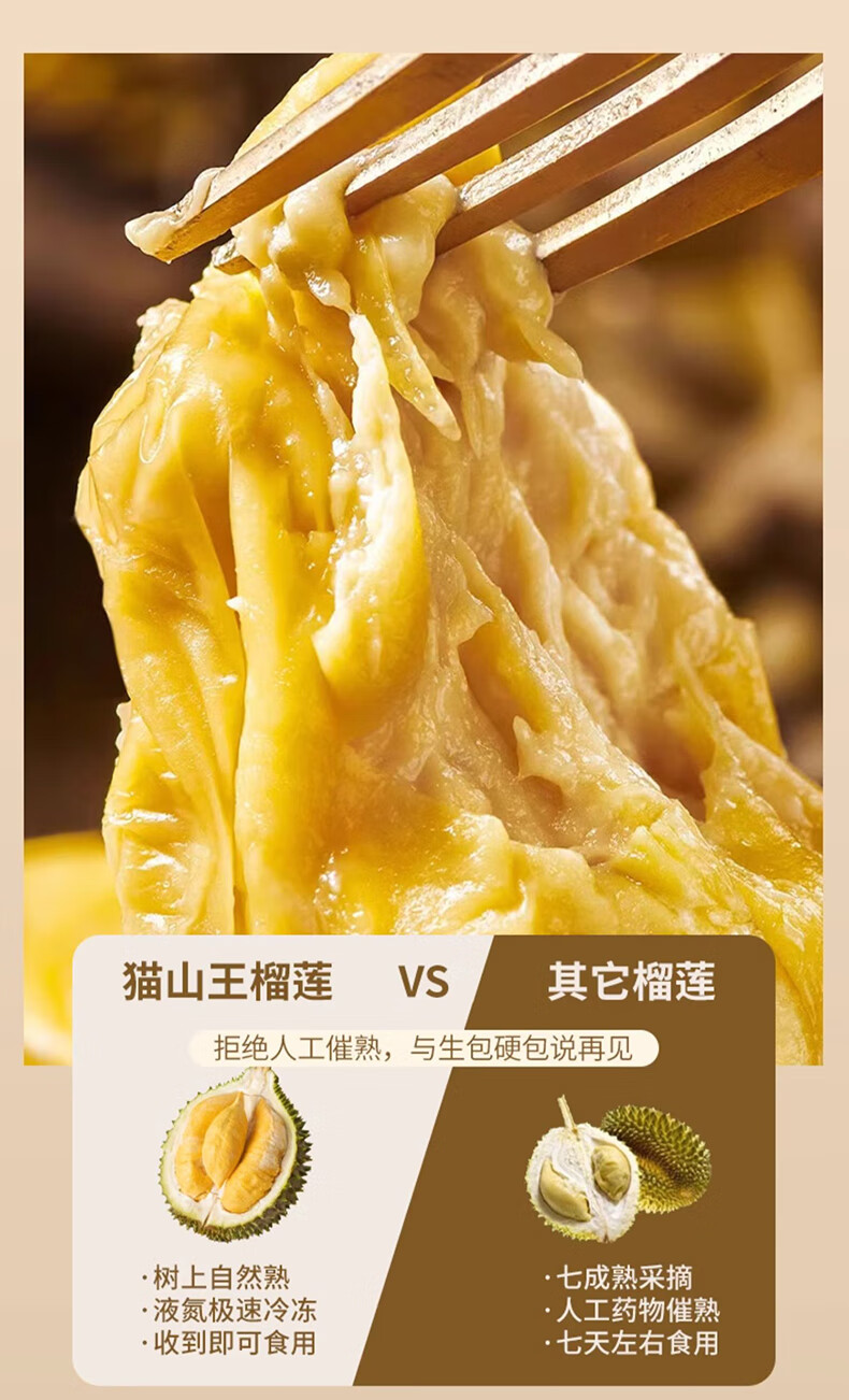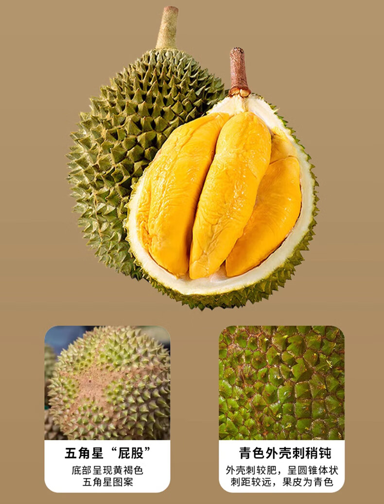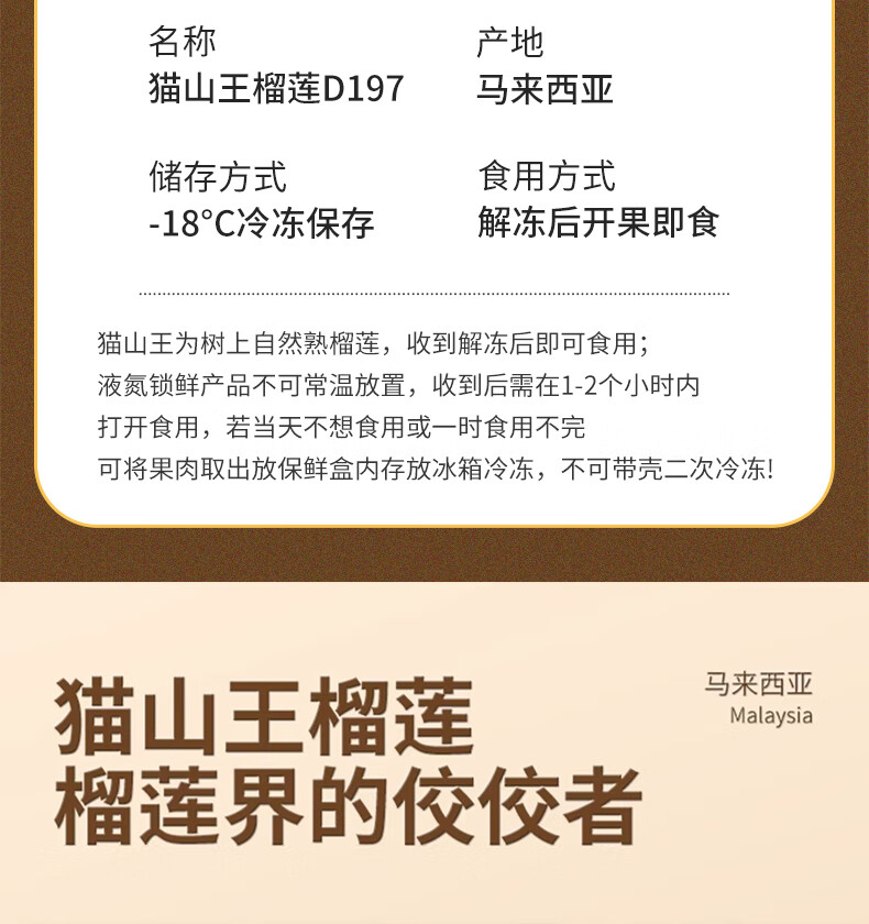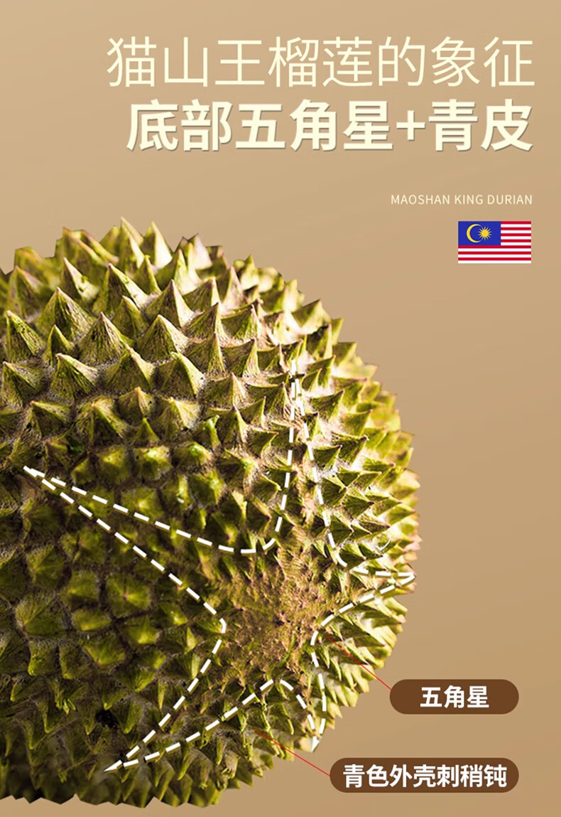京地达马来西亚猫山王榴莲 净重4.5斤单果4.5斤 液氮冷冻源头直发包邮