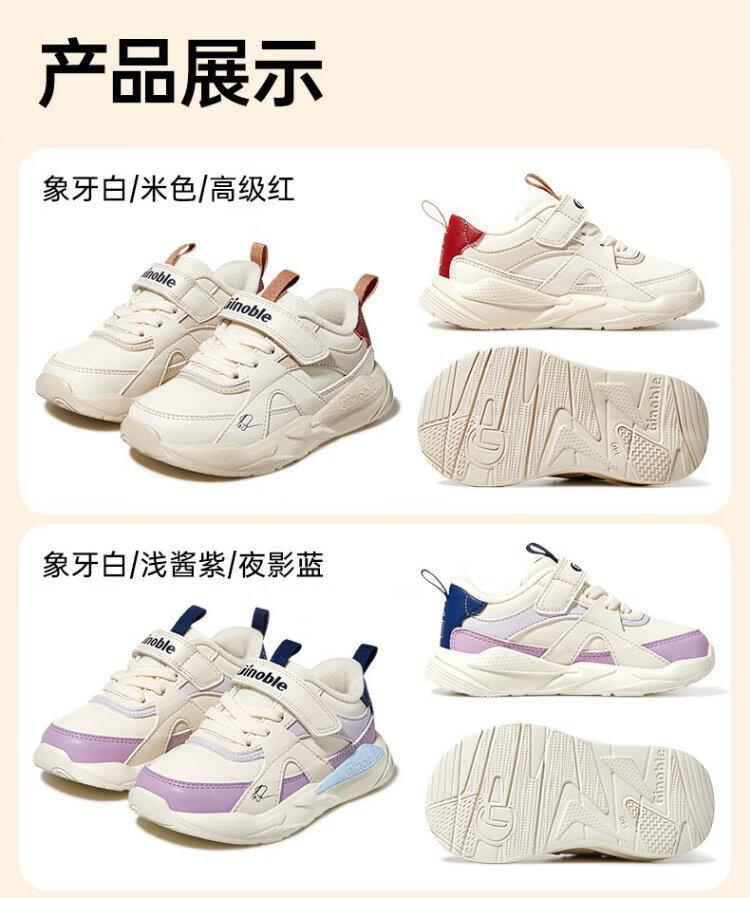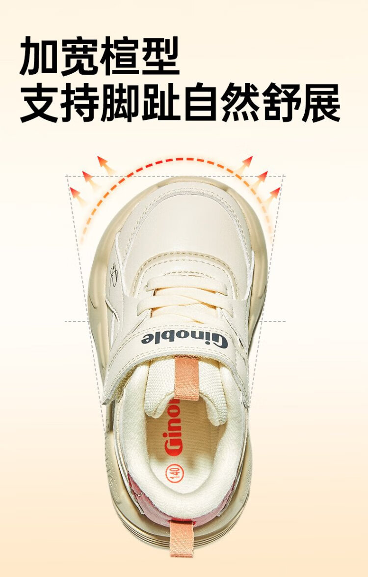 基诺浦(ginoble)学步鞋24年冬季天鹅绒棉鞋18个月-5岁男女童机能鞋GY1661象牙白