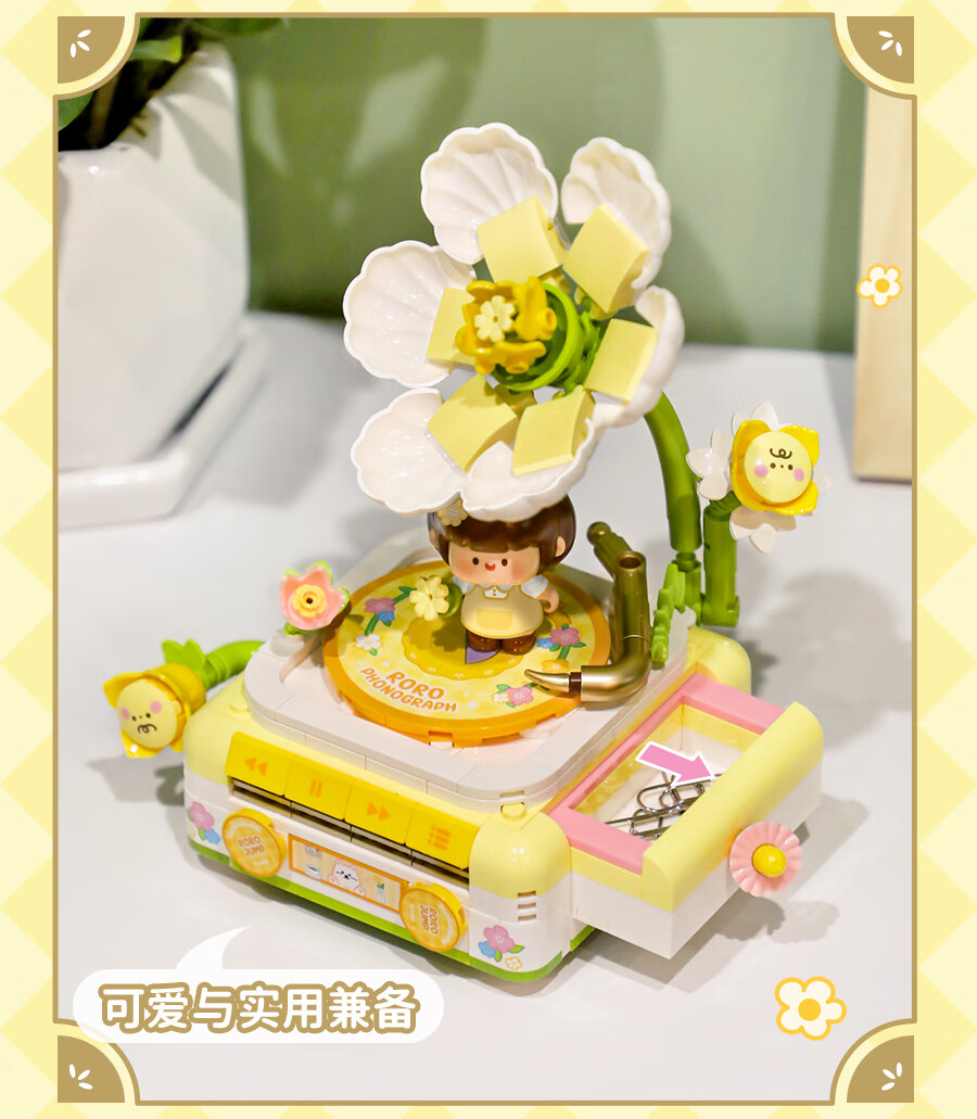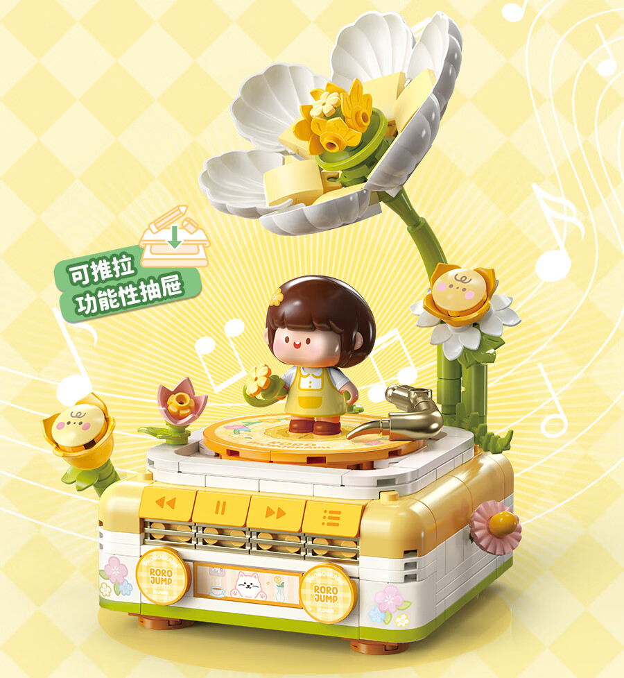 Детский строительный блок Fermi, игрушка, подарок на день рождения, мясной соус, цветок, граммофон S34004