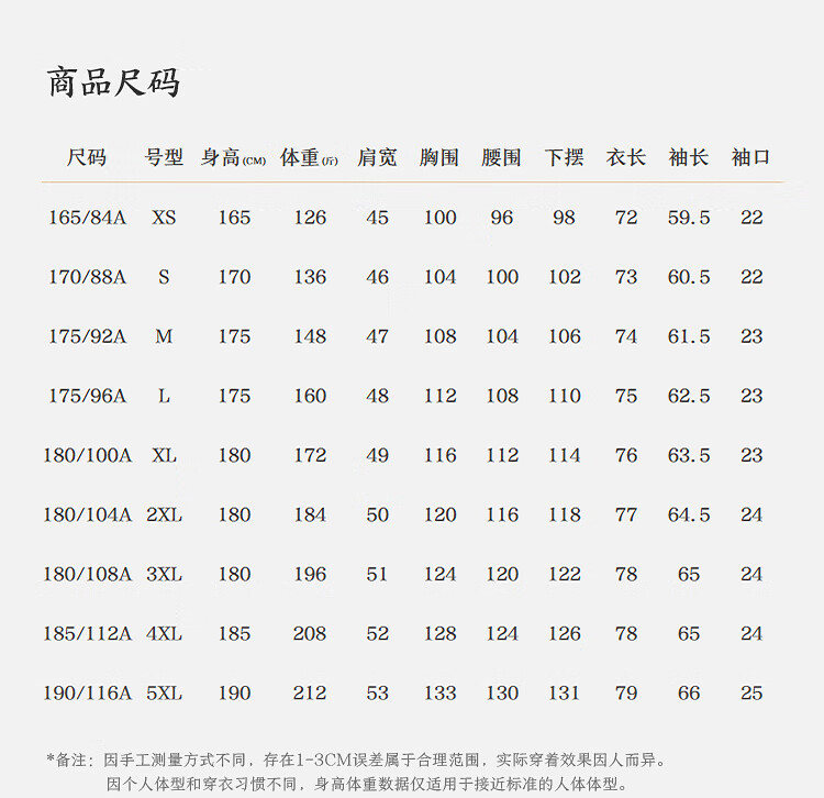 China (cm) 160-165/84-86 165-170 / 88-90 167-172 / 92-96 168-173 / 98-102 170-176 / 106-110