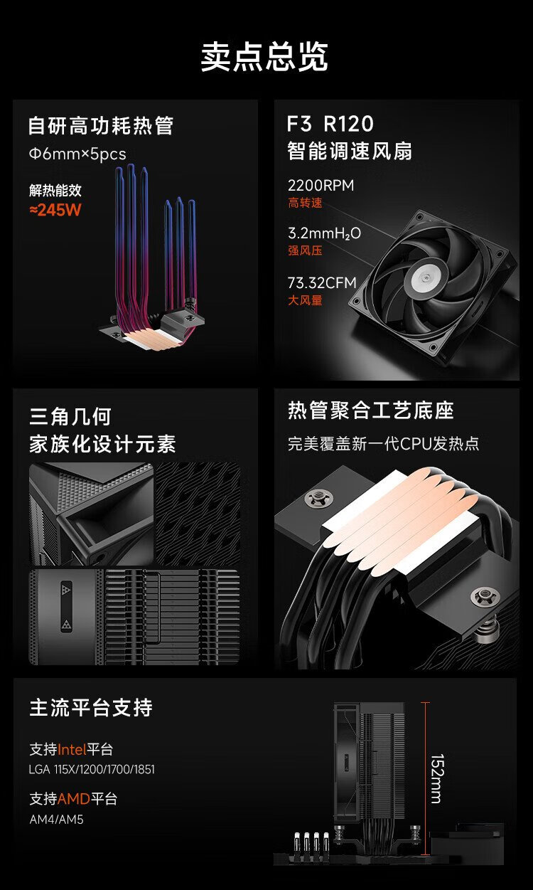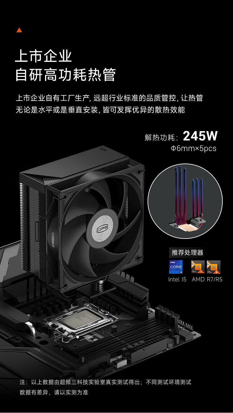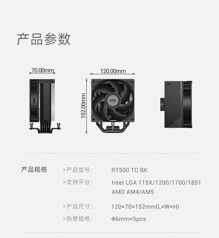 Overclocking 3 (PCCOOLER) RT500 TC BK black matte CPU air cooling radiator (5 heat pipes/high performance fan/triangular wavy fins/1700/AM5)