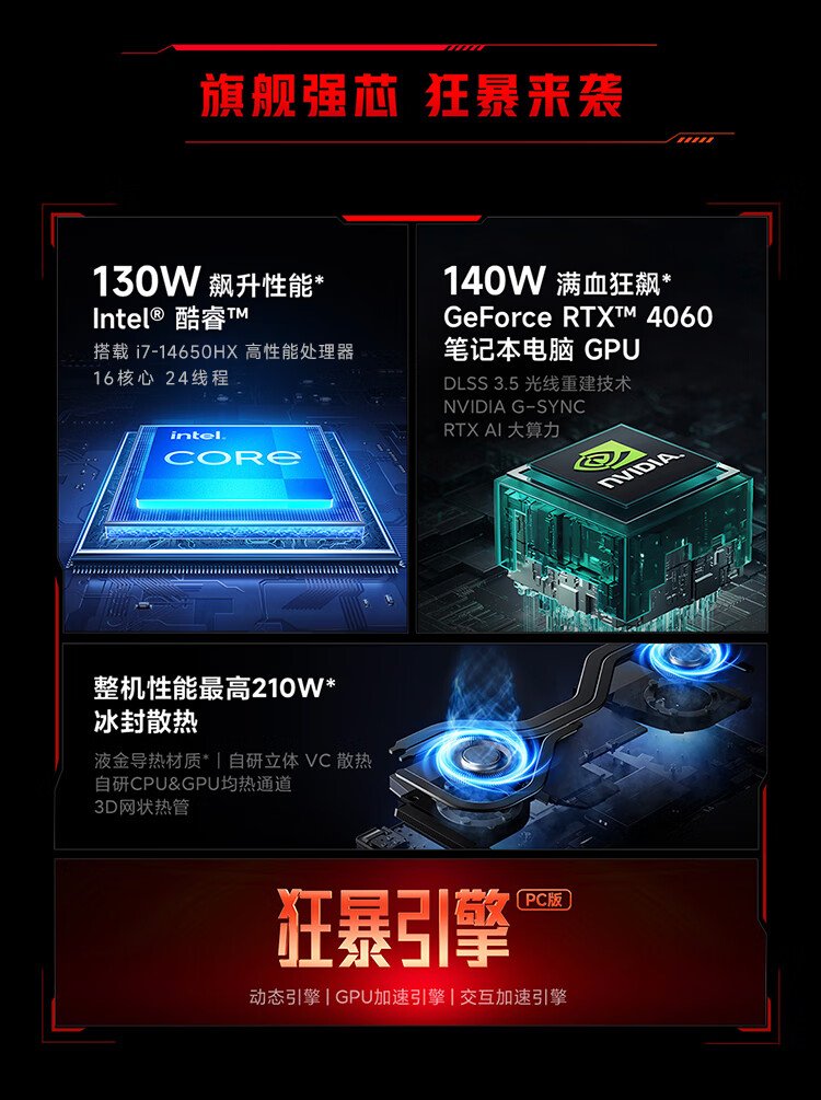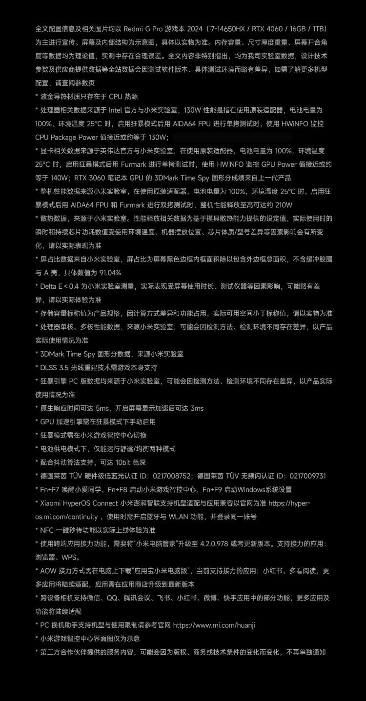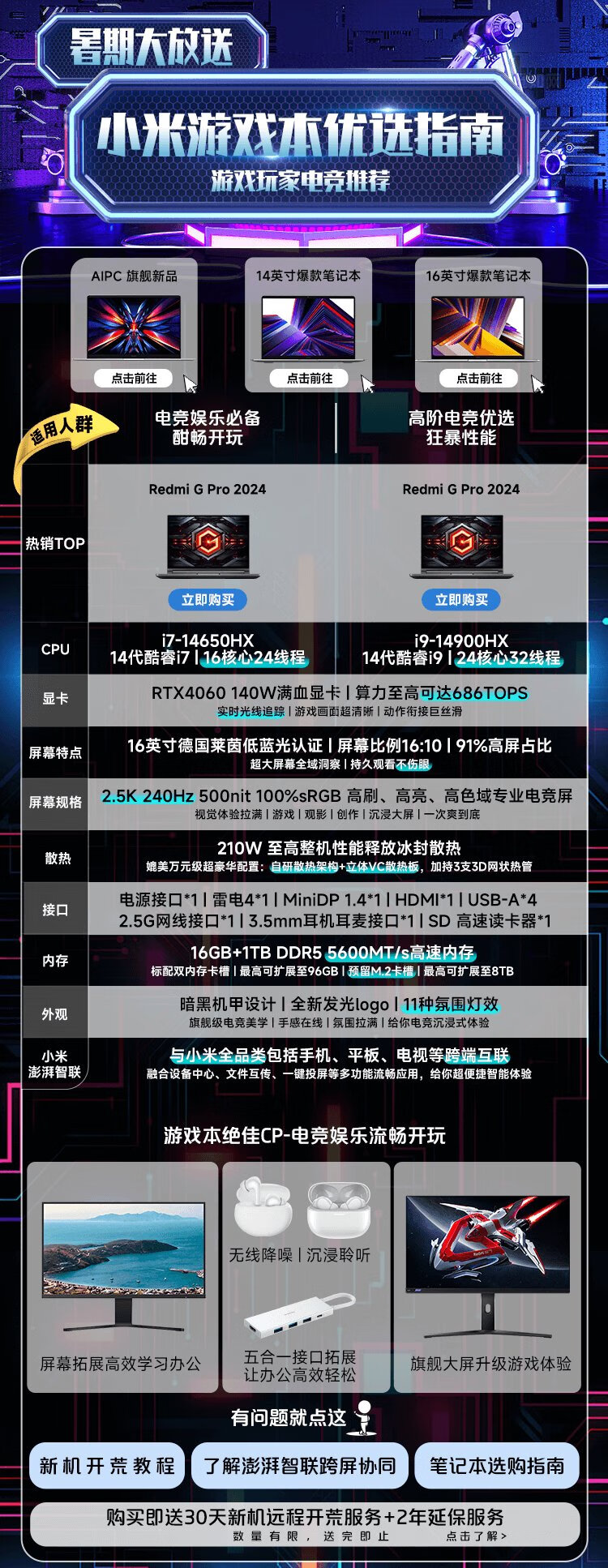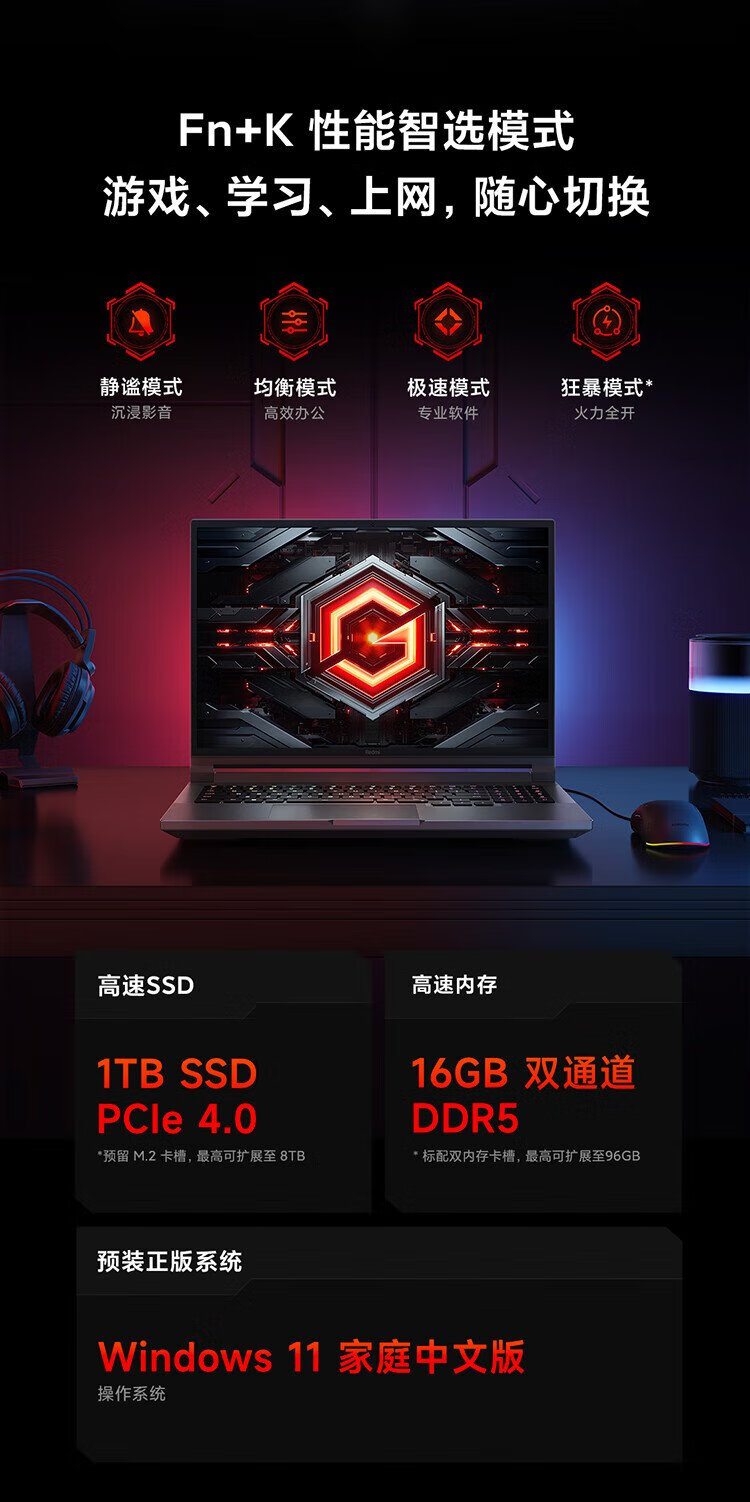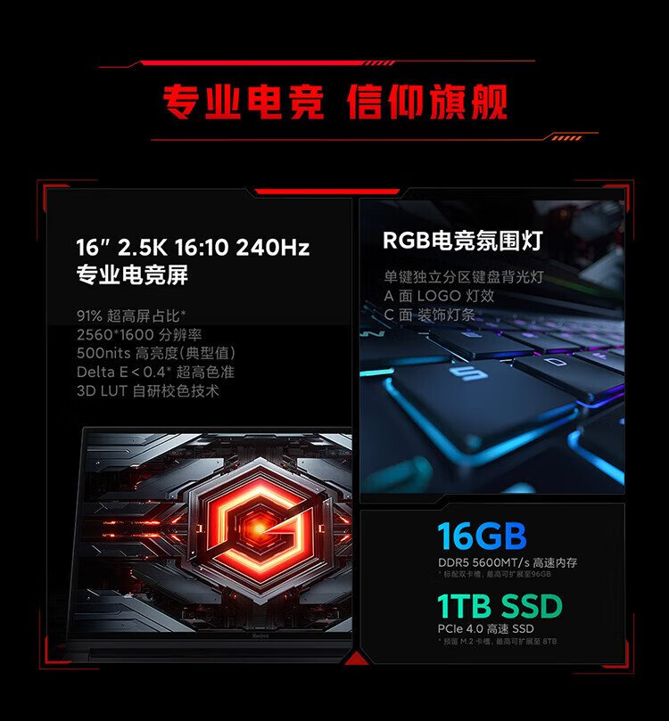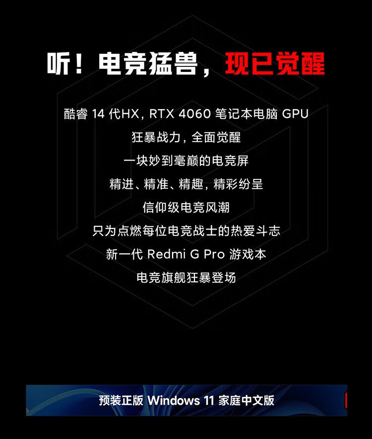小米 游戏本 红米REDMI G Pro 笔记本电脑(14代酷睿i7HX 16G 1T RTX4060 240Hz高刷屏)畅玩黑神话