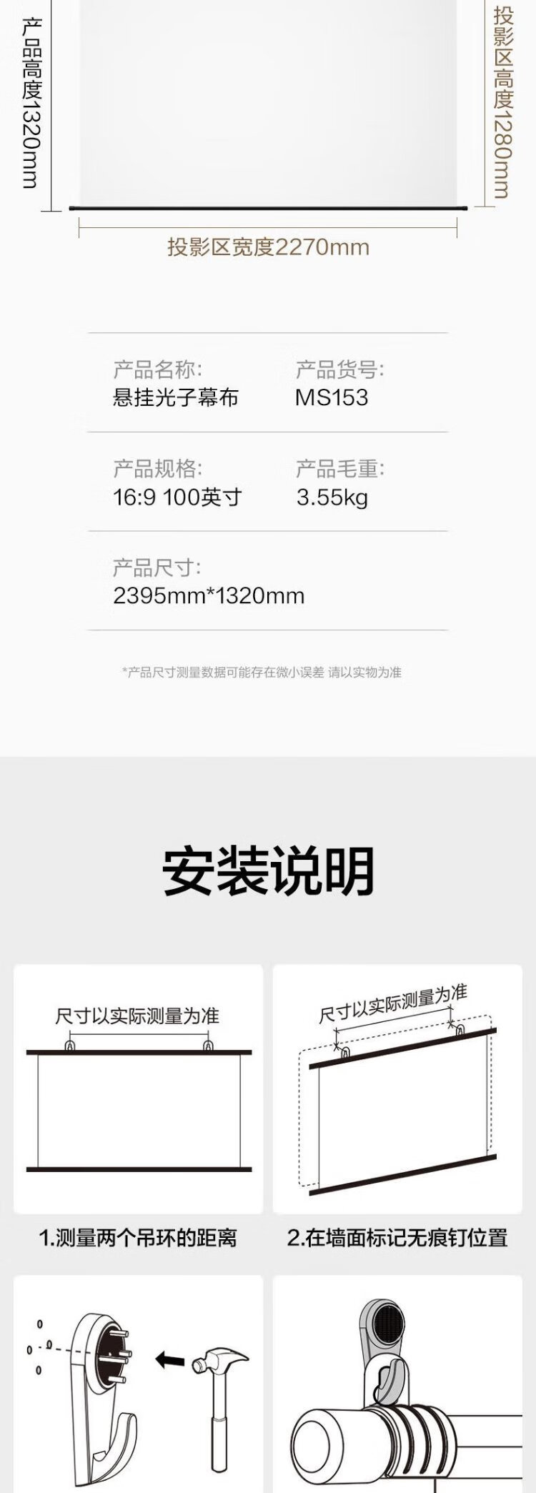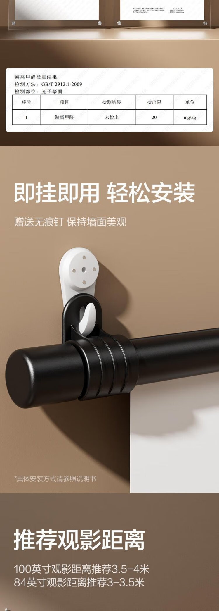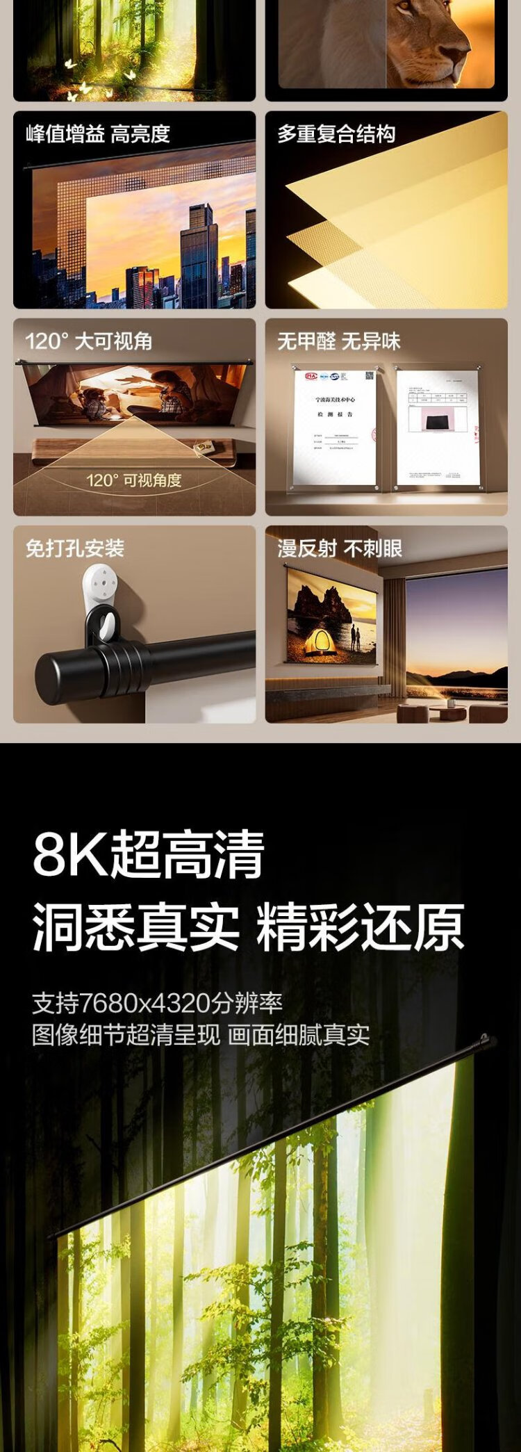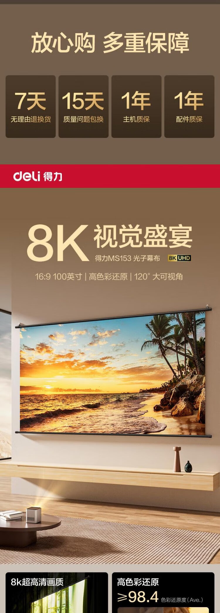 得力(deli)100英寸16:9悬挂光子幕布 臻享8K超清免打孔无甲醛家用投影幕布 适配极米坚果当贝投影仪 MS153