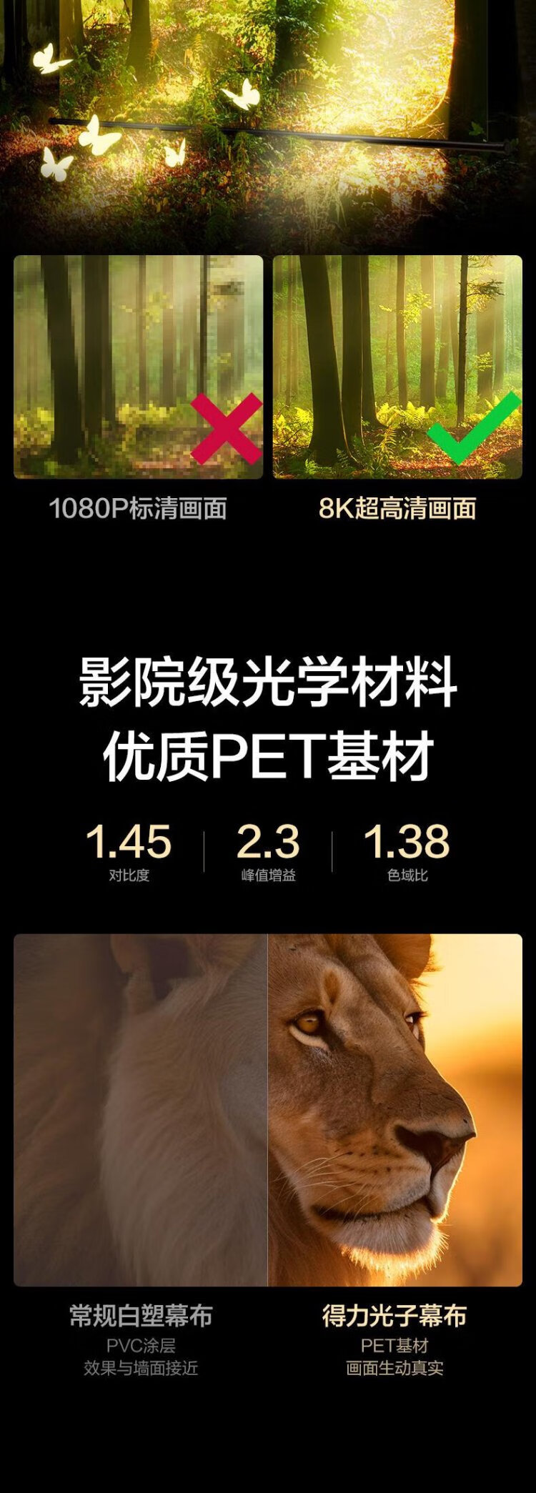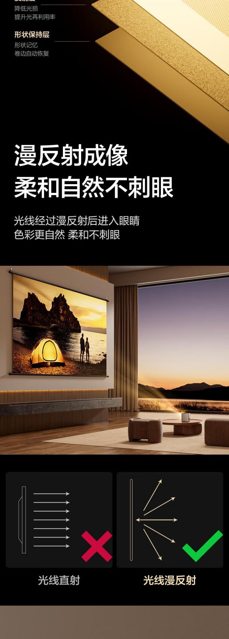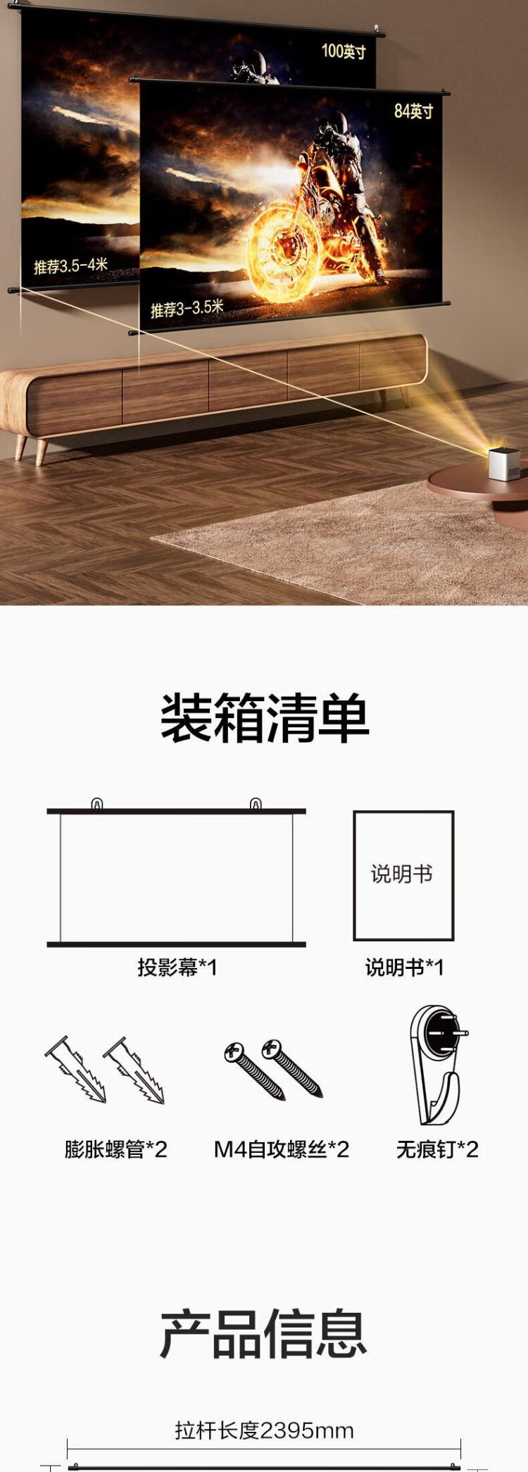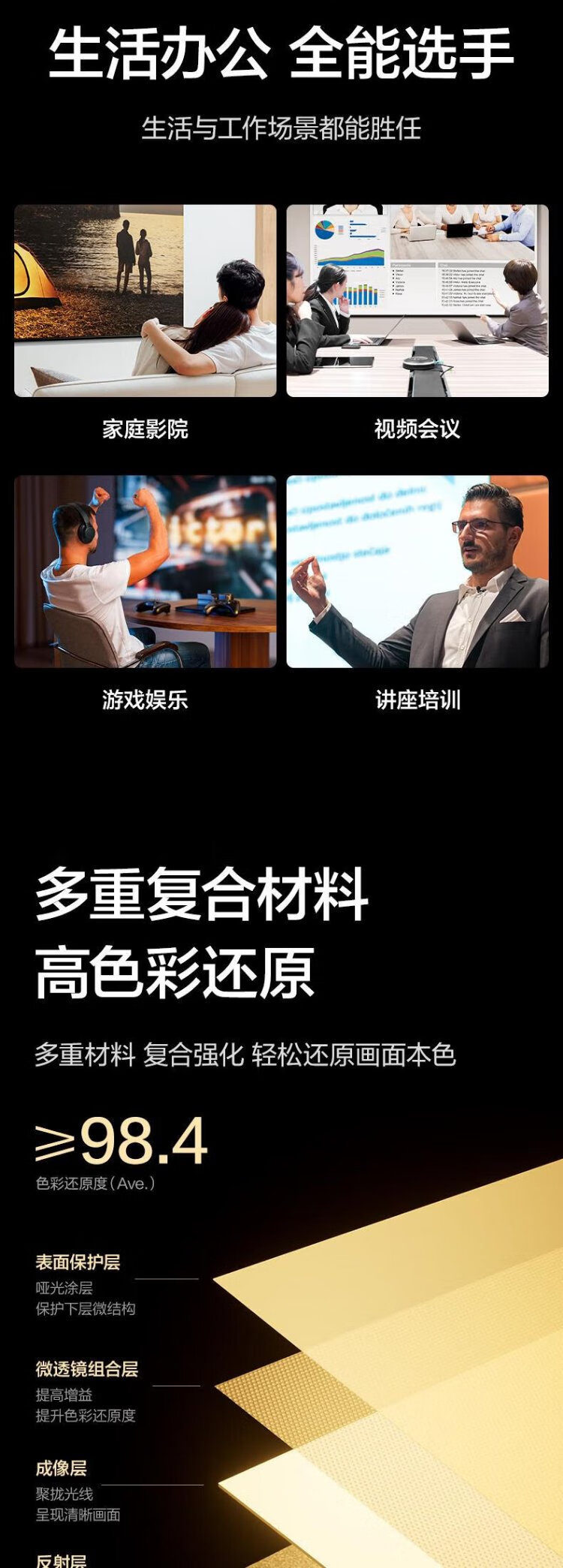 得力(deli)100英寸16:9悬挂光子幕布 臻享8K超清免打孔无甲醛家用投影幕布 适配极米坚果当贝投影仪 MS153
