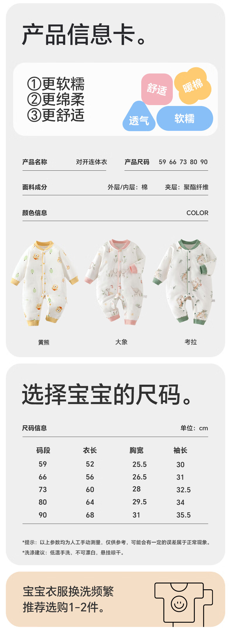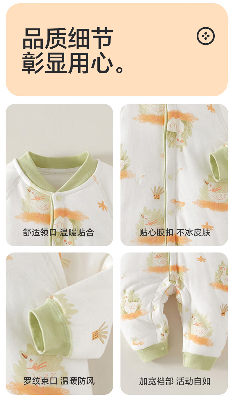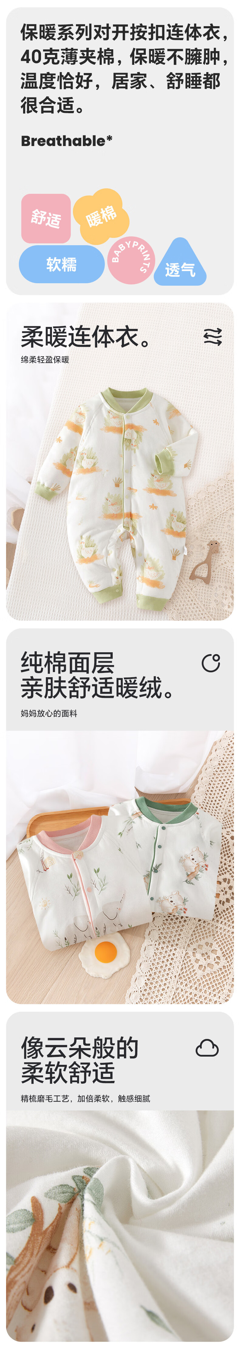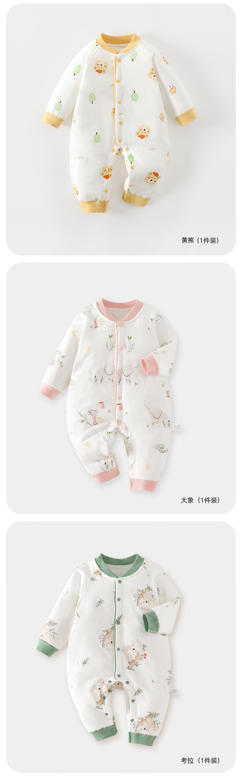 贝瑞加(Babyprints)宝宝连体衣加厚婴儿连体衣冬季夹棉保暖童装家居爬服 大象90