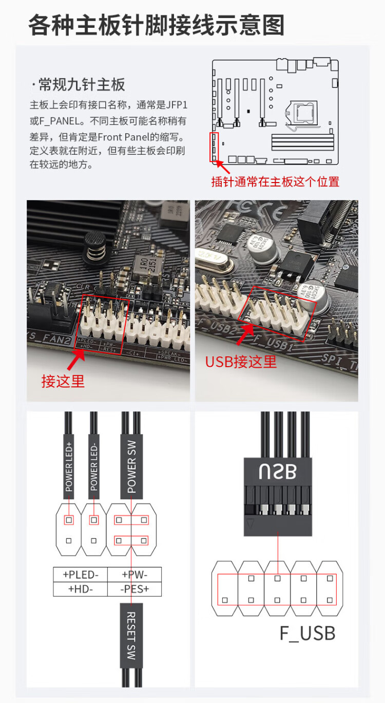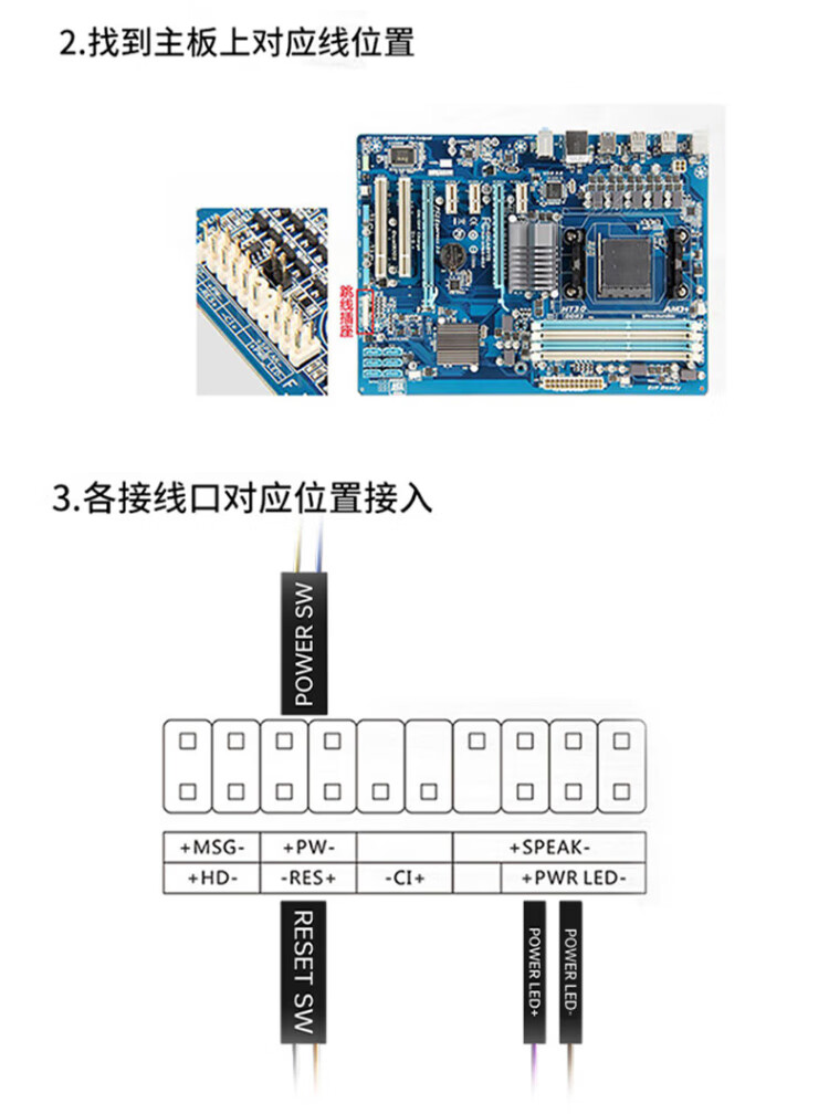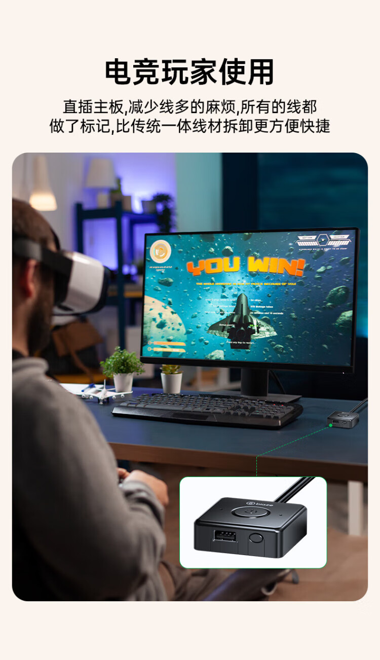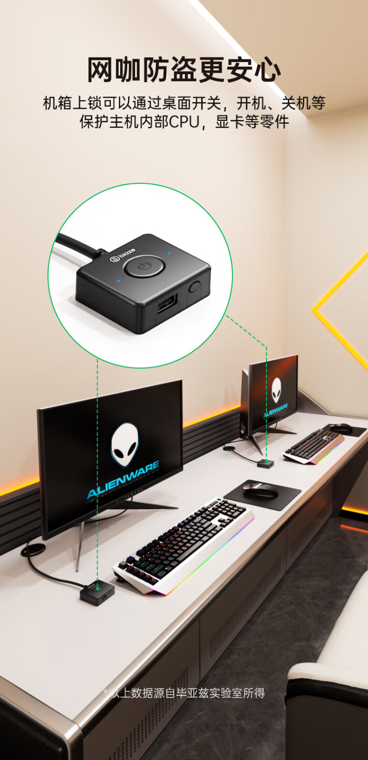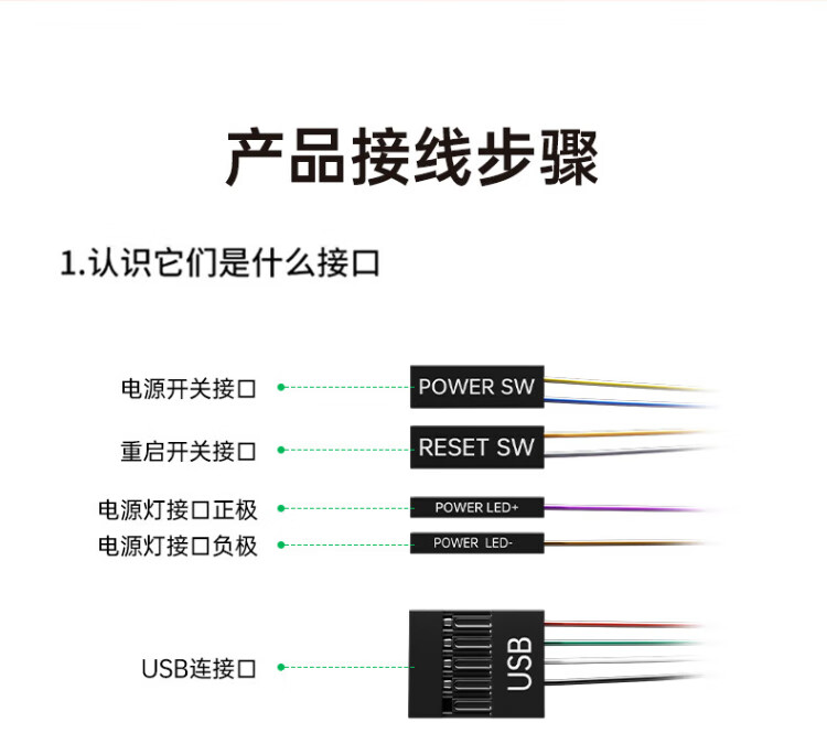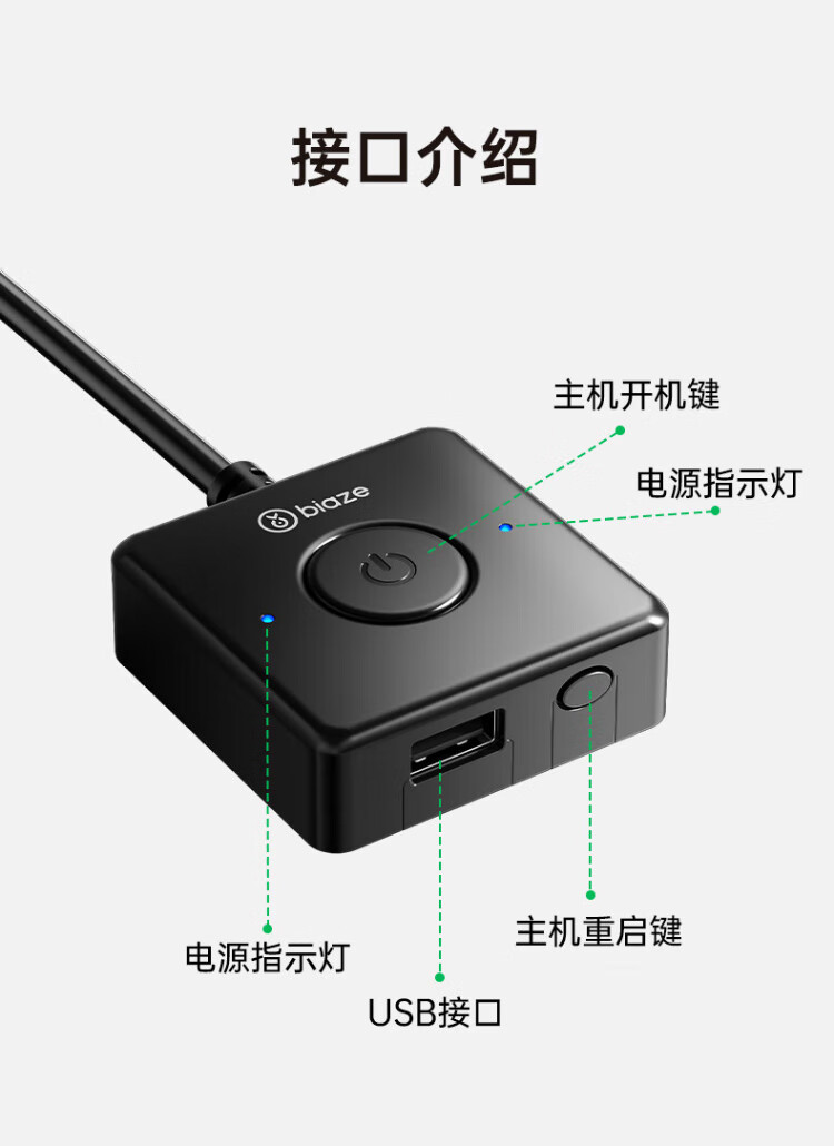 毕亚兹 电脑开机键 外置桌面开关按钮 家用台式主机箱网吧网咖电源外接USB数据传输一键重启延长线