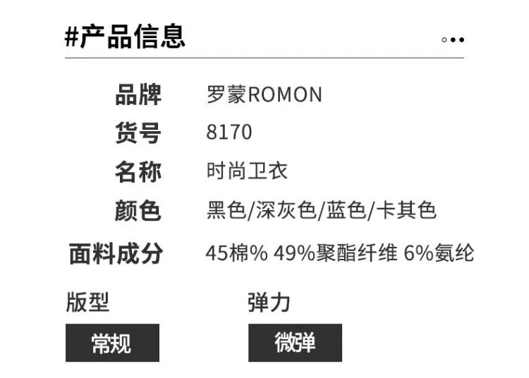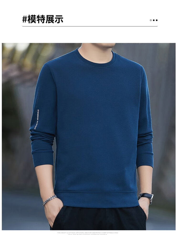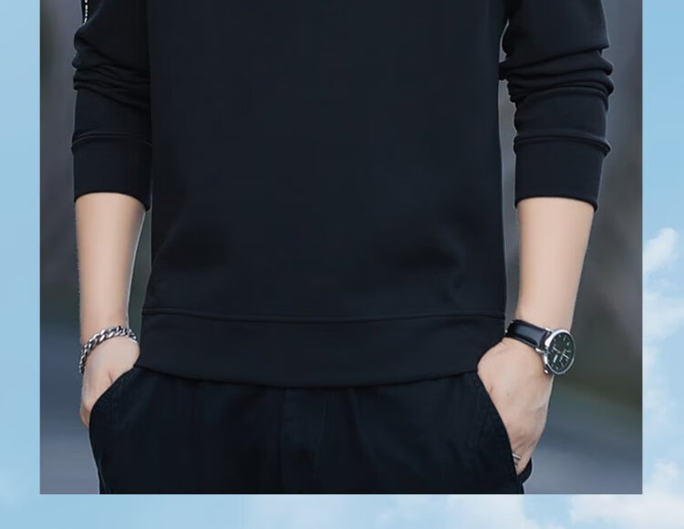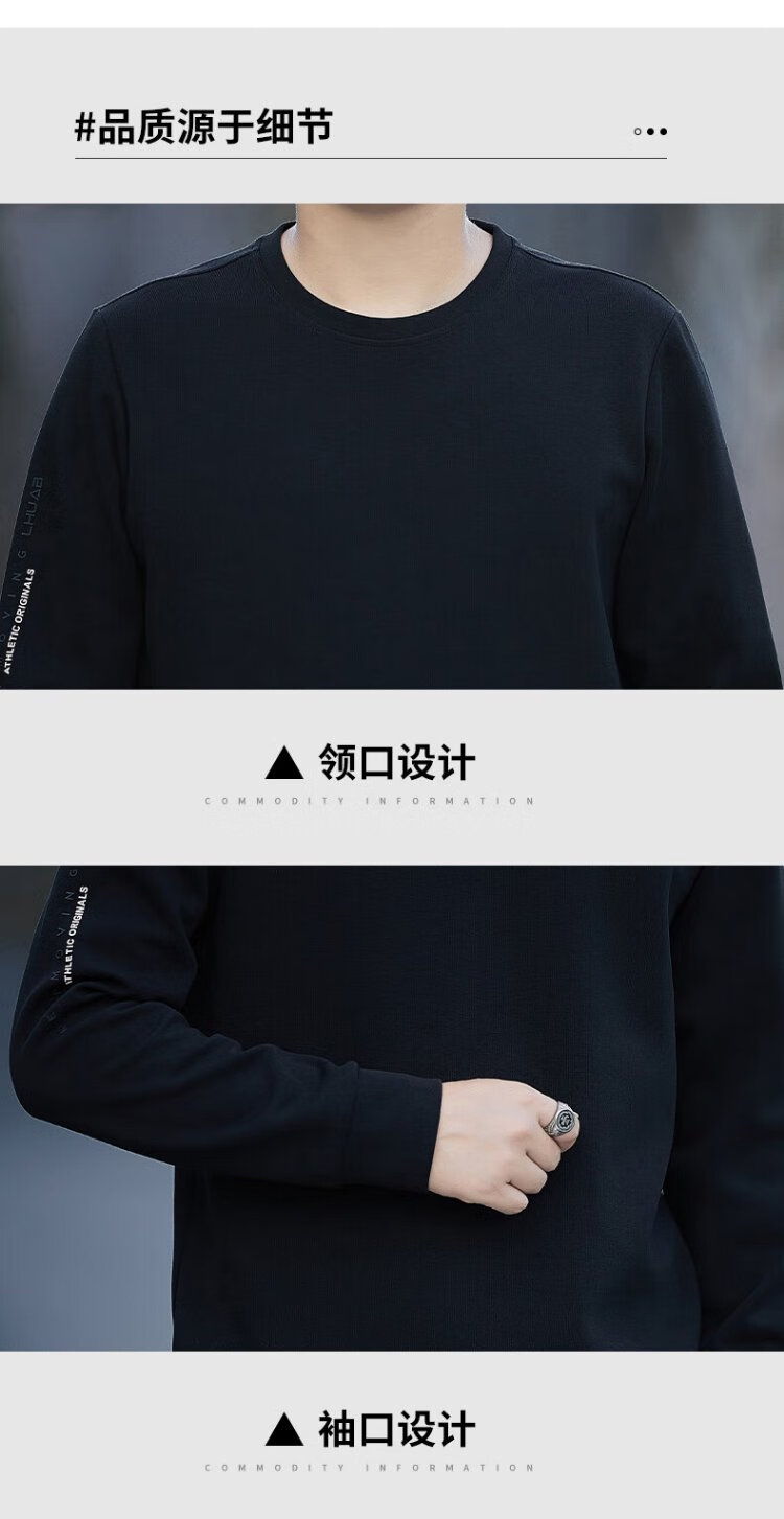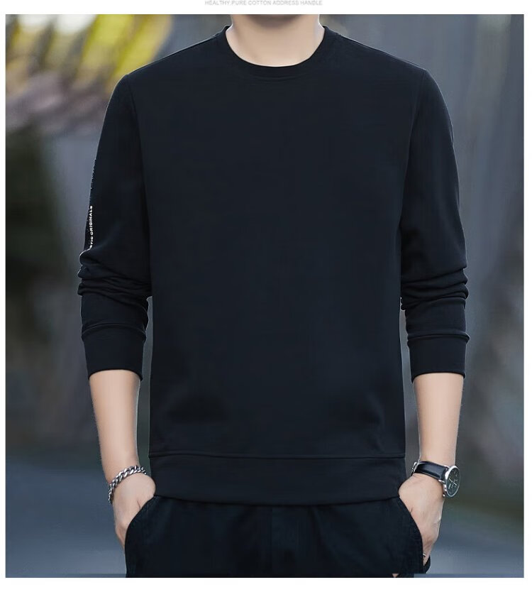 ROMON sweatshirt men's autumn and winter long-sleeved pullover T-shirt casual top comfortable jacket bottoming shirt 8170 black 2XL
