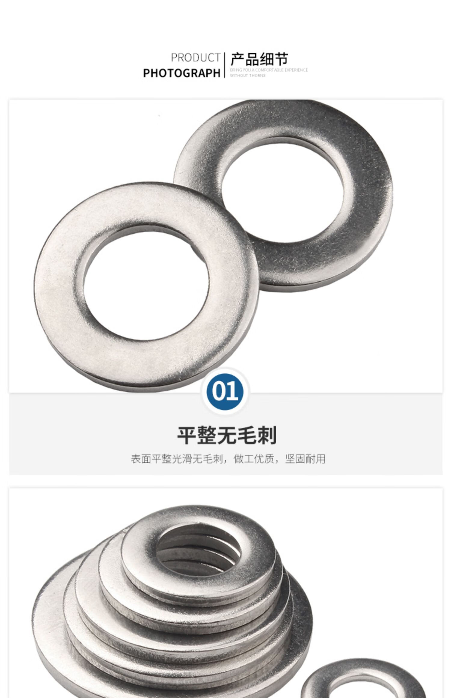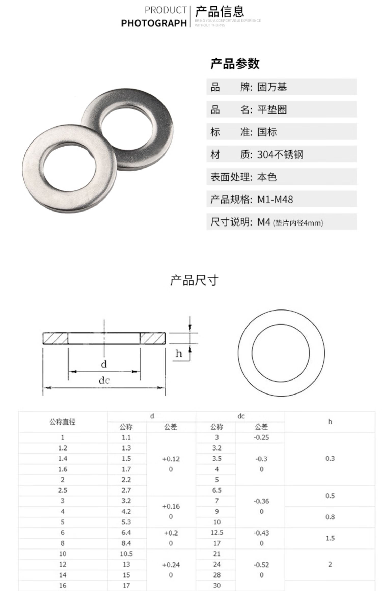固万基 平垫圈 304不锈钢超薄加大金属加厚圆形螺丝平垫介子华司 M8x16x1.5[500个]