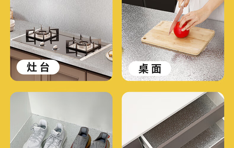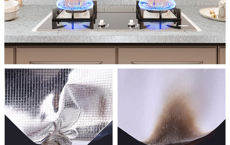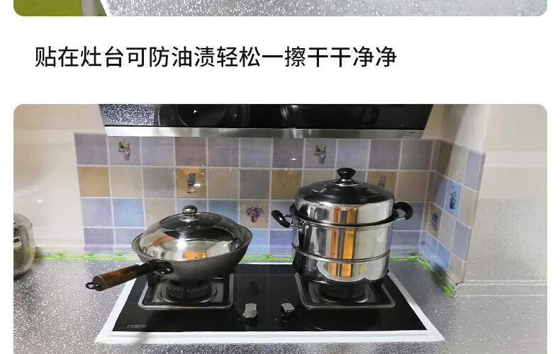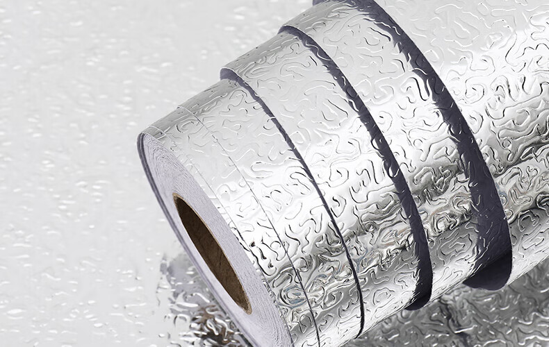Jingwu Ölbeständiger Küchenaufkleber, hochtemperaturbeständig, wasserfest, Antifouling-Tapete, selbstklebend, verdickte Aluminiumfolie, Papier, Zinnfolie, Schrank, Arbeitsplatte, Wandaufkleber
