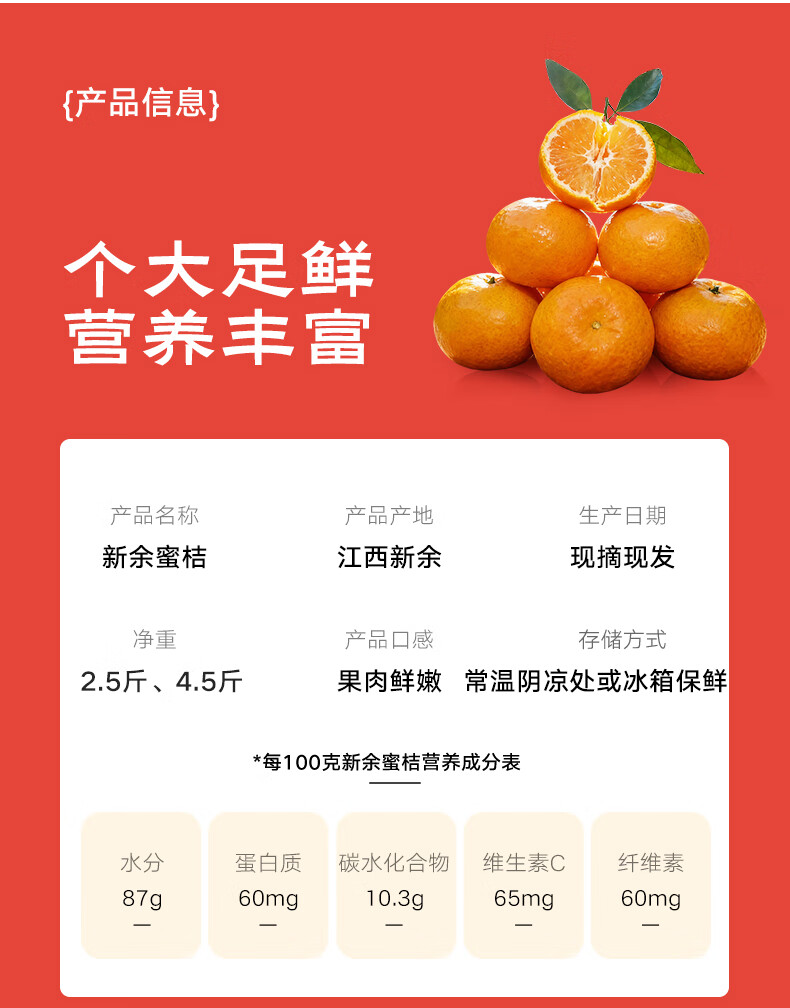 京鲜生 江西新余蜜桔 单果50-60mm 净重4.5斤 【精选家庭装】源头直发