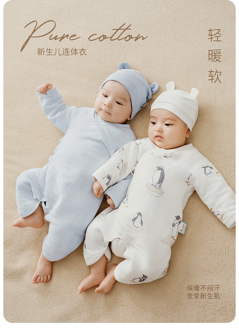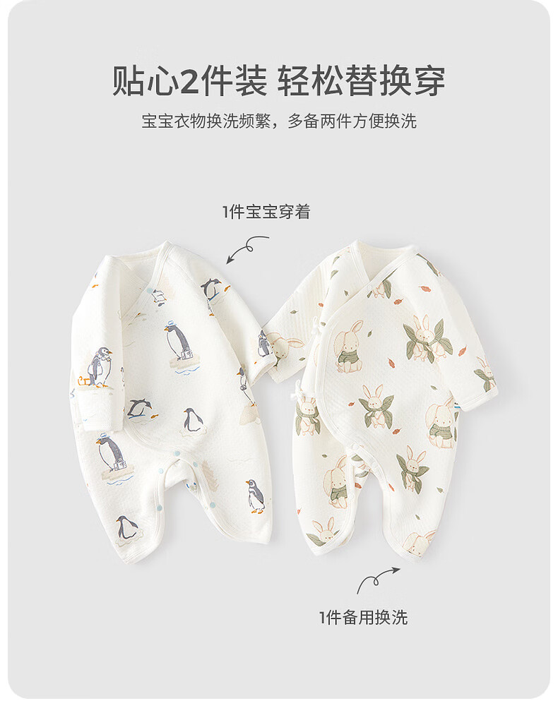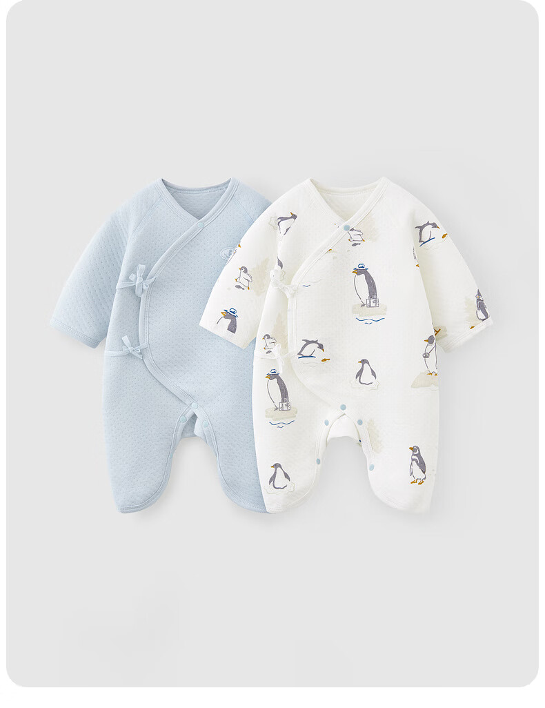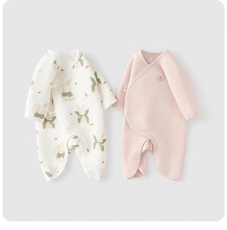 童泰(TONGTAI)婴儿蝴蝶衣秋冬0-6月宝宝连体哈衣2件装TS43J183-DS蓝色66cm