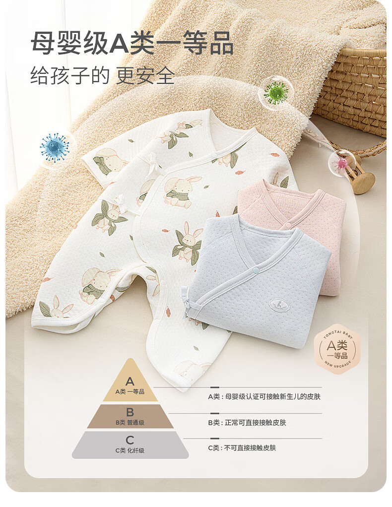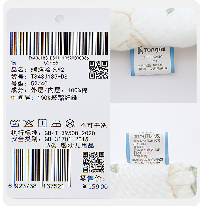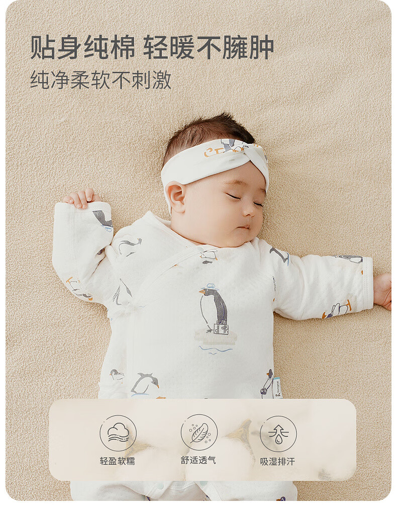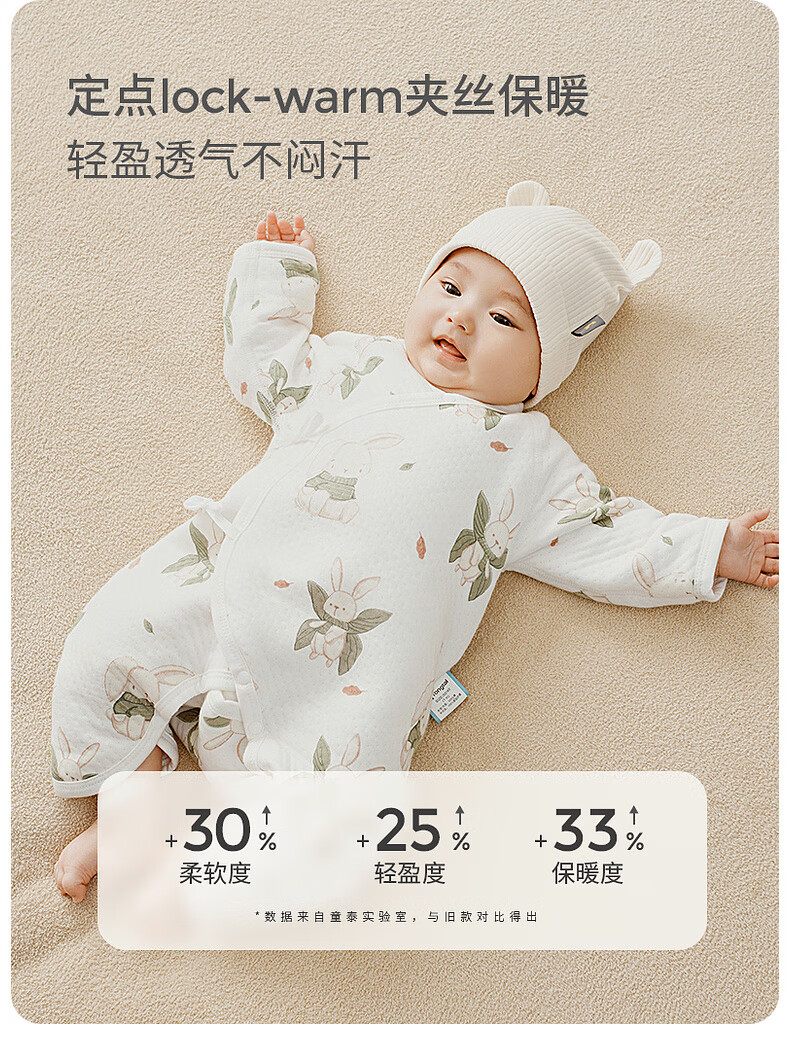 童泰(TONGTAI)婴儿蝴蝶衣秋冬0-6月宝宝连体哈衣2件装TS43J183-DS蓝色66cm