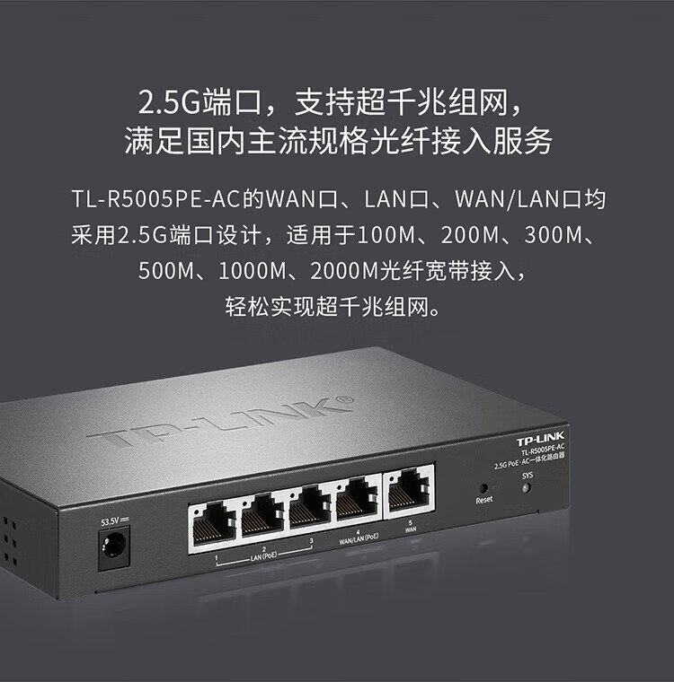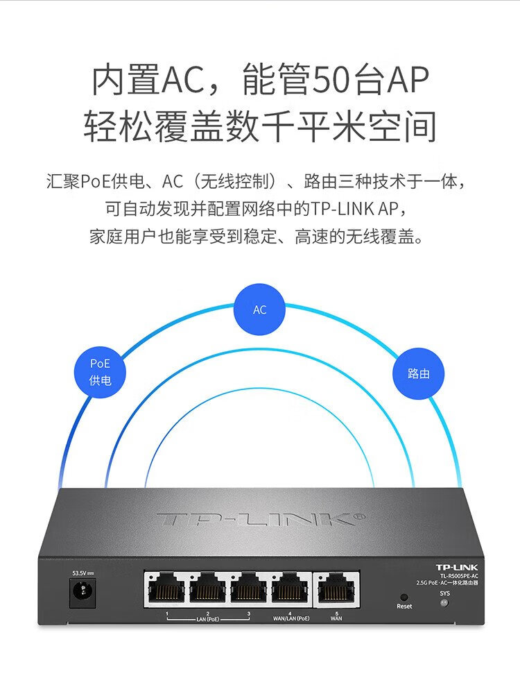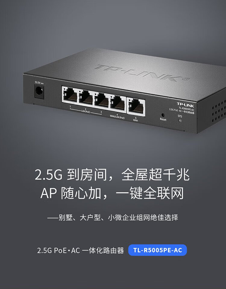 TP-LINK2.5G PoE·AC一体化企业级路由器 适配TP-LINK Wifi7 ap面板 5口2.5G功率增强型TL-R5005PE-AC