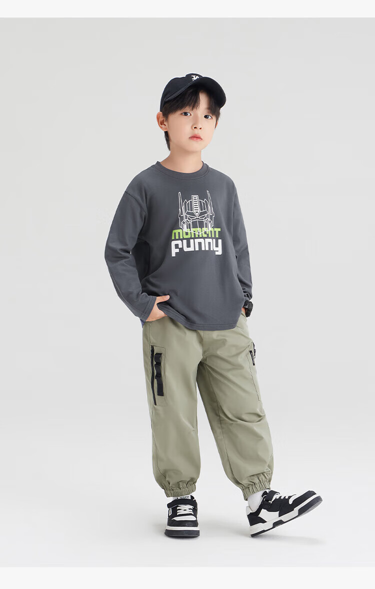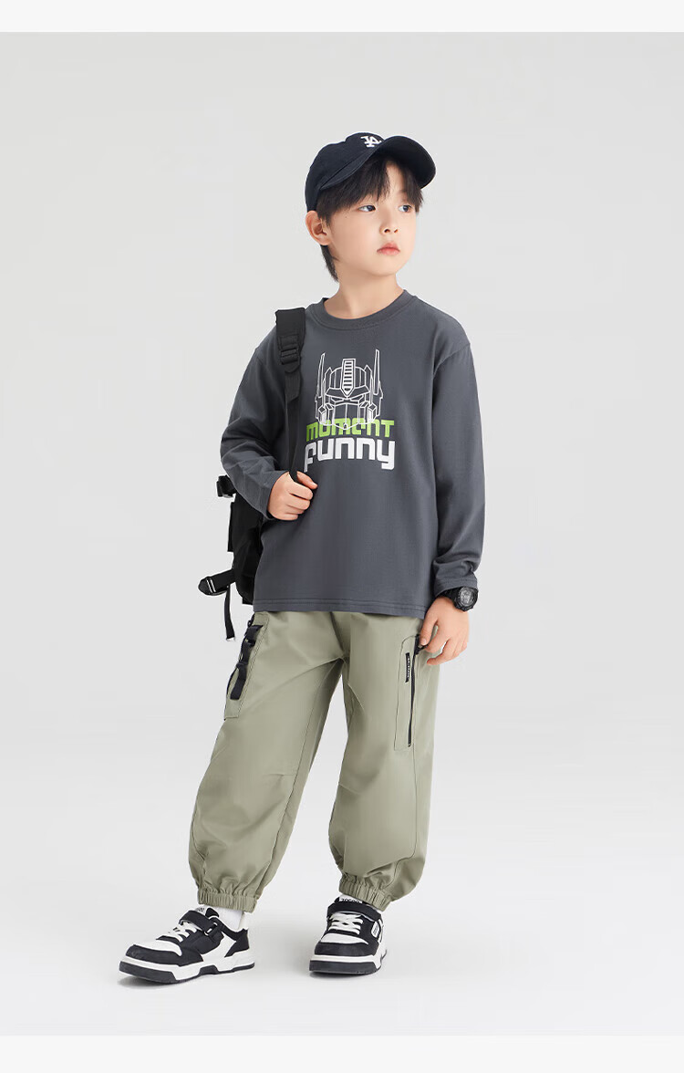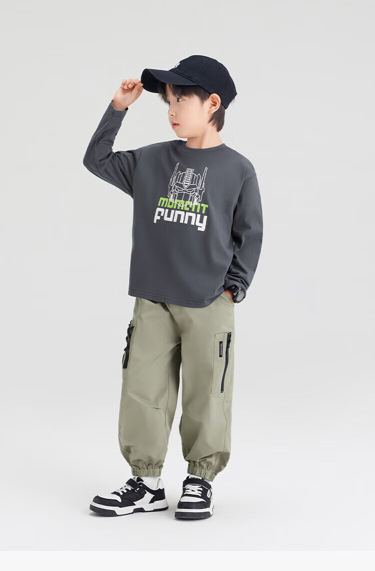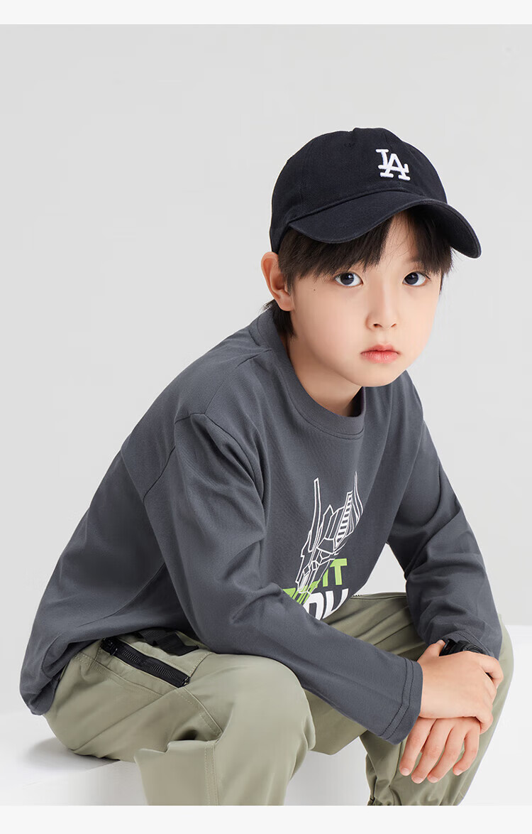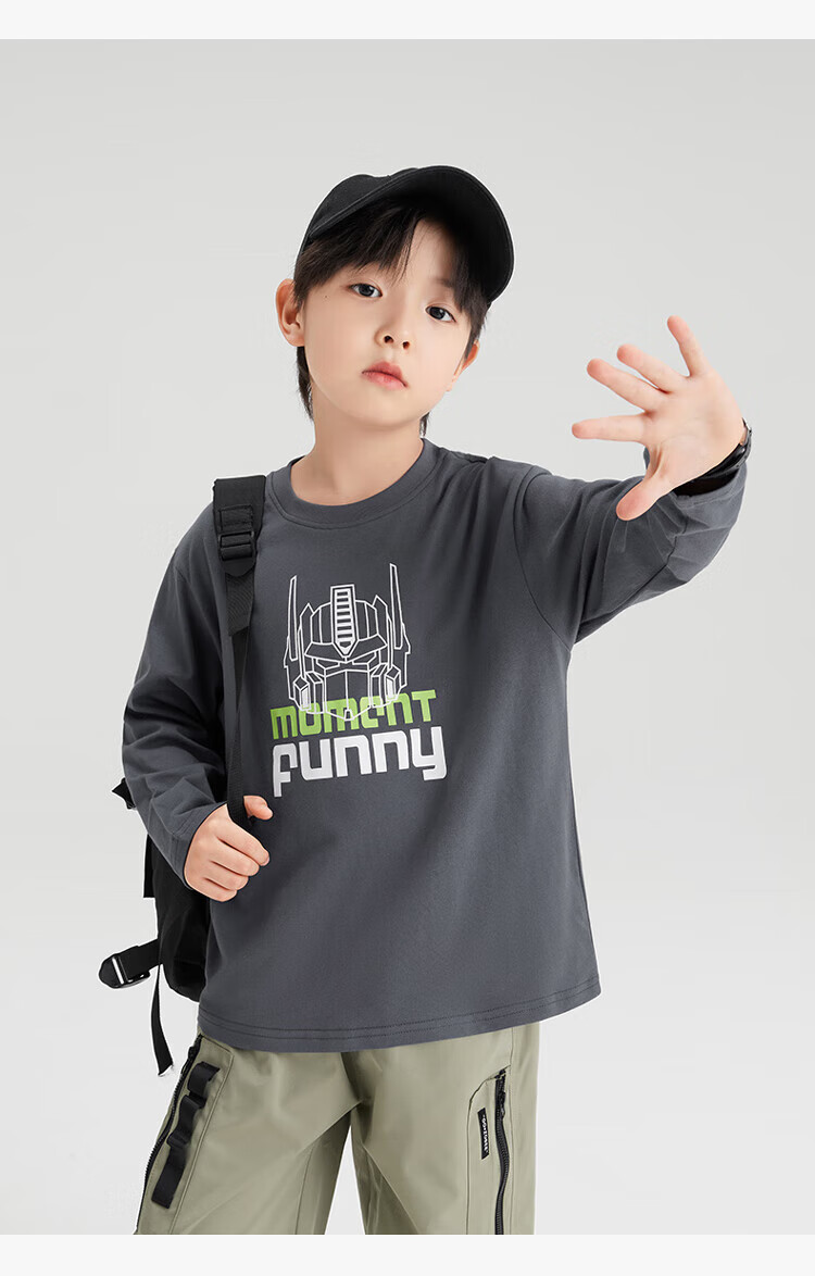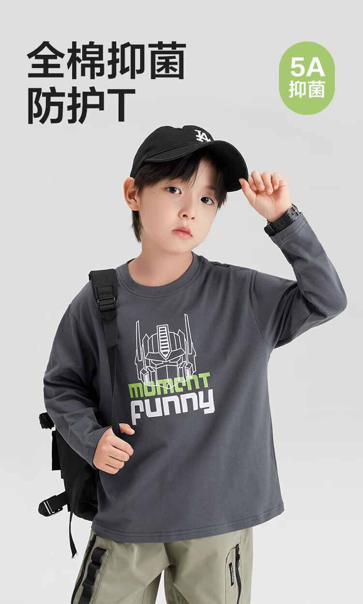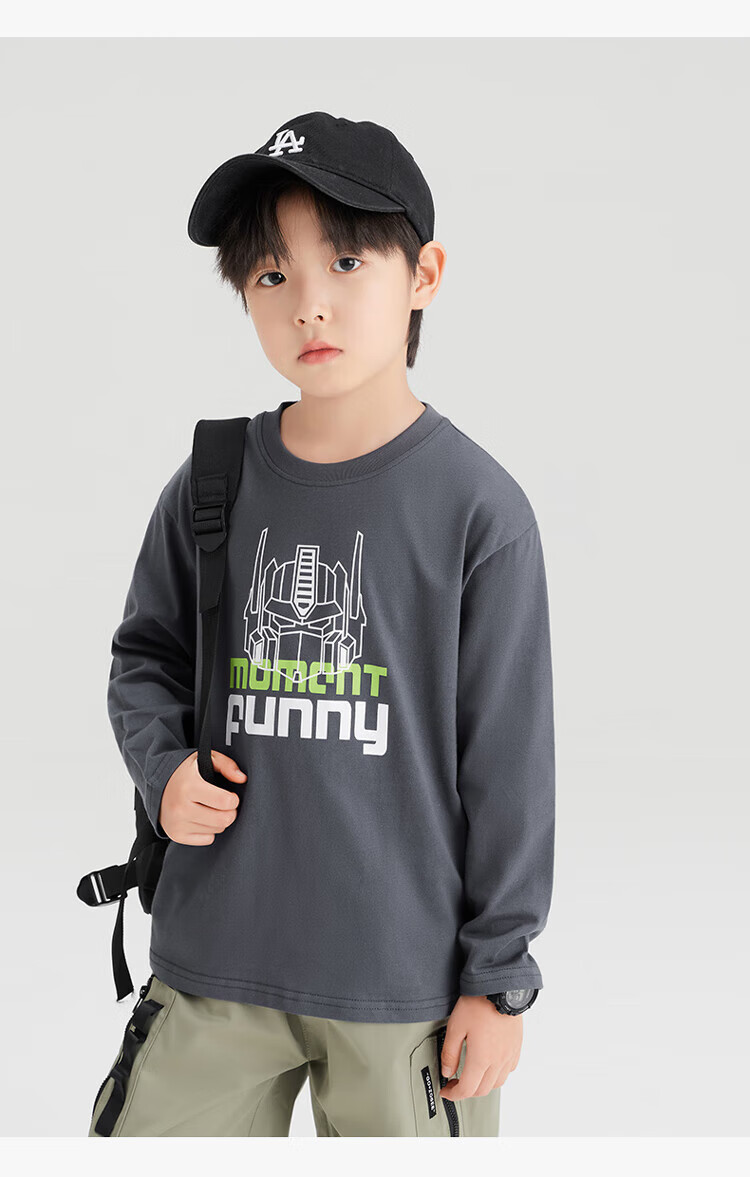 Zuoxi Boys T-shirt Long Sleeve Children's Pure Cotton Spring and Autumn Clothing 2025 New Boys and Older Children's Bottoming Shirt Top Gray 150