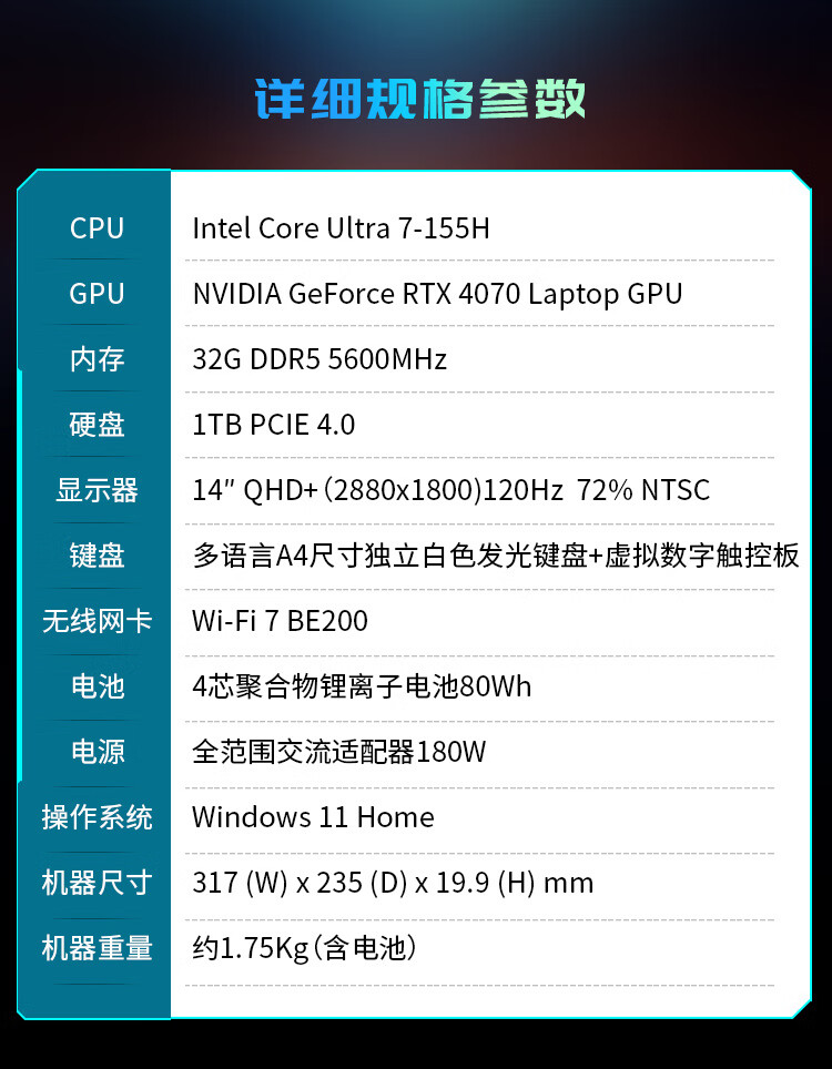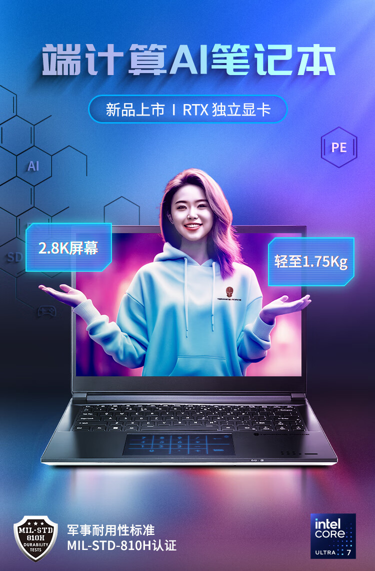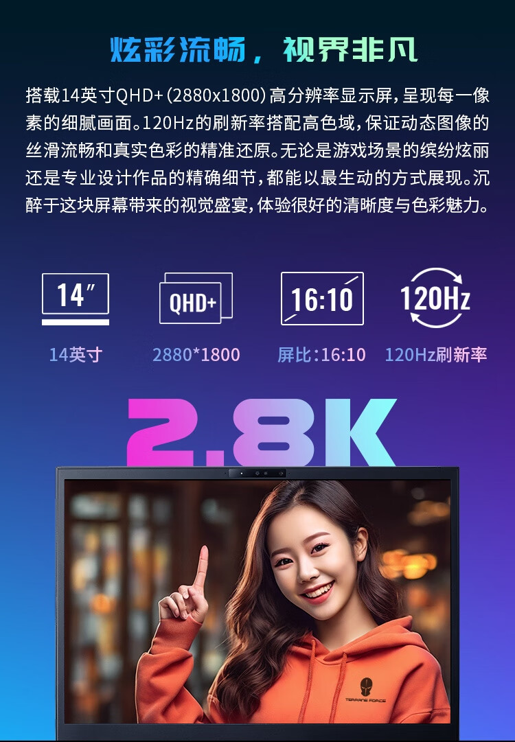 未来人类(Terrans Force)S4 国家补贴20% AI计算14英寸轻薄高算力设计游戏笔记本电脑(U7-155H RTX4070 32G 1T 2.8K)