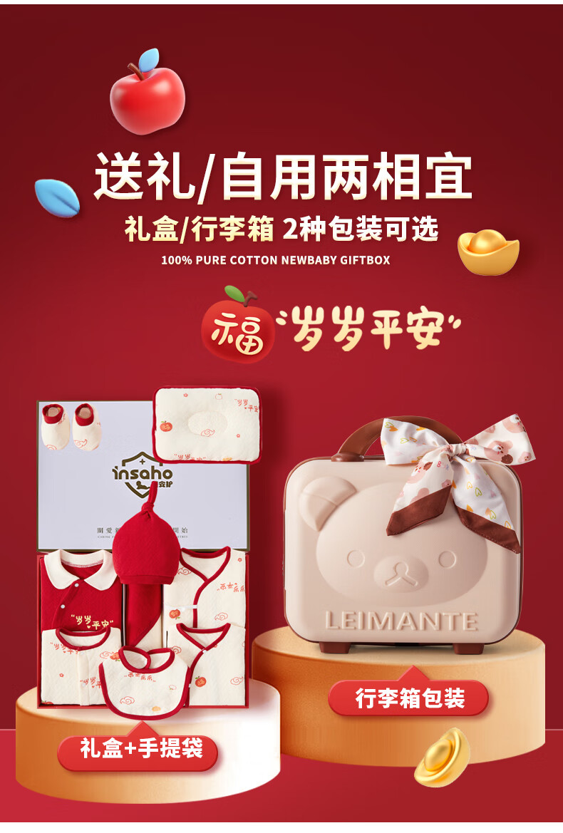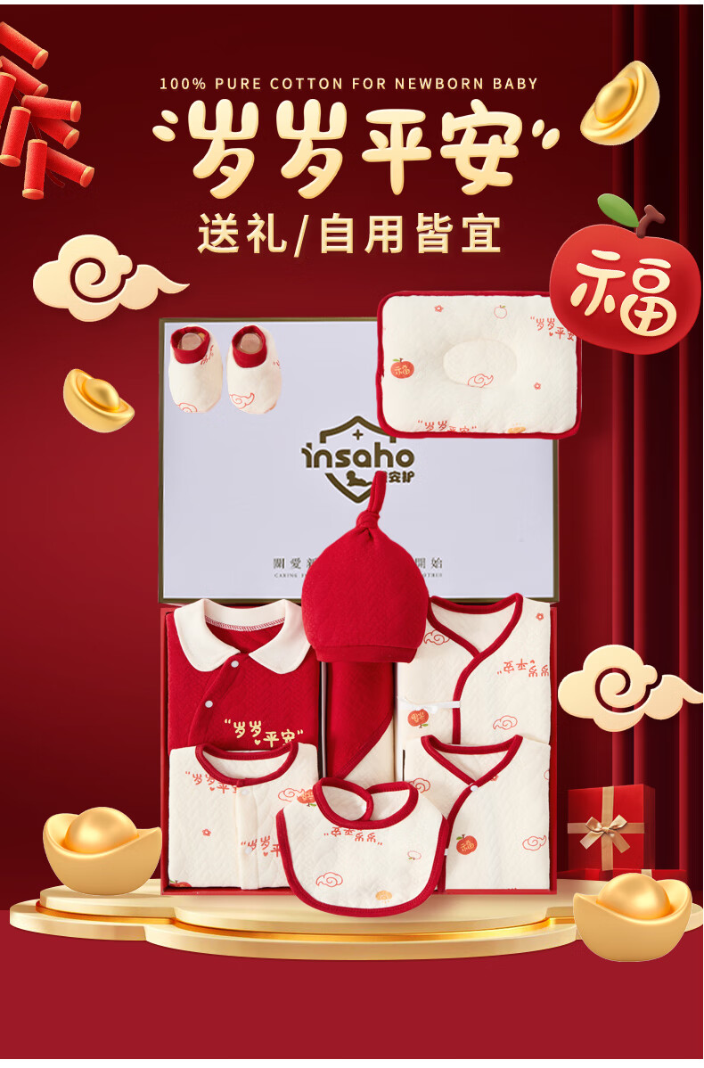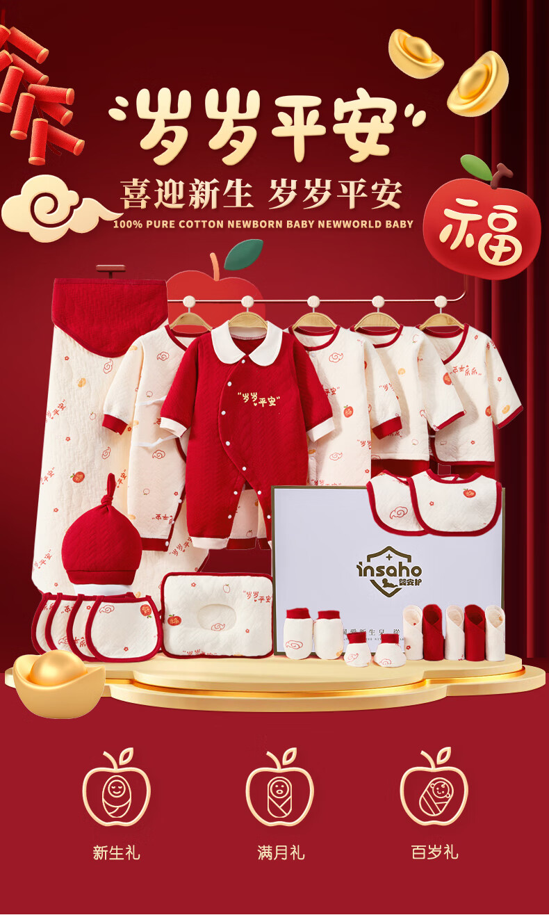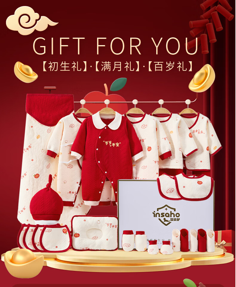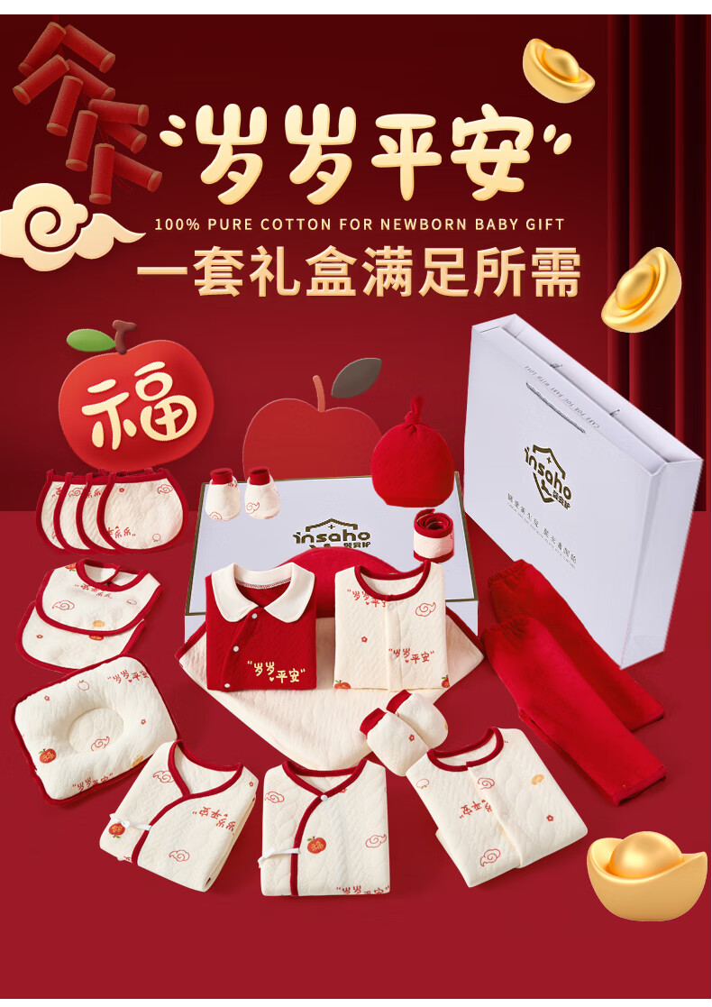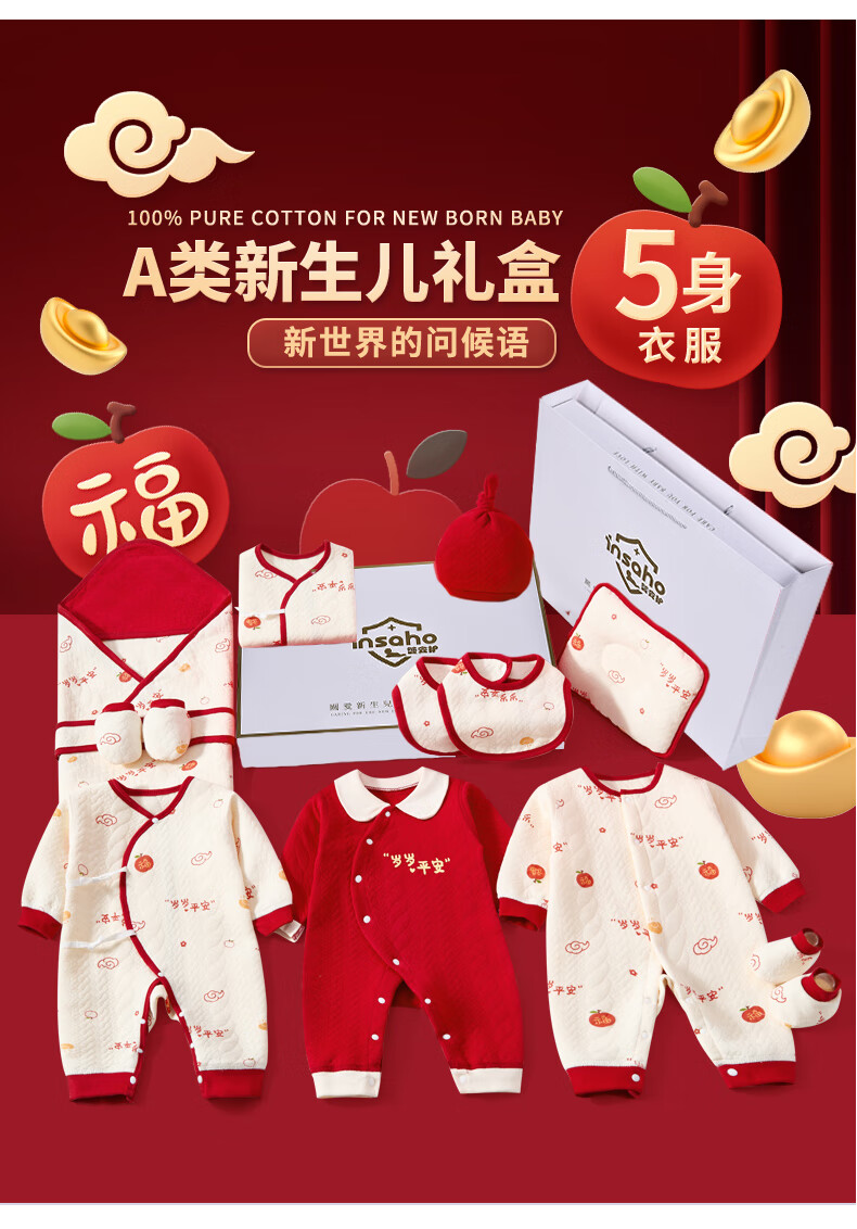 INSAHO baby clothes, spring and summer seasons, newborn gift box set, newborn full moon and 100 days baby newborn meeting gift
