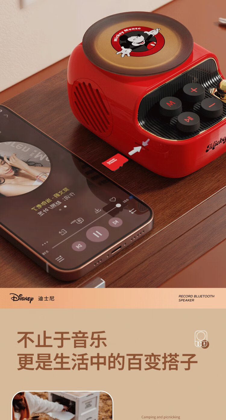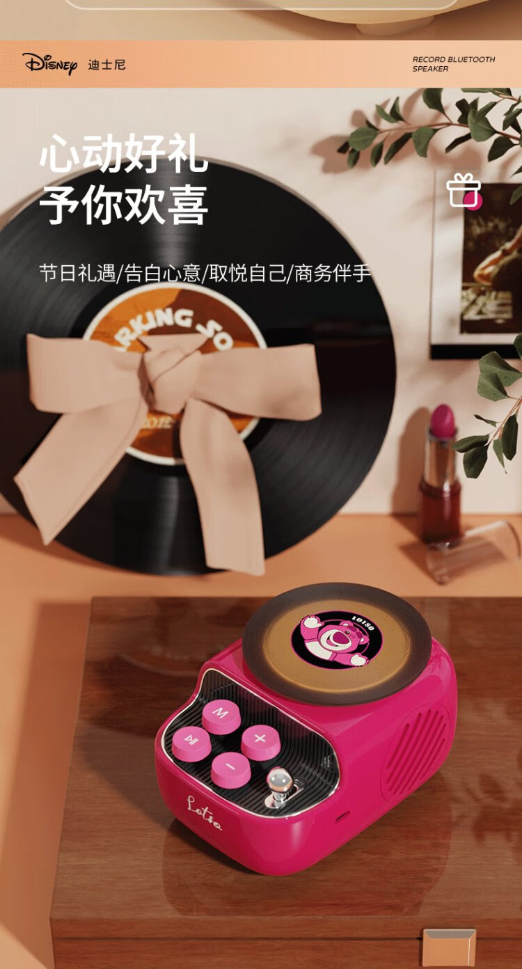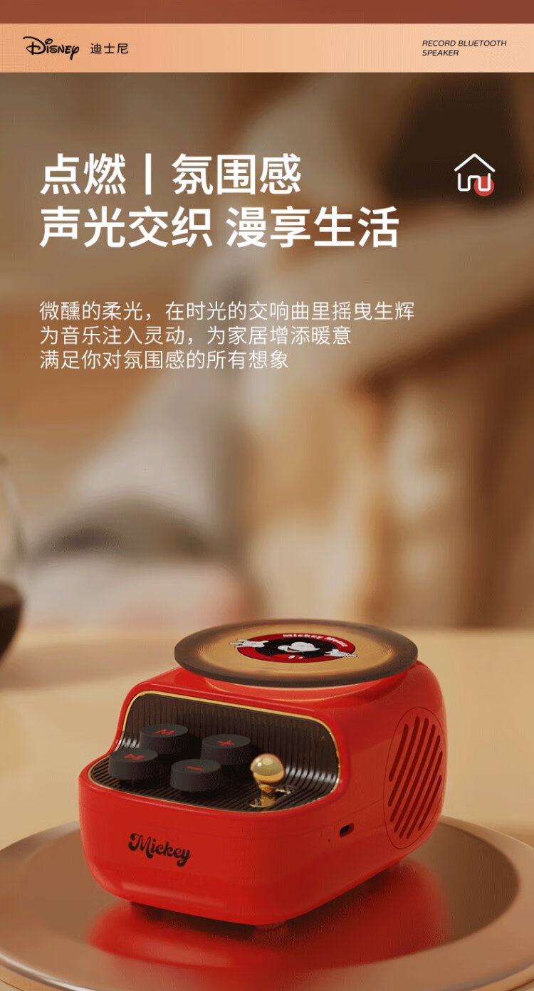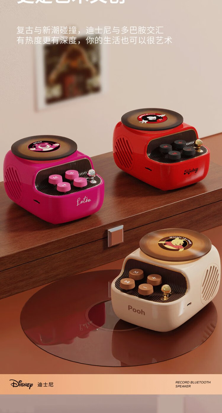 迪士尼(DISNEY)蓝牙音箱音响黑胶唱片机家用桌面高音质低音炮小型男女生日礼物礼盒高级小众实用 S7米奇
