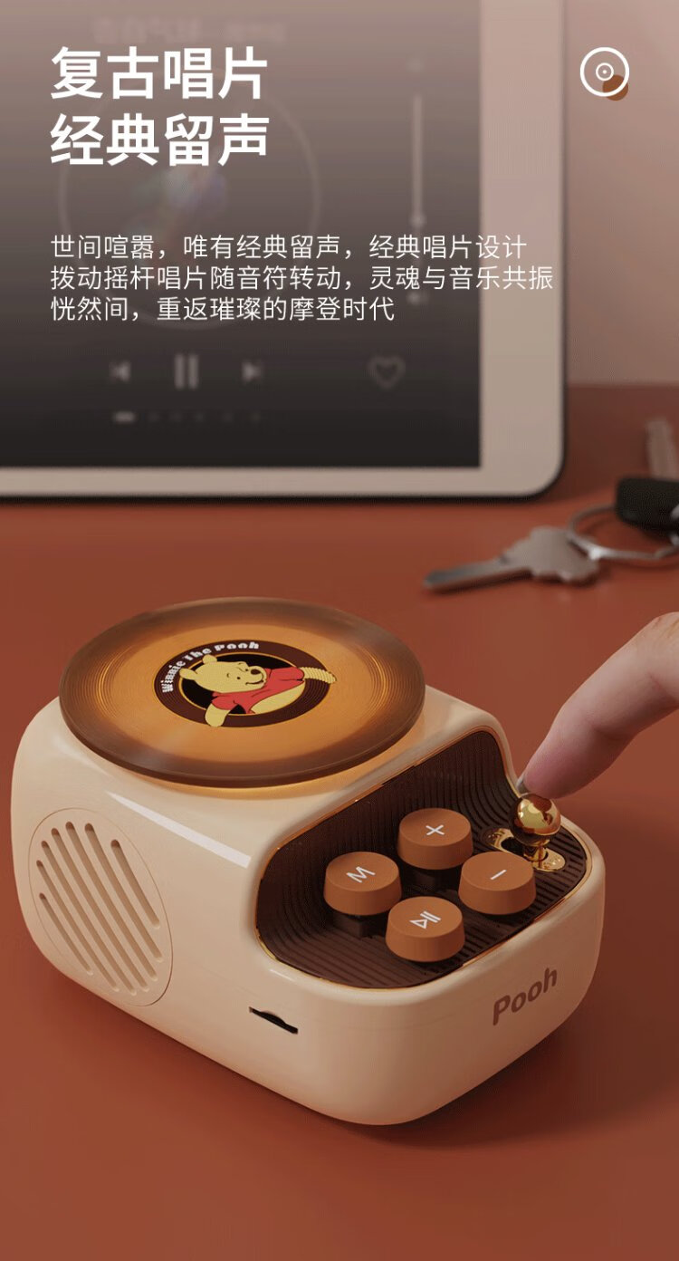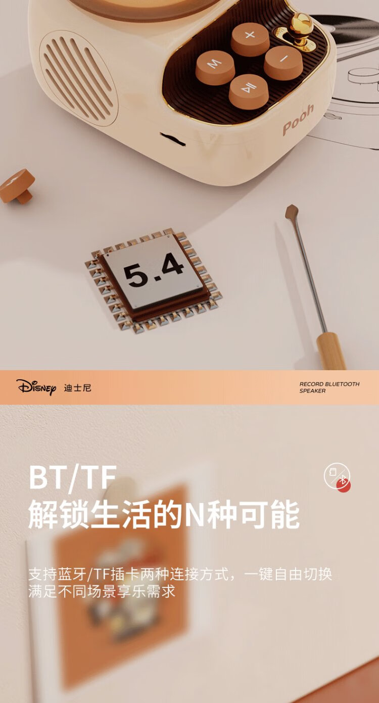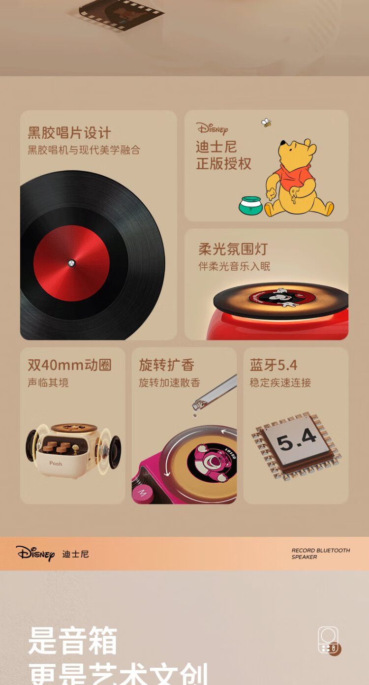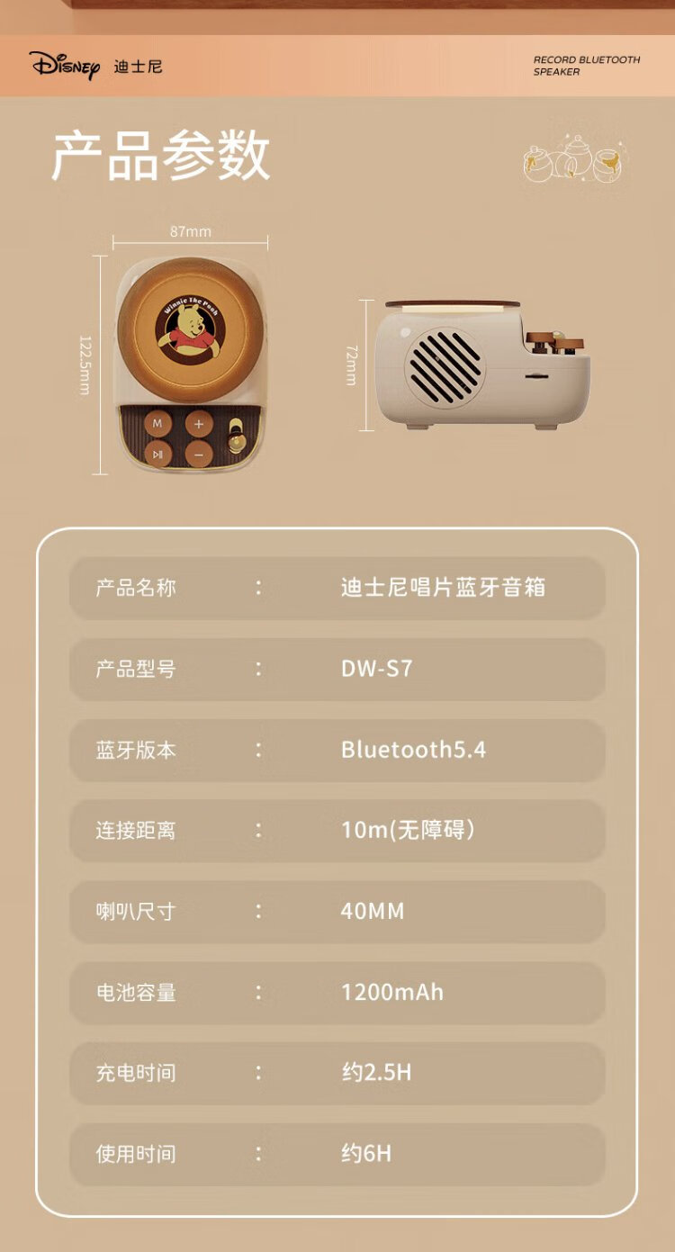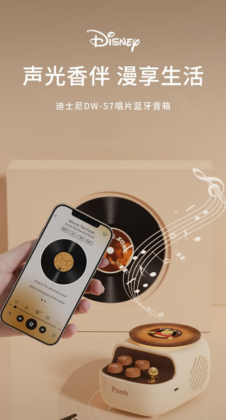 迪士尼(DISNEY)蓝牙音箱音响黑胶唱片机家用桌面高音质低音炮小型男女生日礼物礼盒高级小众实用 S7米奇