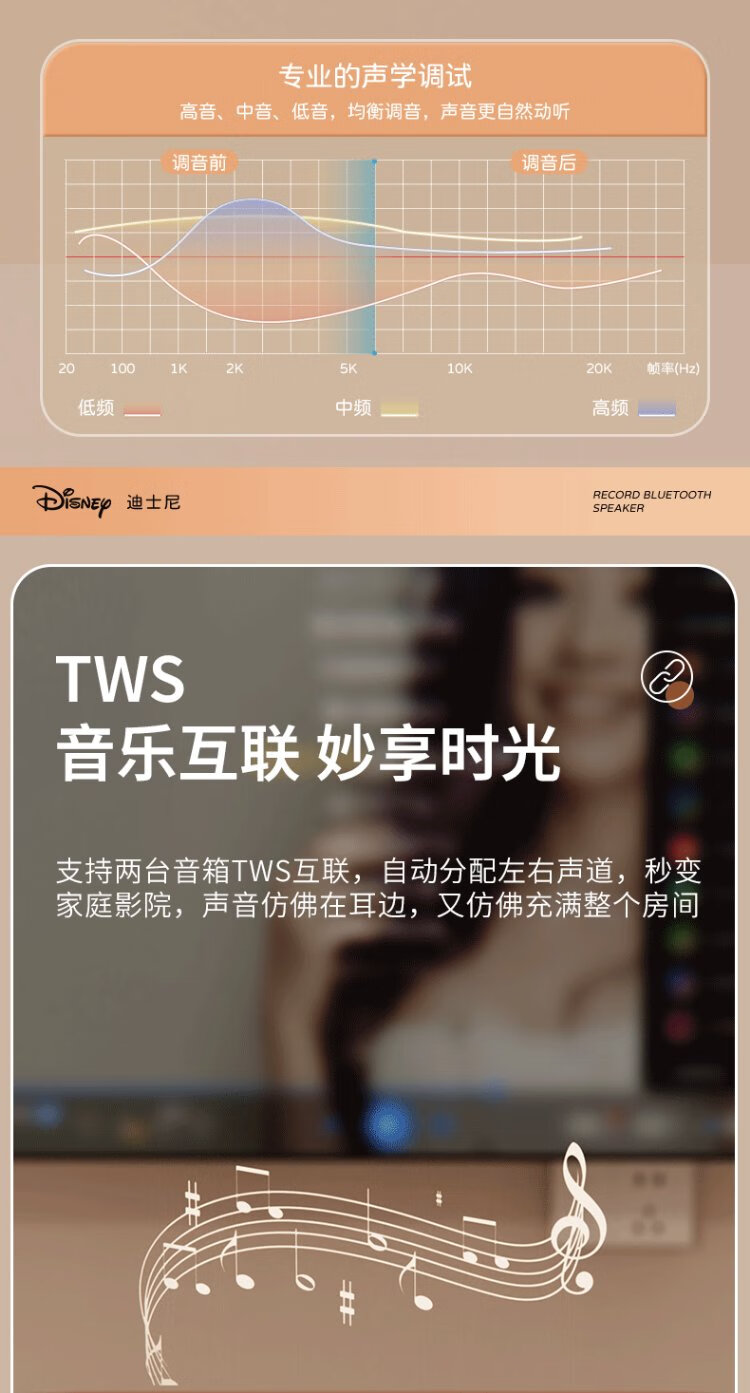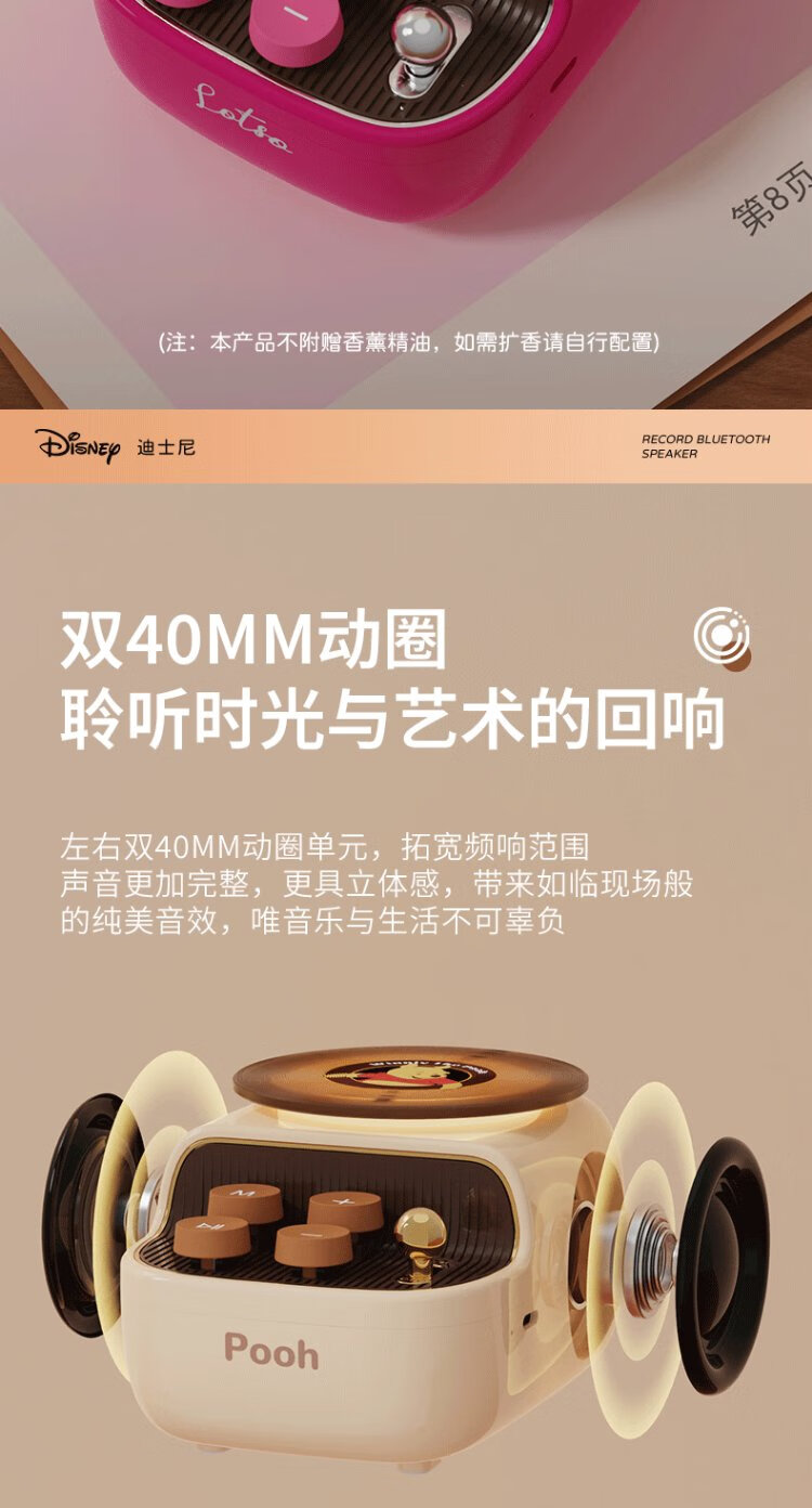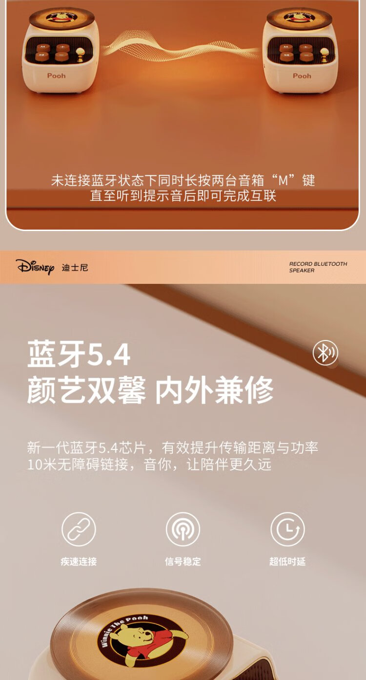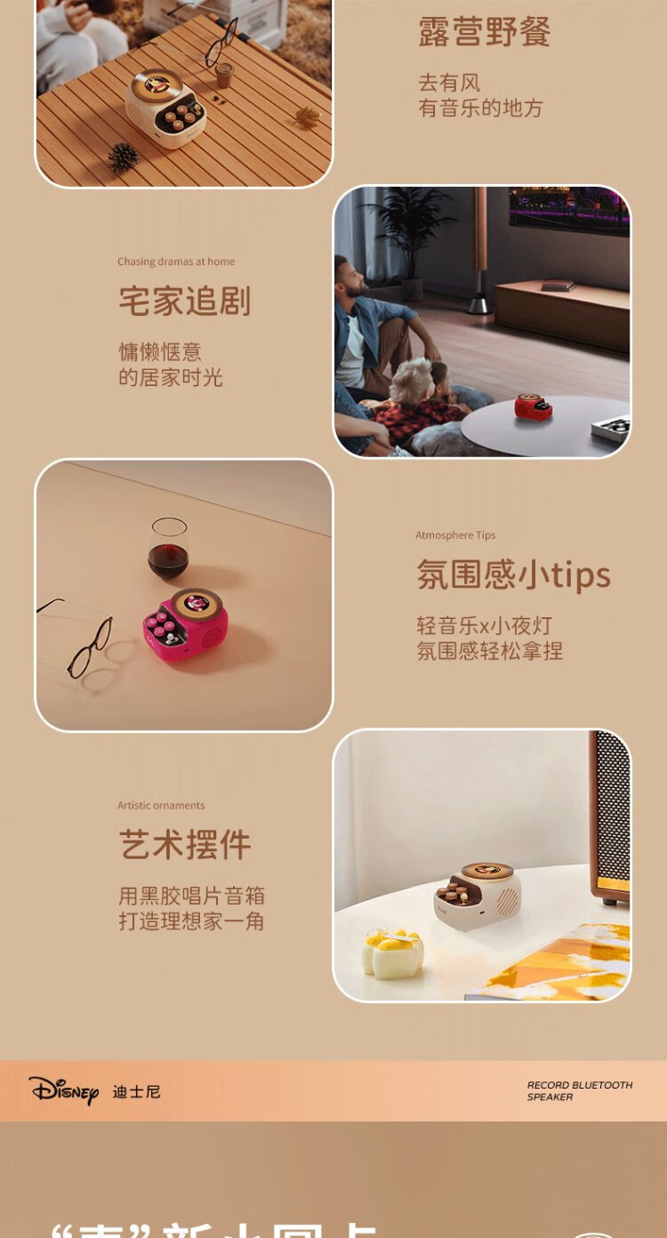 迪士尼(DISNEY)蓝牙音箱音响黑胶唱片机家用桌面高音质低音炮小型男女生日礼物礼盒高级小众实用 S7米奇