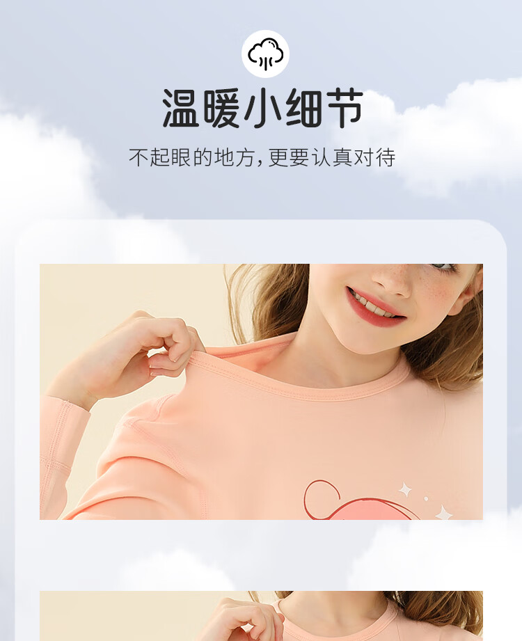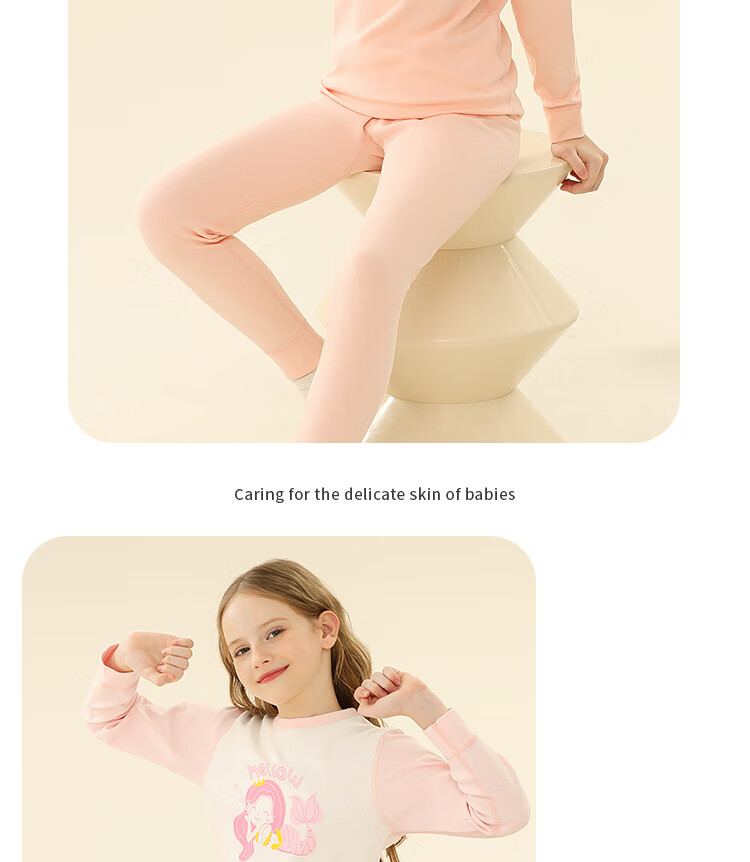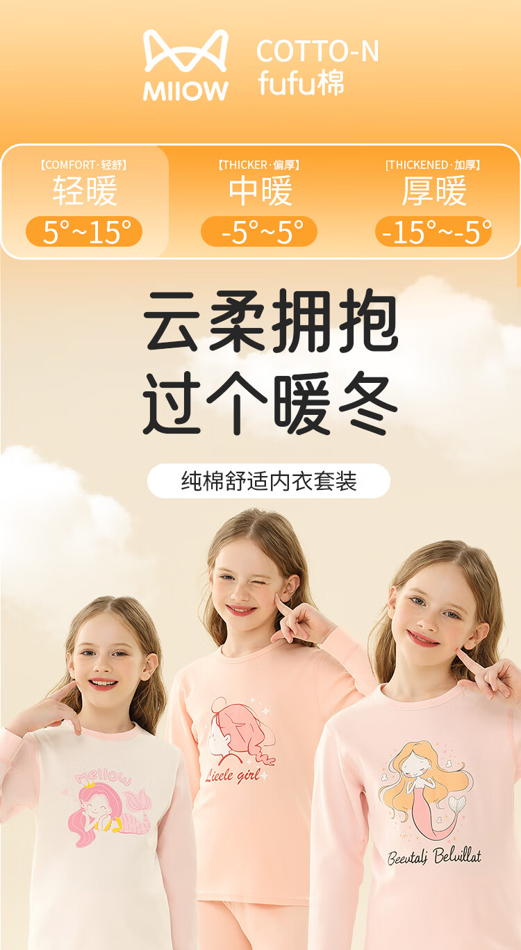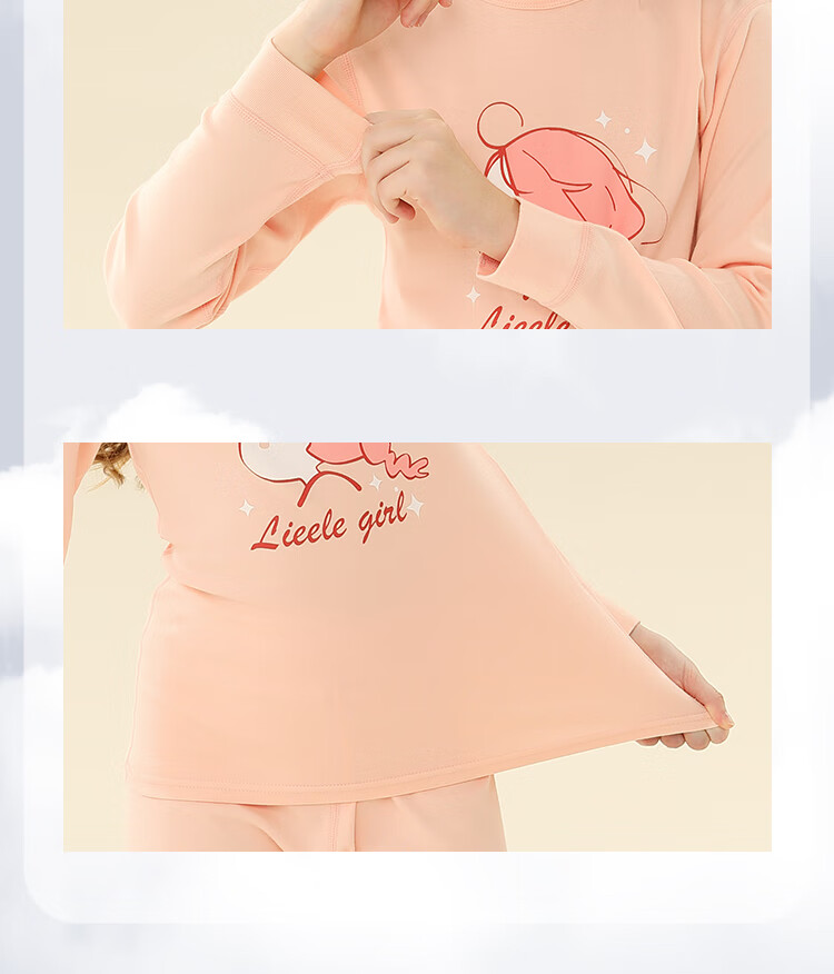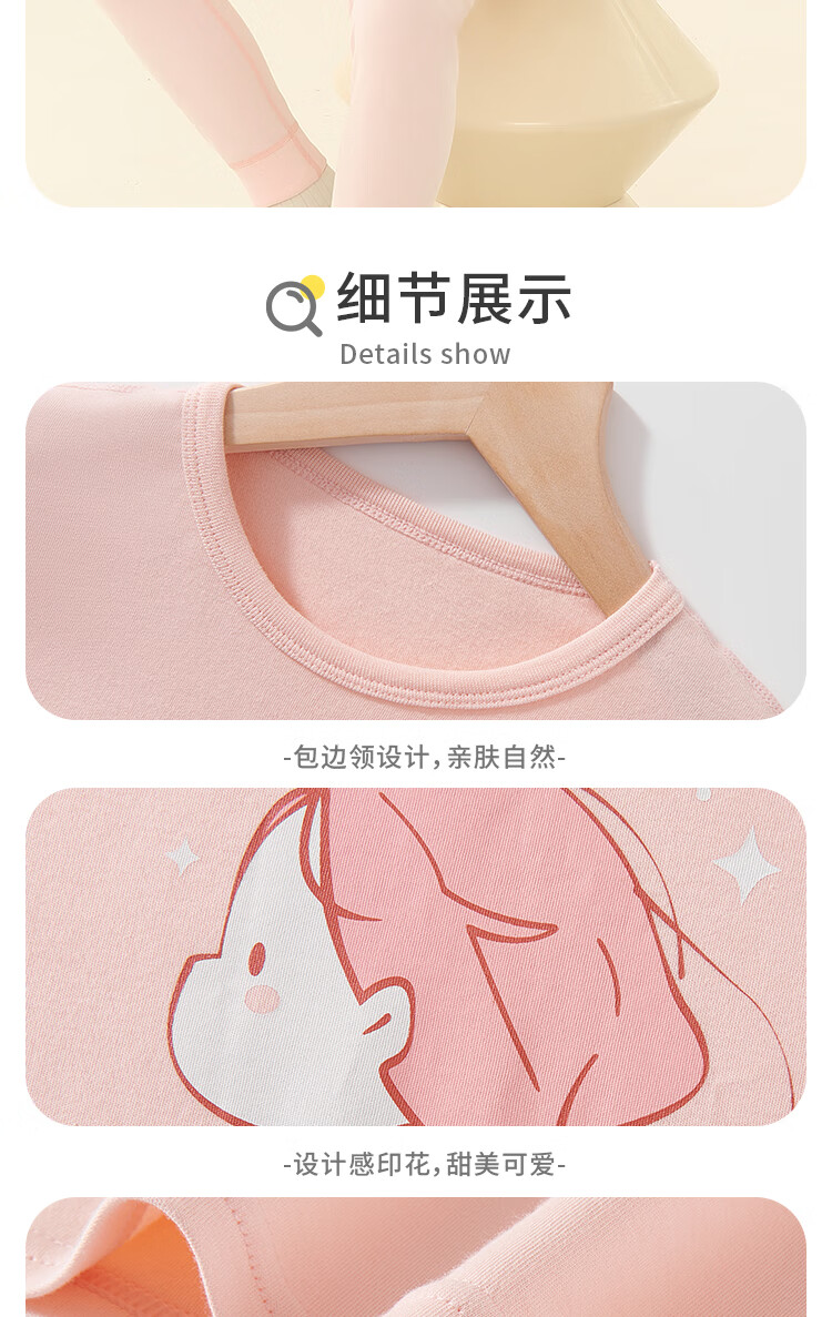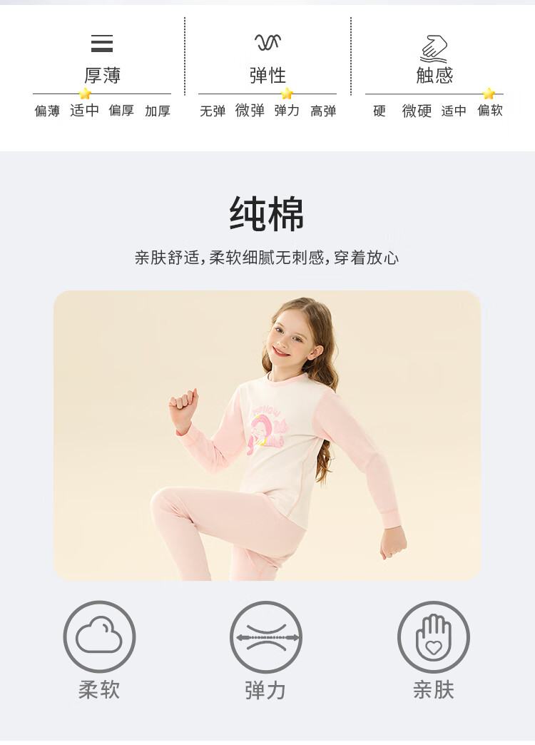 猫人儿童保暖内女童【100%棉】圆领秋衣秋裤女宝宝秋冬睡衣棉毛衫套装