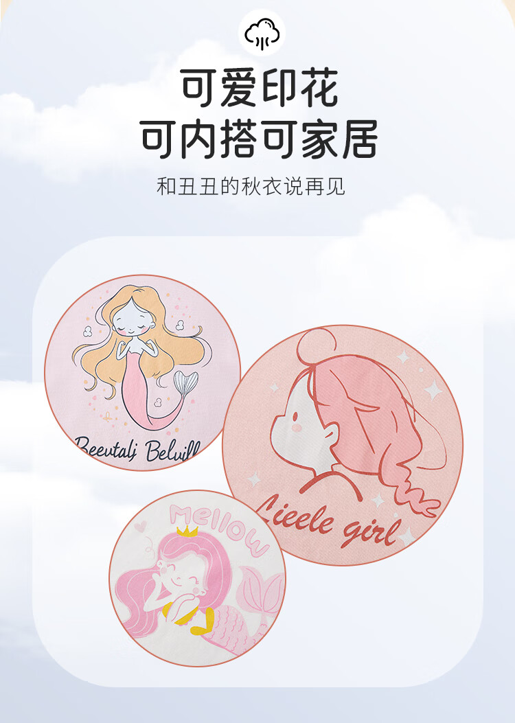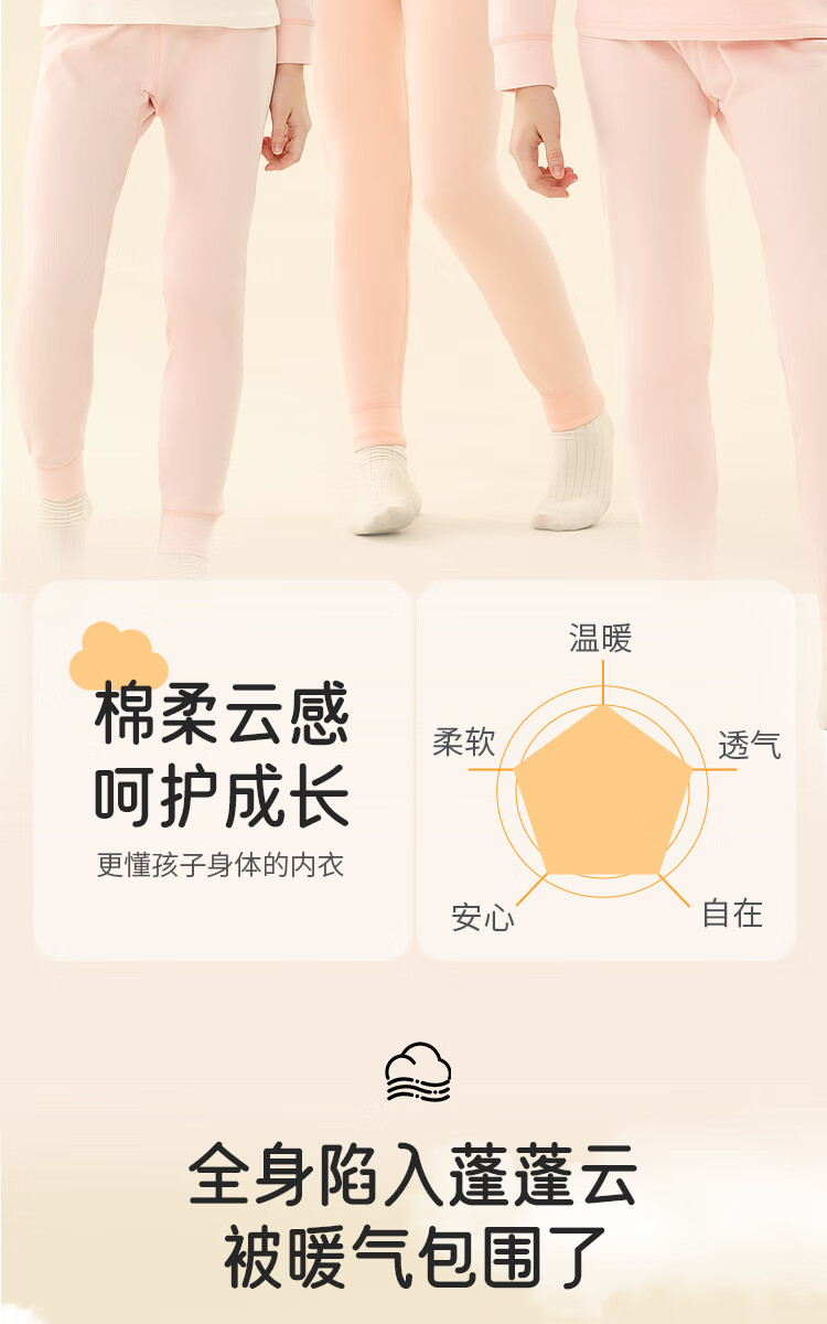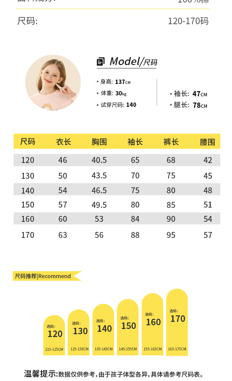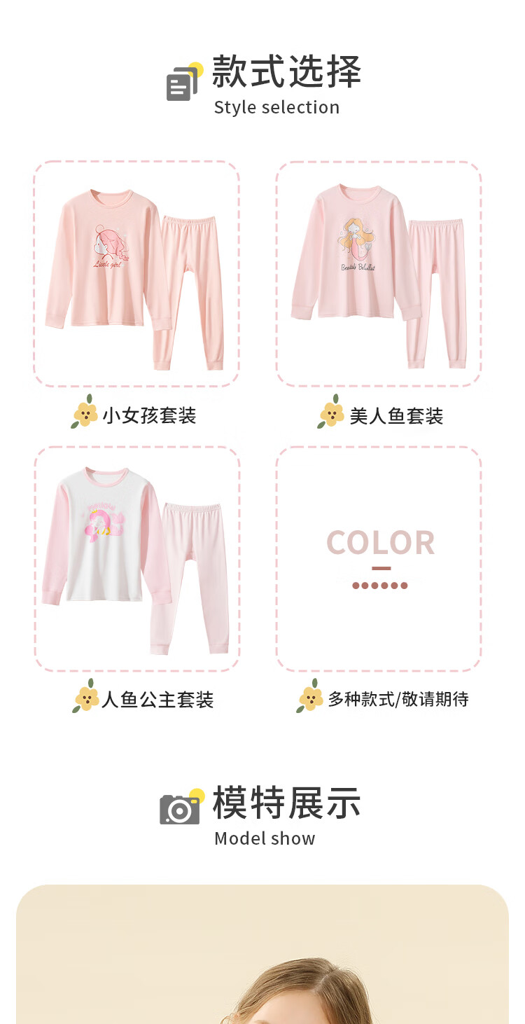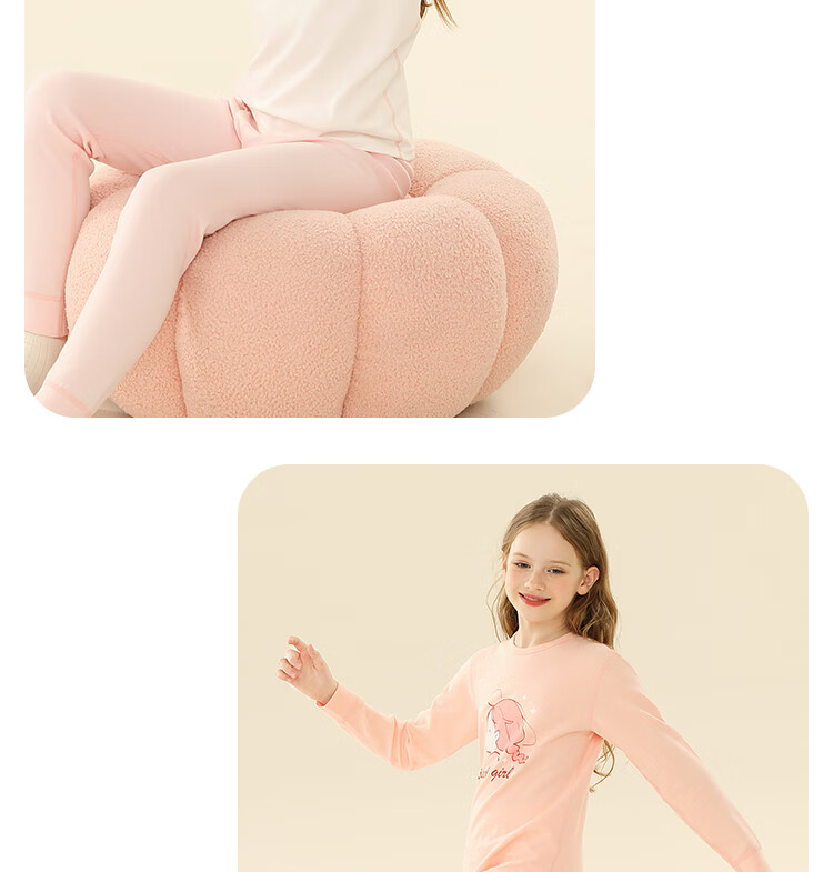 猫人儿童保暖内女童【100%棉】圆领秋衣秋裤女宝宝秋冬睡衣棉毛衫套装
