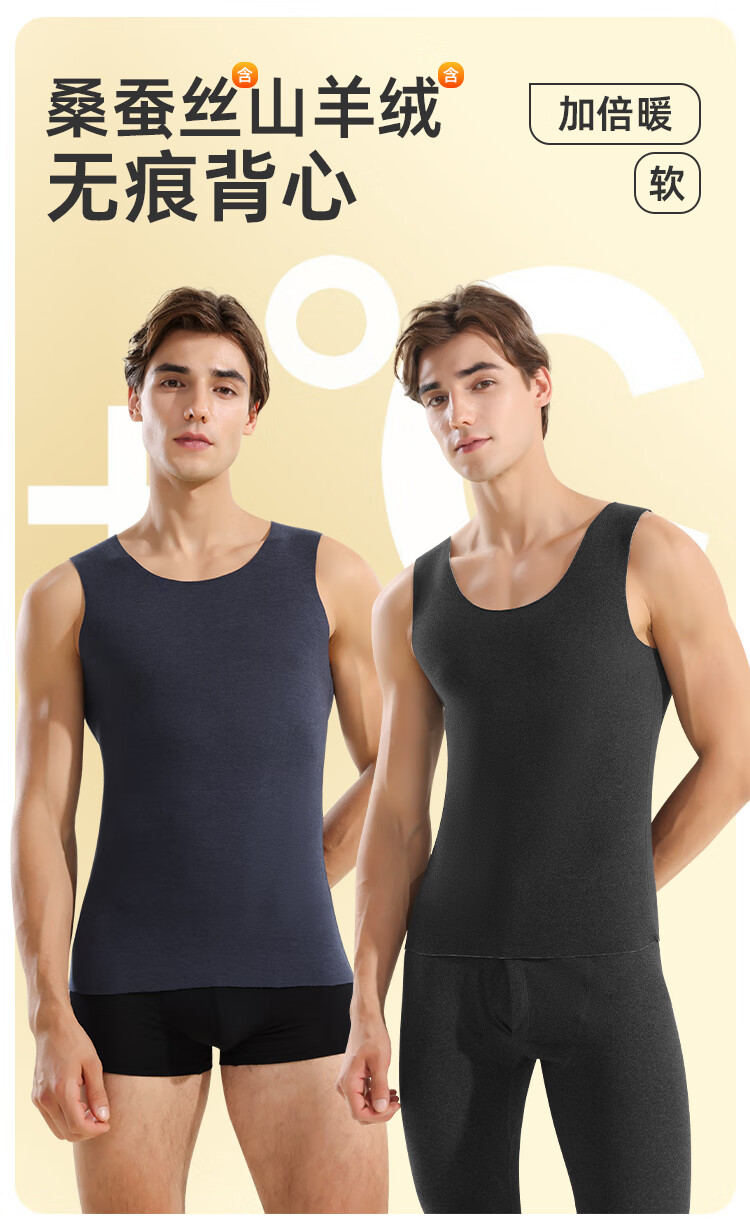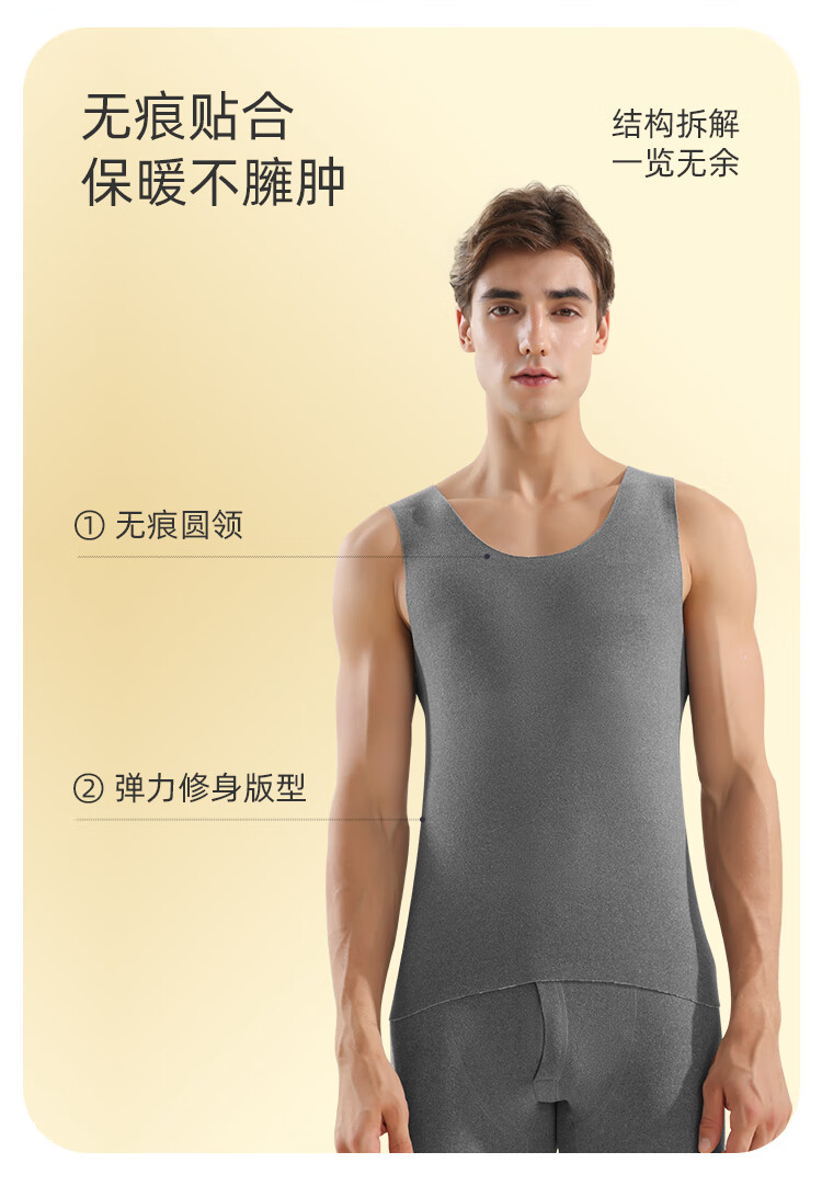 Catman 2-teilige Thermoweste Herrenunterwäsche mit Kaschmir- und Seidenheizung und spurlosem Herbst und Winter sowie kältebeständiger Weste und Weste aus Samt
