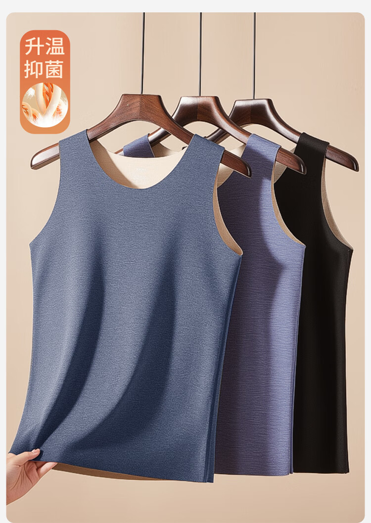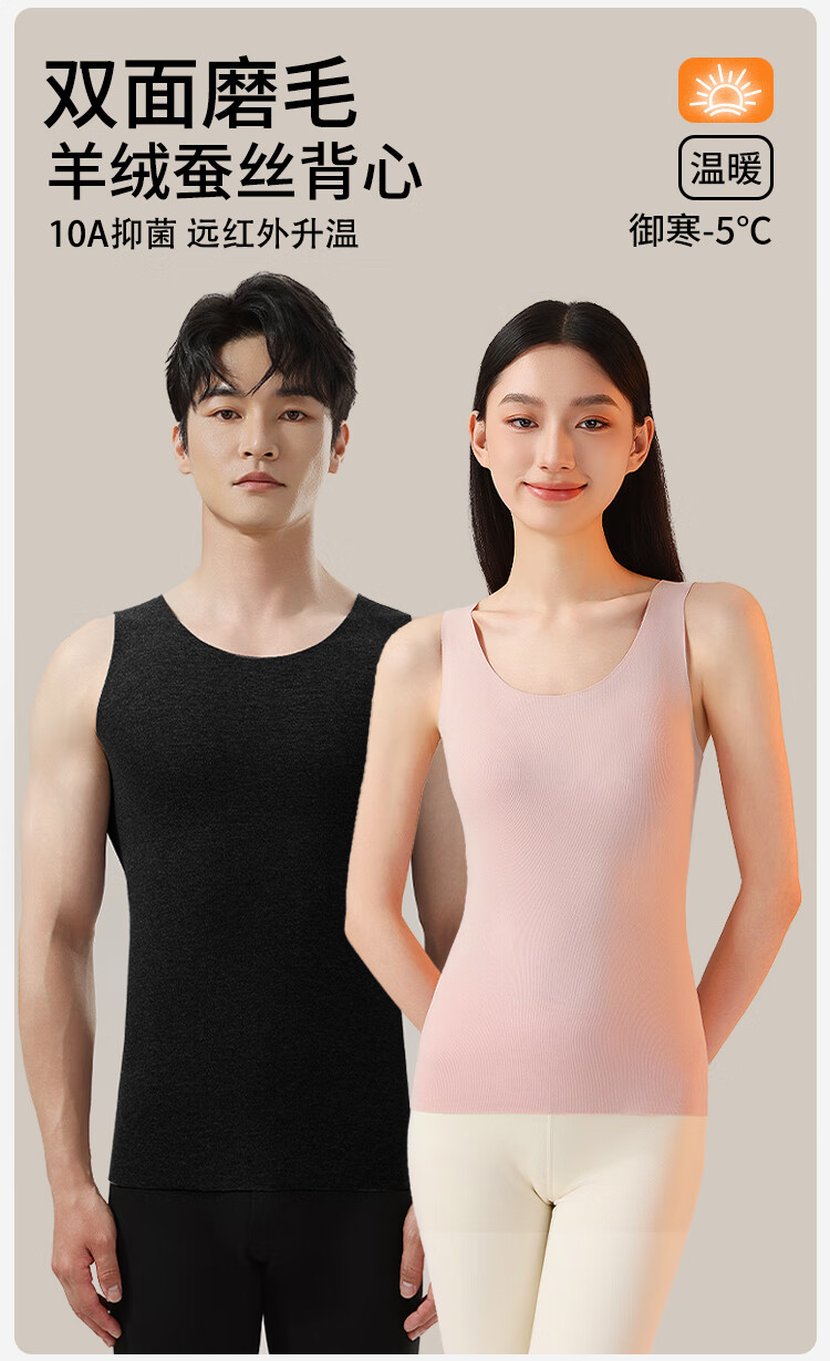 都市丽人2件德绒保暖背心男士背心含羊绒蚕丝秋冬加绒加厚打底无痕马甲2XL