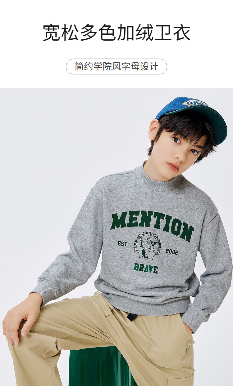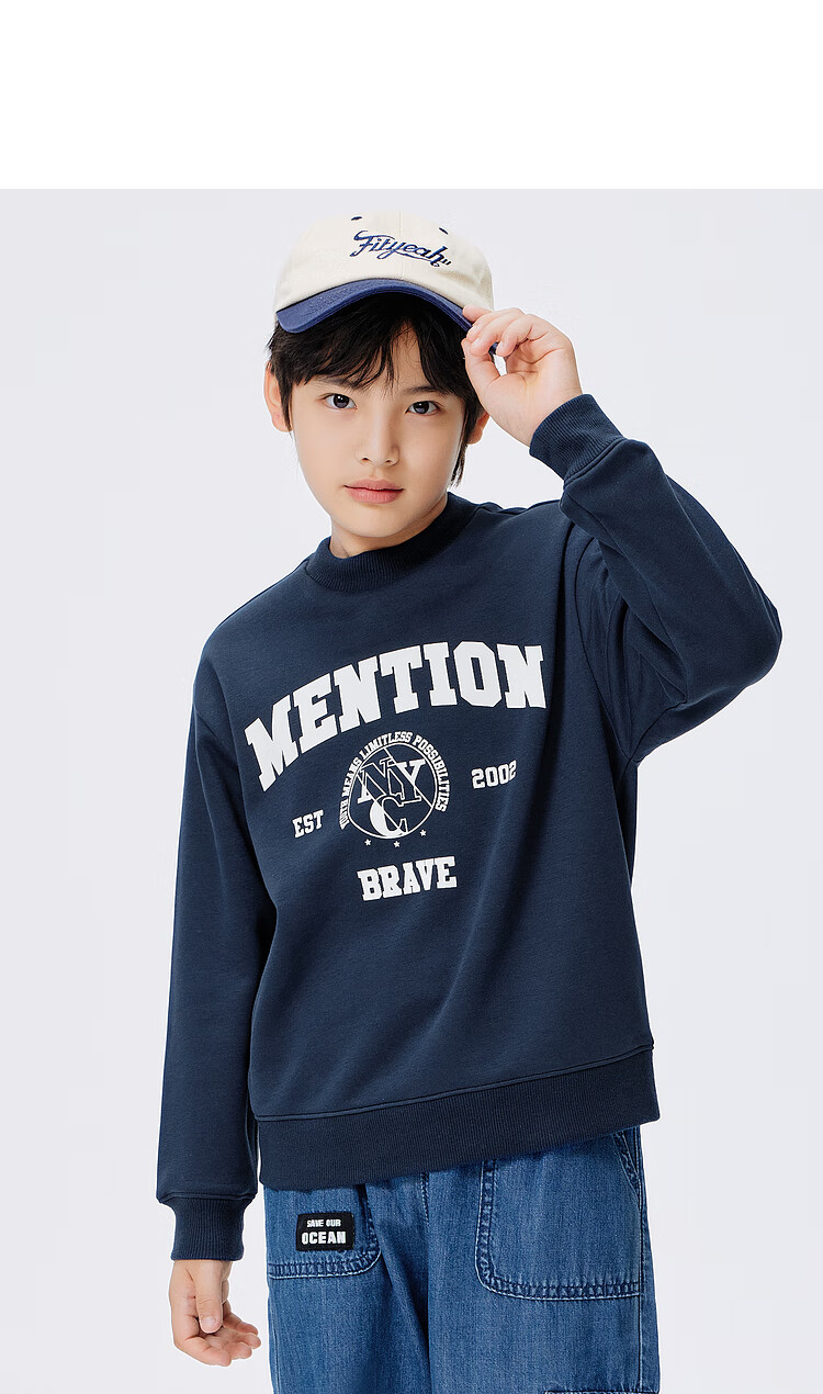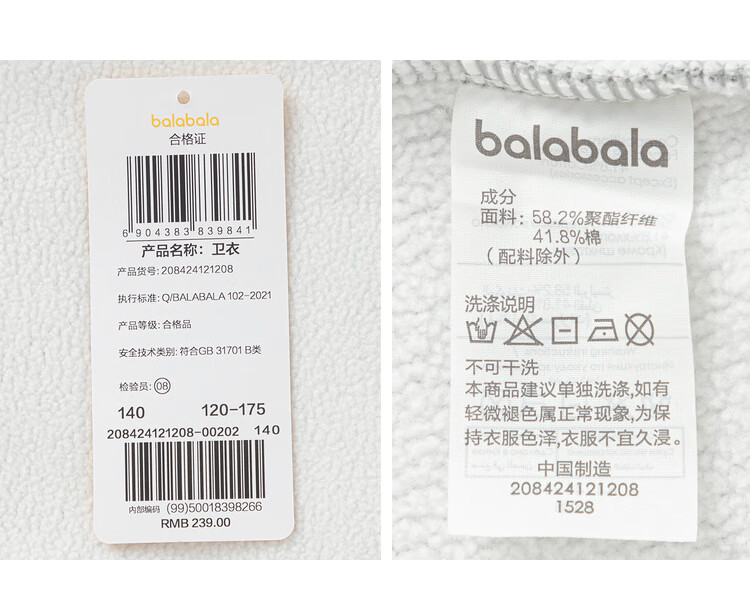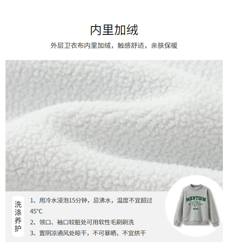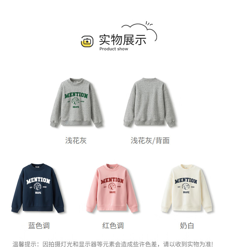 Balabala children's clothing boys' sweatshirts children's autumn and winter 2024 medium and large children's tops plus velvet girls' round neck trendy 208424121208