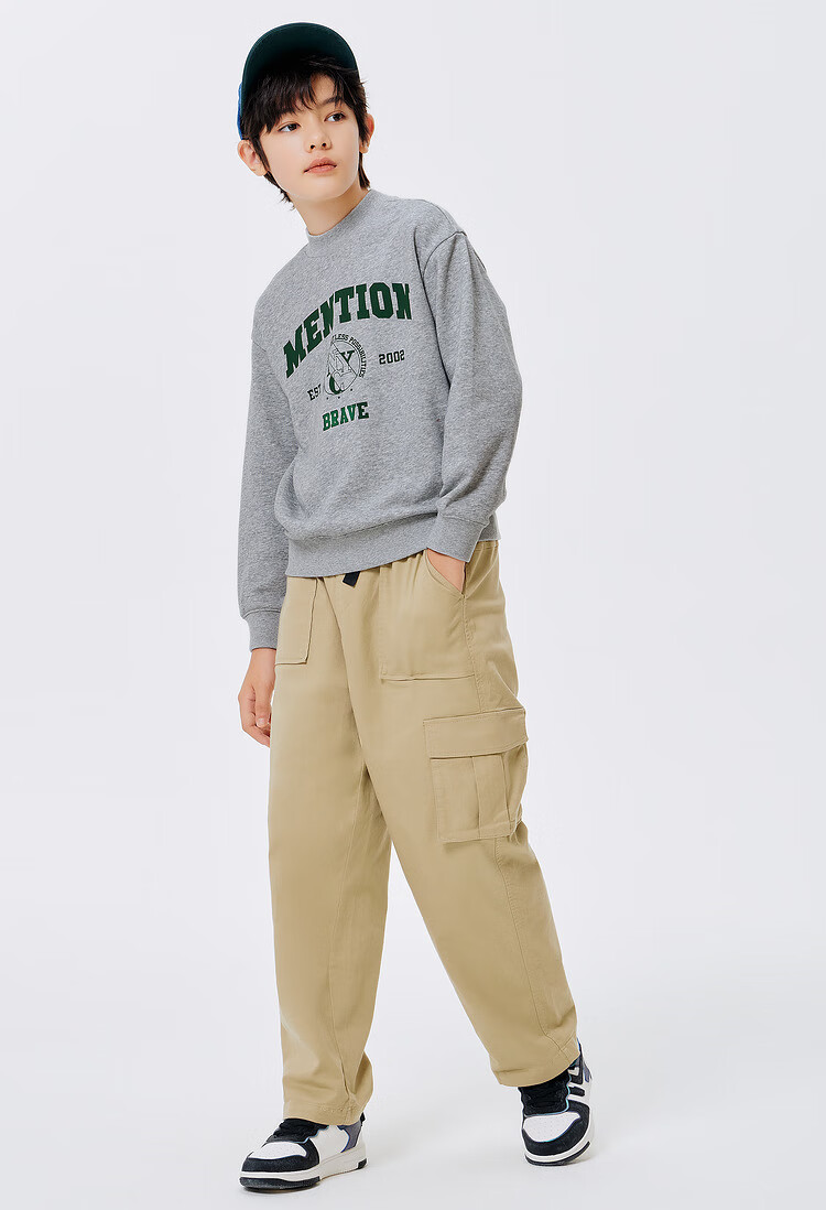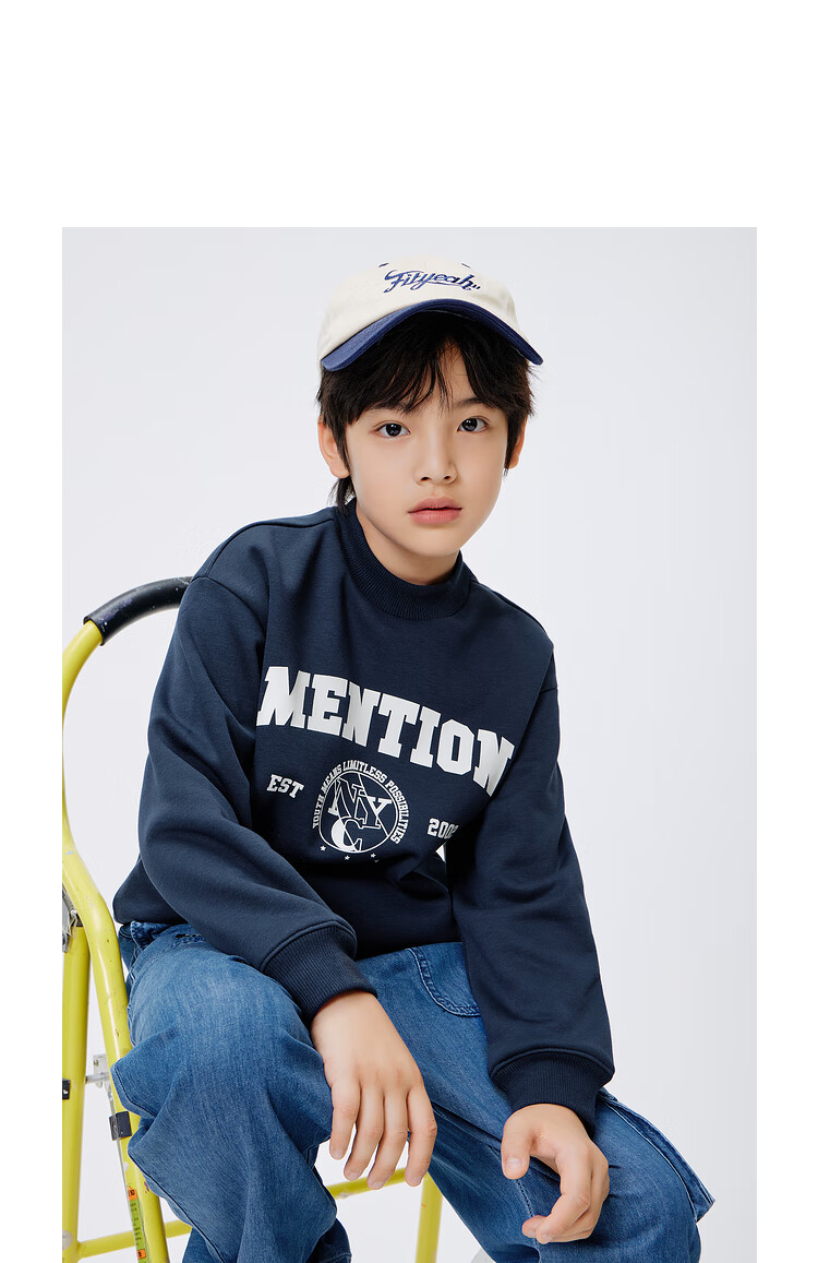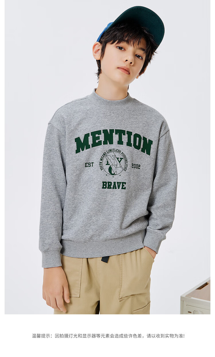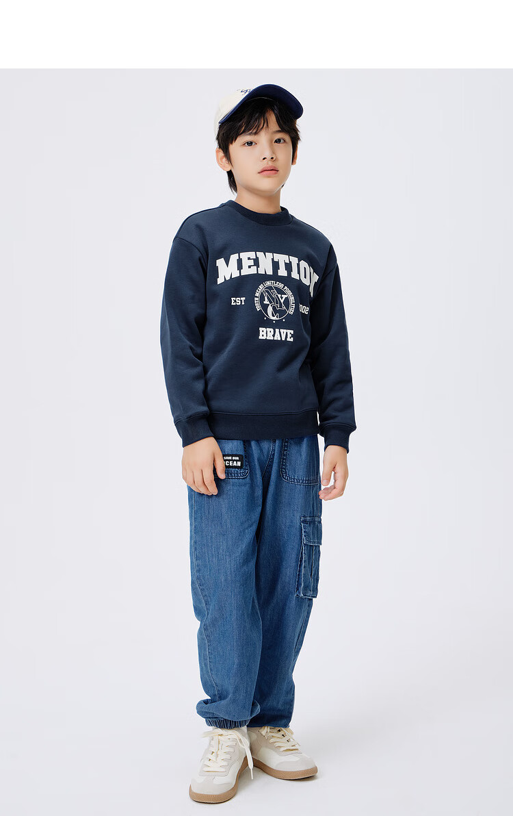 Balabala children's clothing boys' sweatshirts children's autumn and winter 2024 medium and large children's tops plus velvet girls' round neck trendy 208424121208