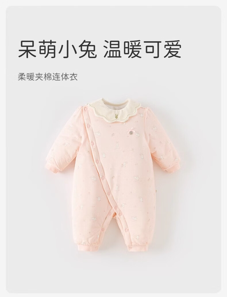 戴维贝拉新生儿夹棉加厚爬服秋装女宝宝连体衣婴儿衣服