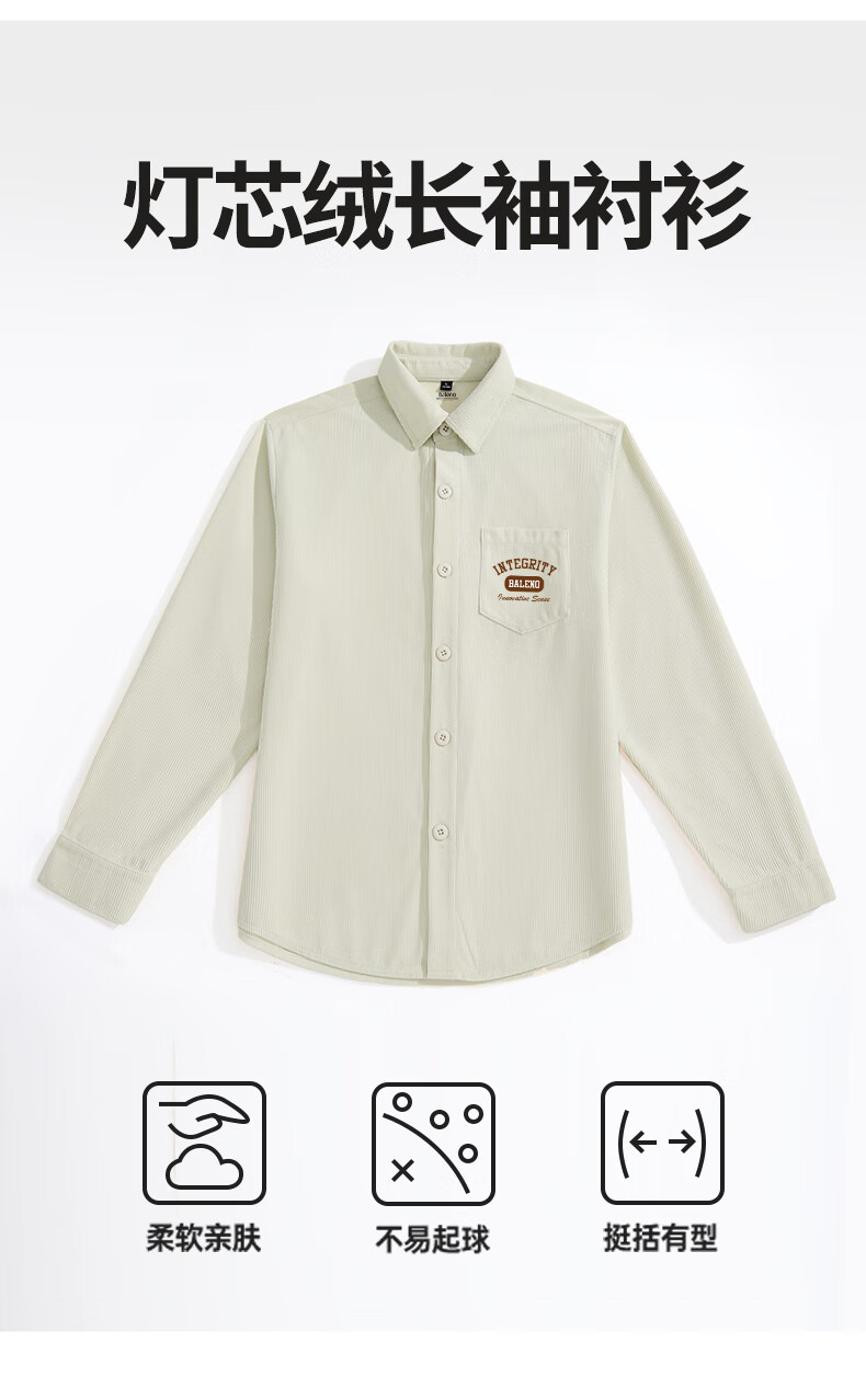 班尼路(Baleno)衬衫男士秋季重磅260G翻领内搭开衫情侣百搭外穿长袖韩版潮流外套
