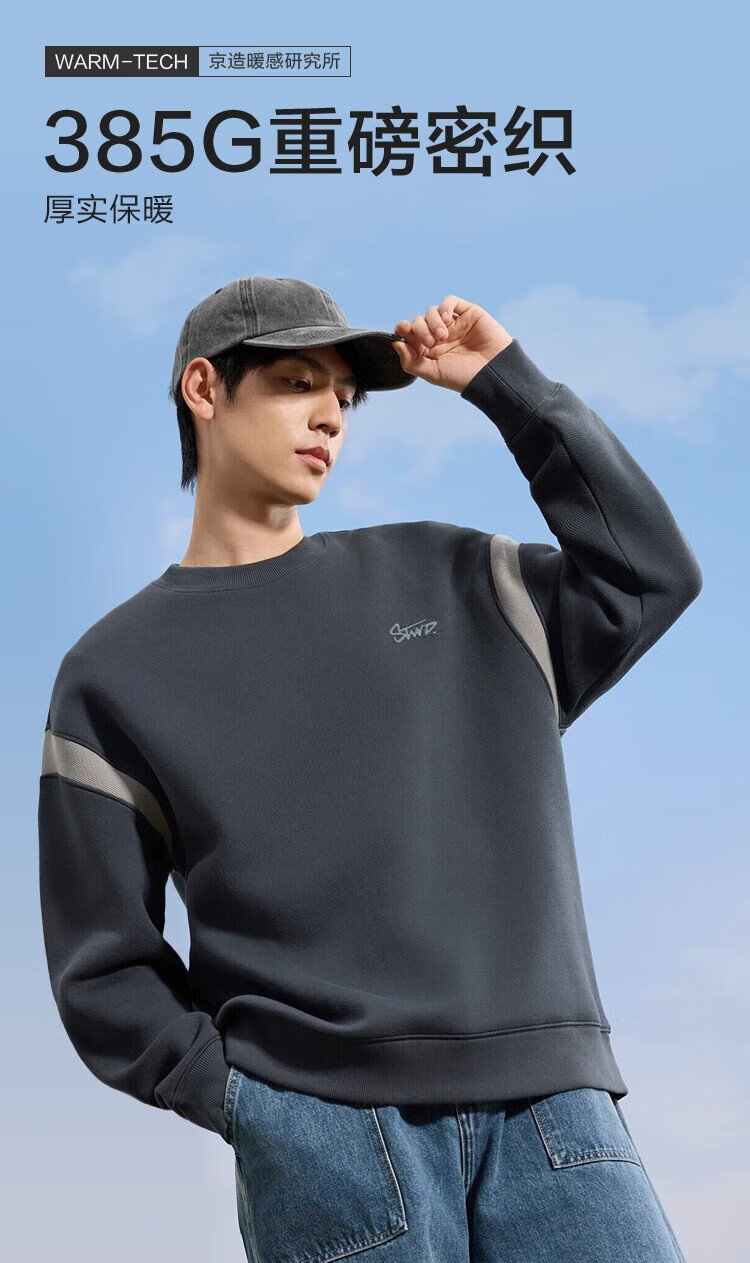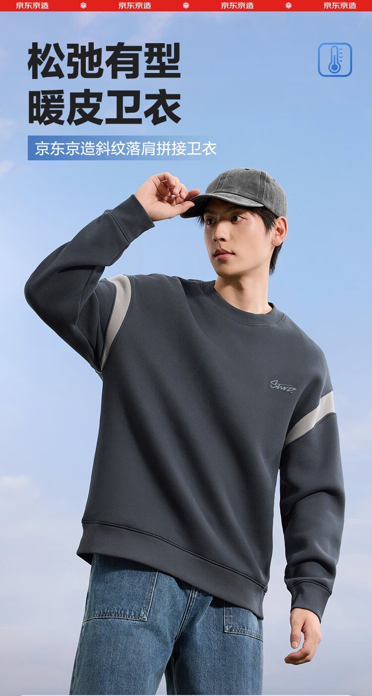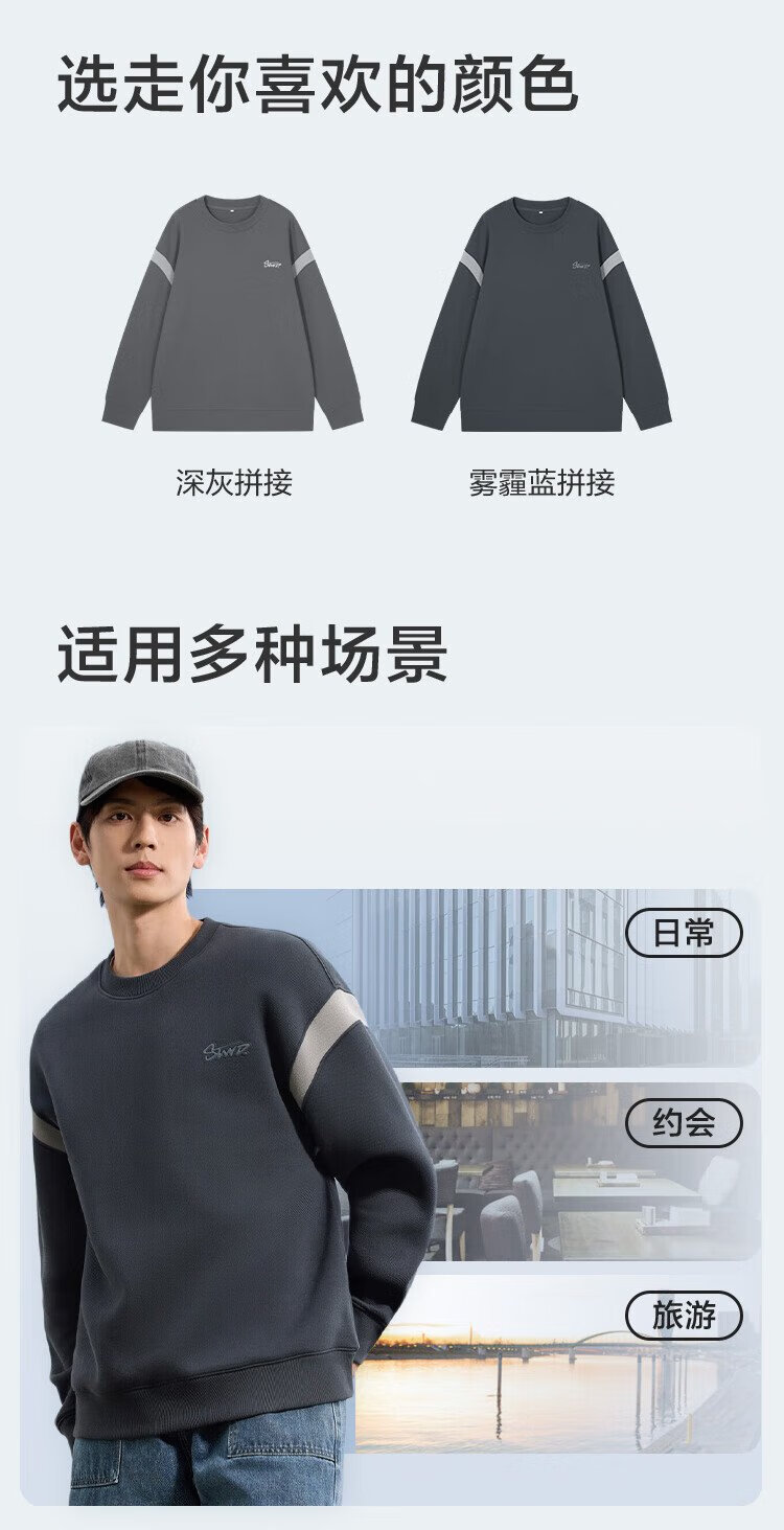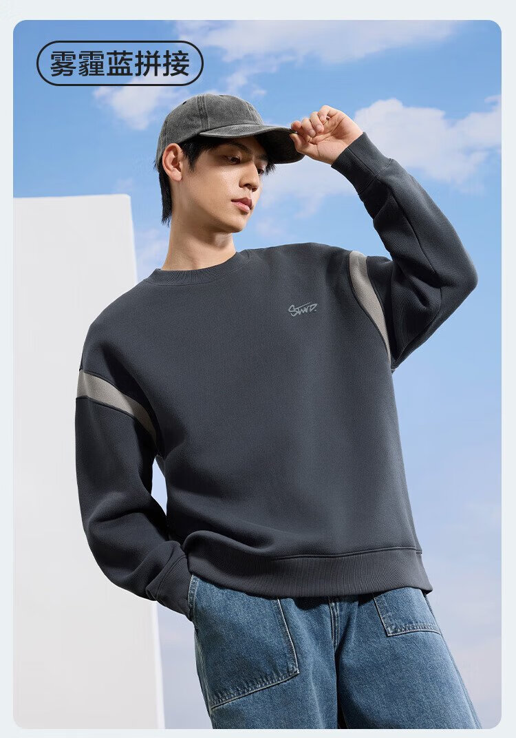 京东京造卫衣男圆领长袖t恤秋季外套潮流衣服打底衫男装 雾霾蓝 L