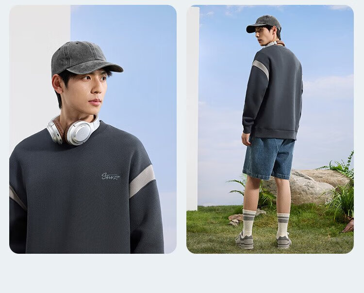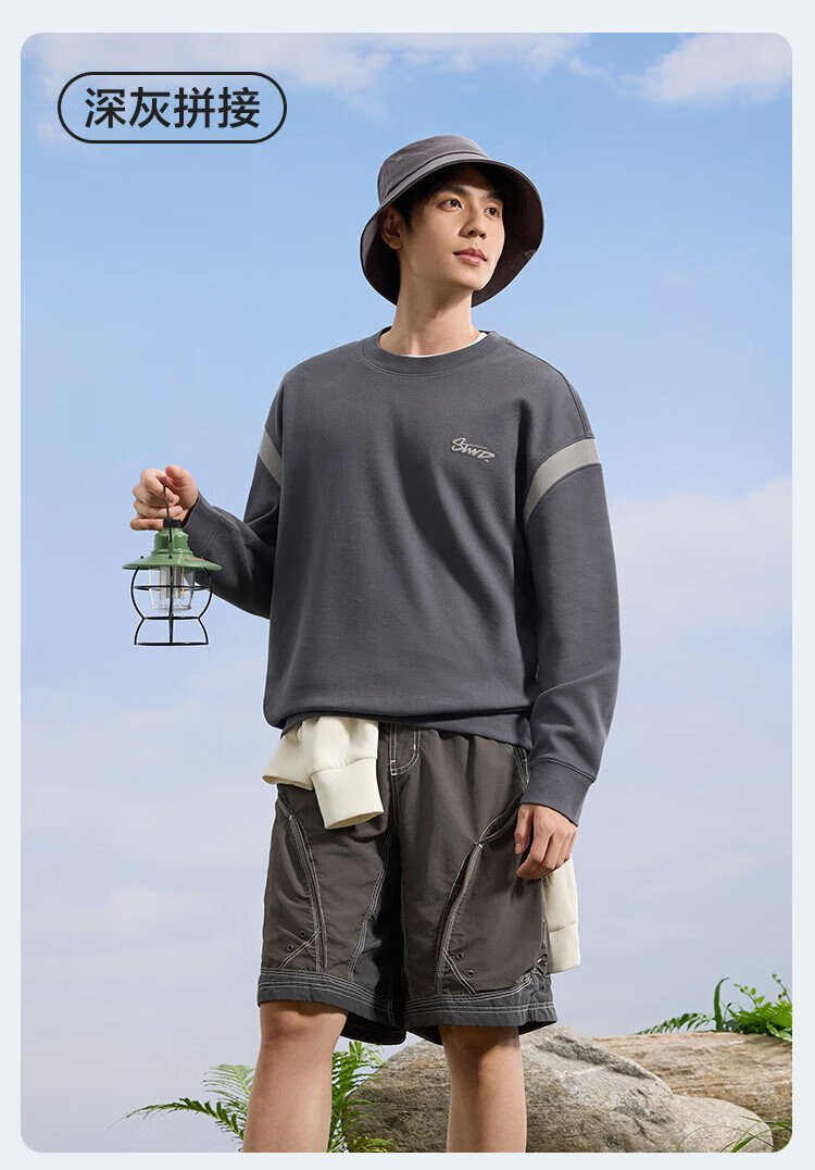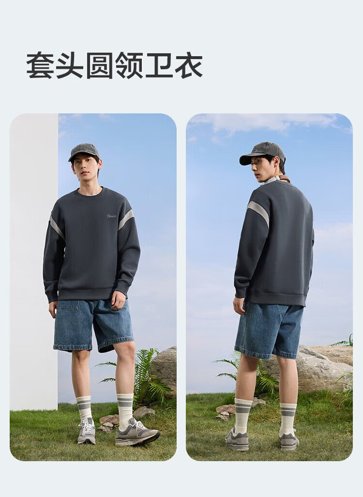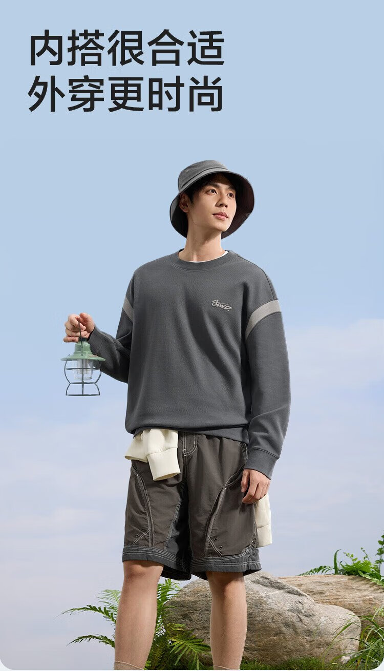 京东京造卫衣男圆领长袖t恤秋季外套潮流衣服打底衫男装 雾霾蓝 L