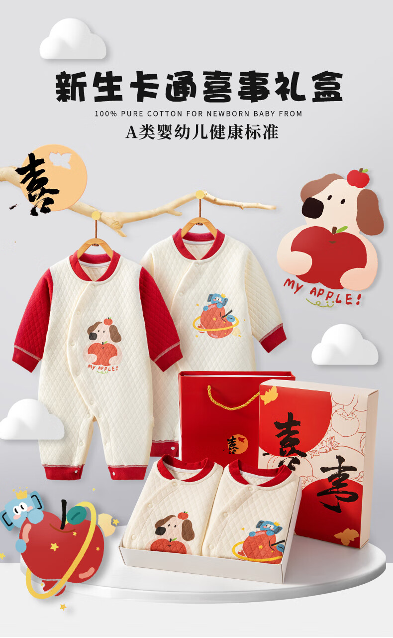 班杰威尔新生儿礼盒婴儿衣服春秋宝宝满月见面礼周岁服73