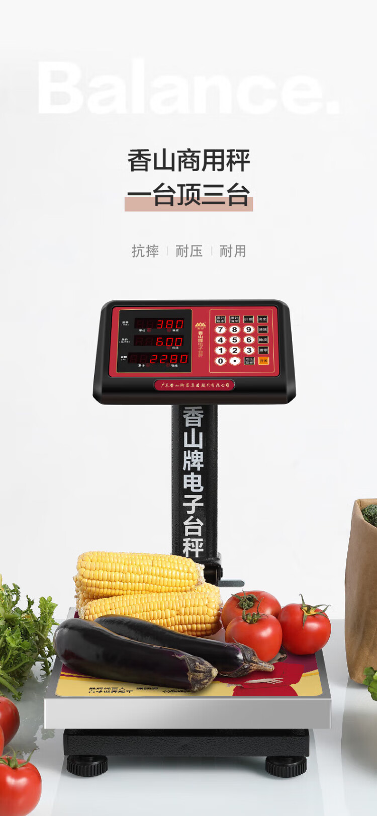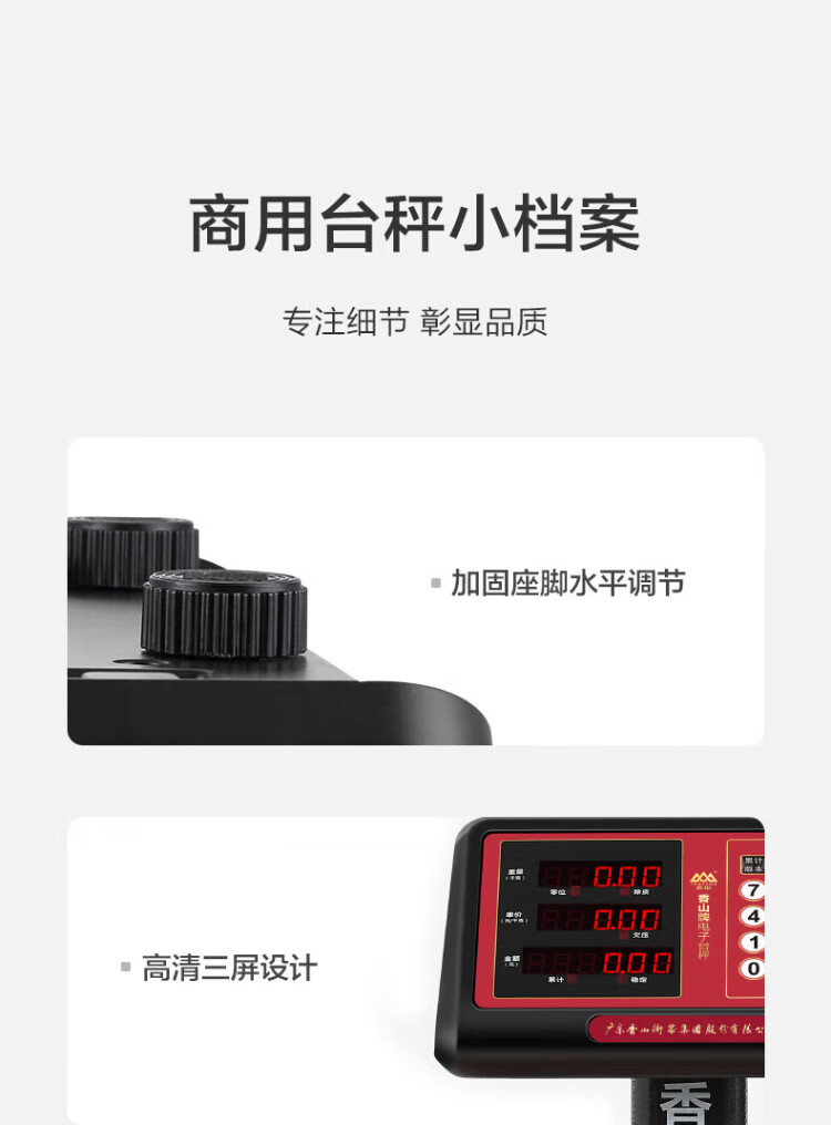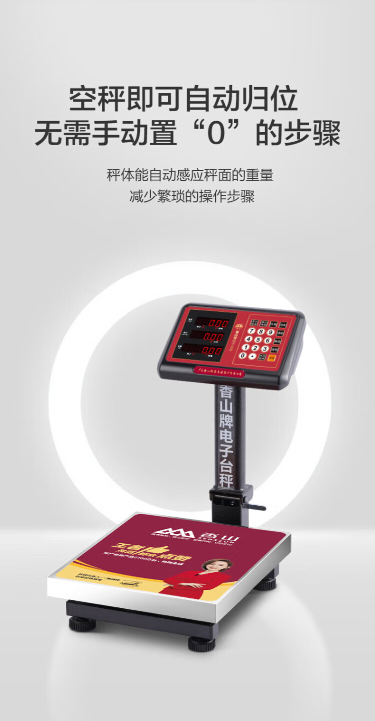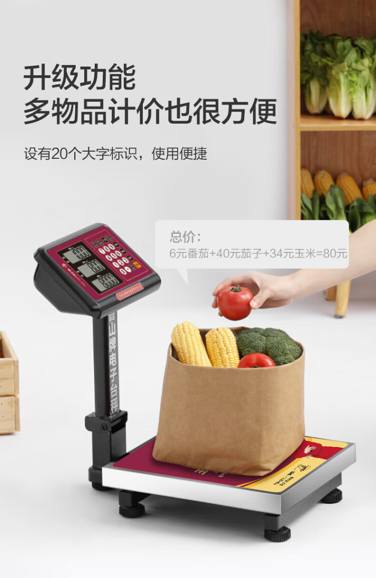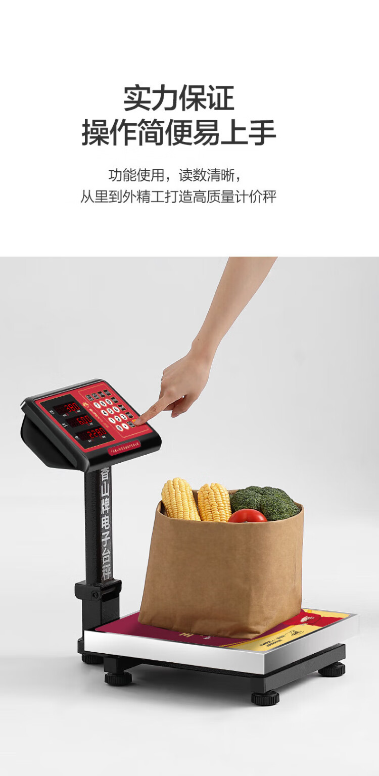 香山电子秤商用电子台秤 磅秤高精度菜秤计数秤计价 60kg/20g LED红字【室内使用】
