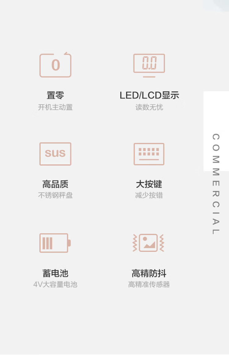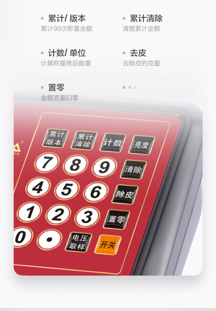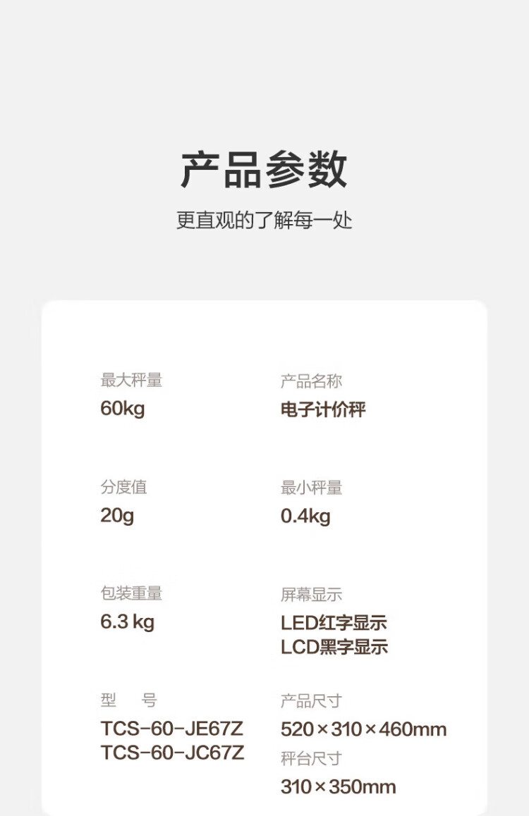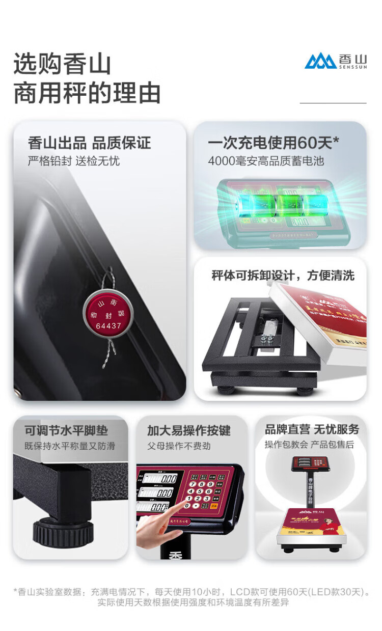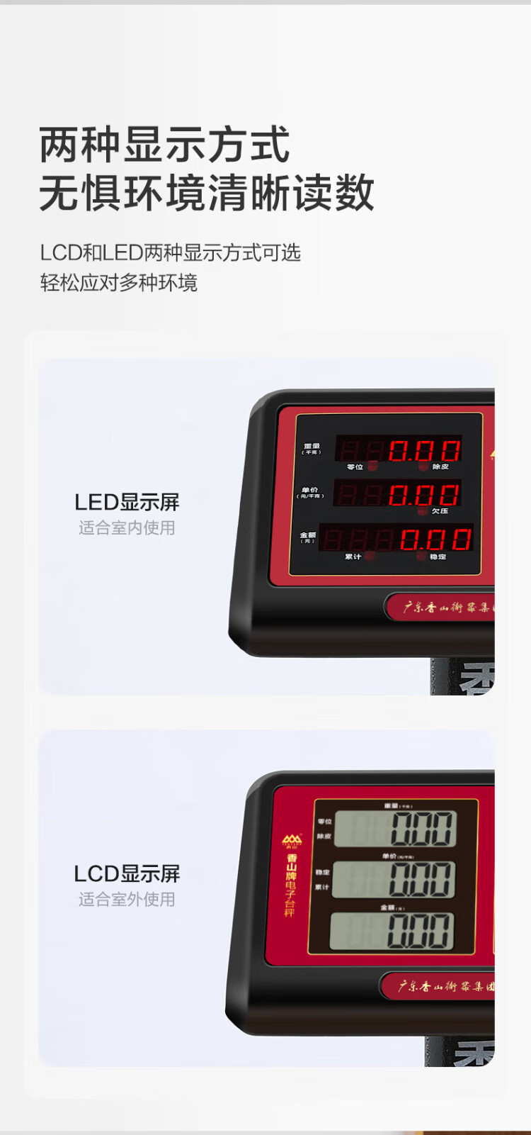 香山电子秤商用电子台秤 磅秤高精度菜秤计数秤计价 60kg/20g LED红字【室内使用】