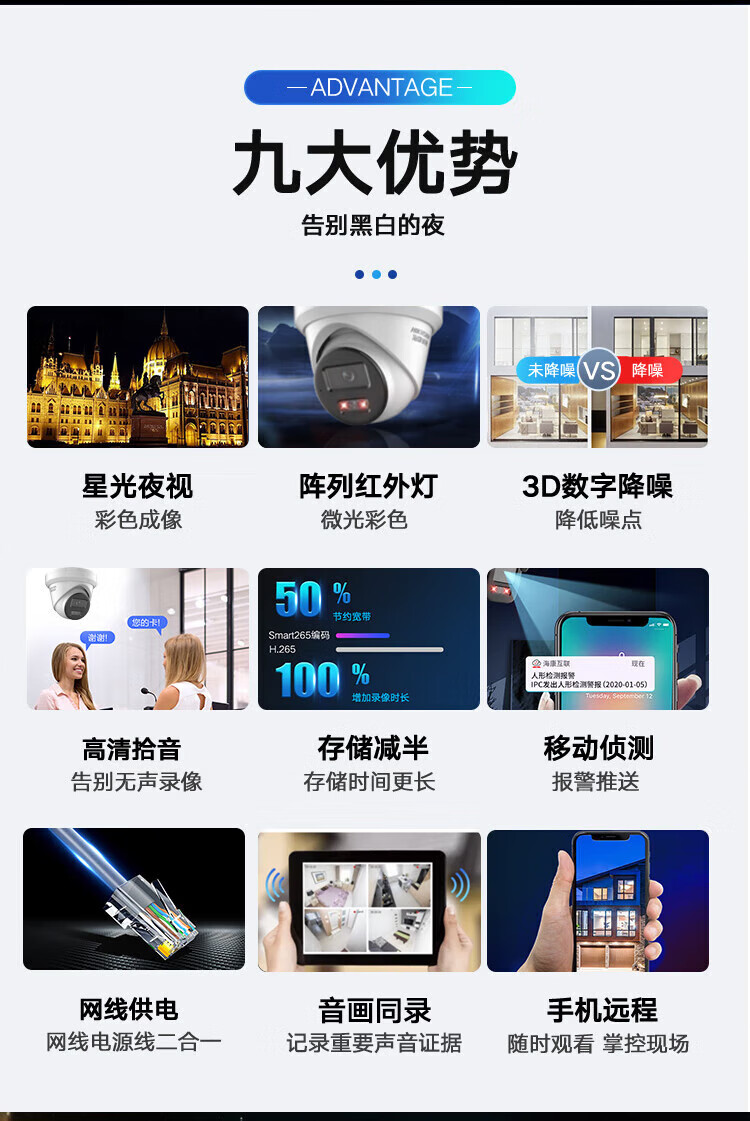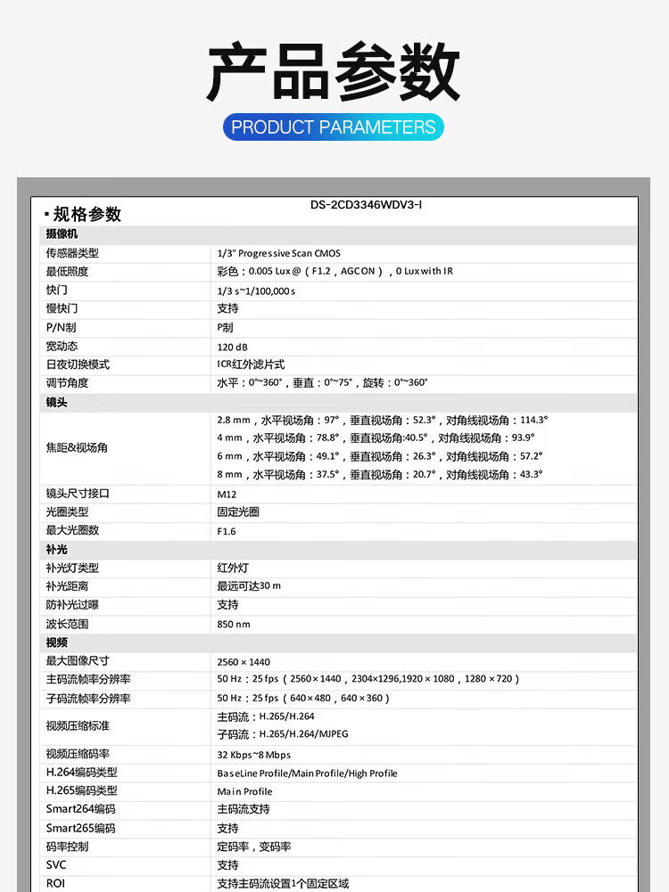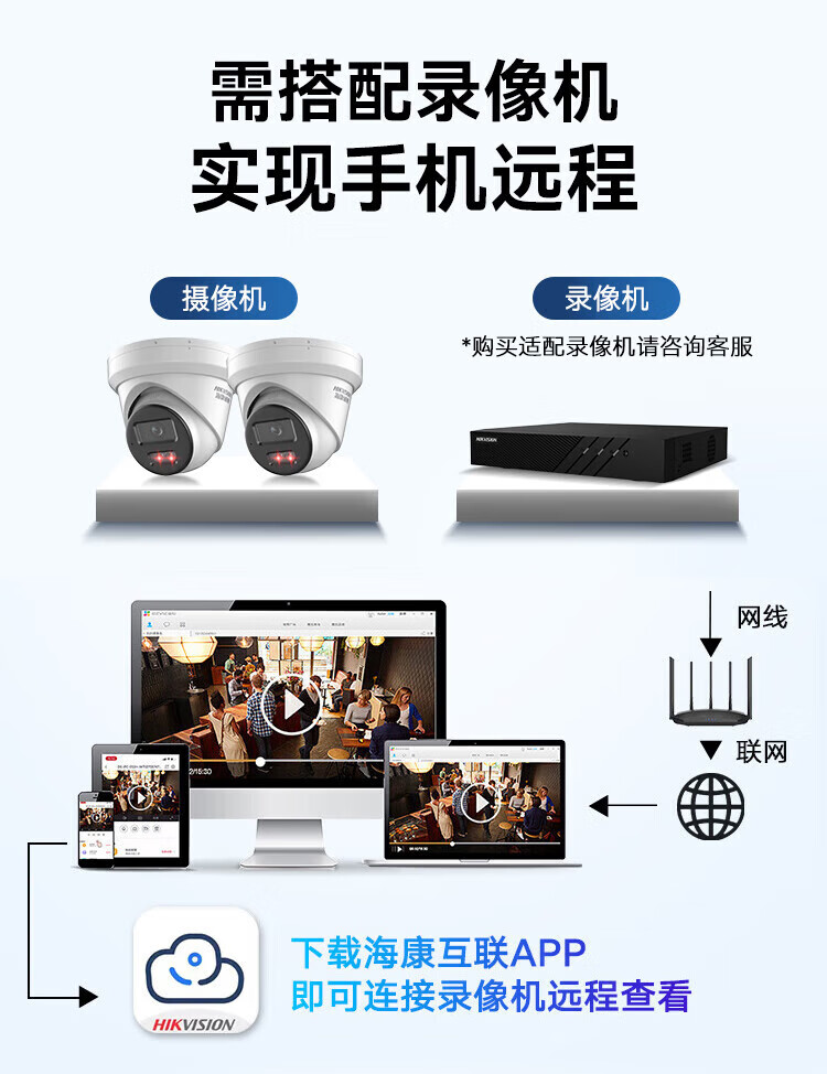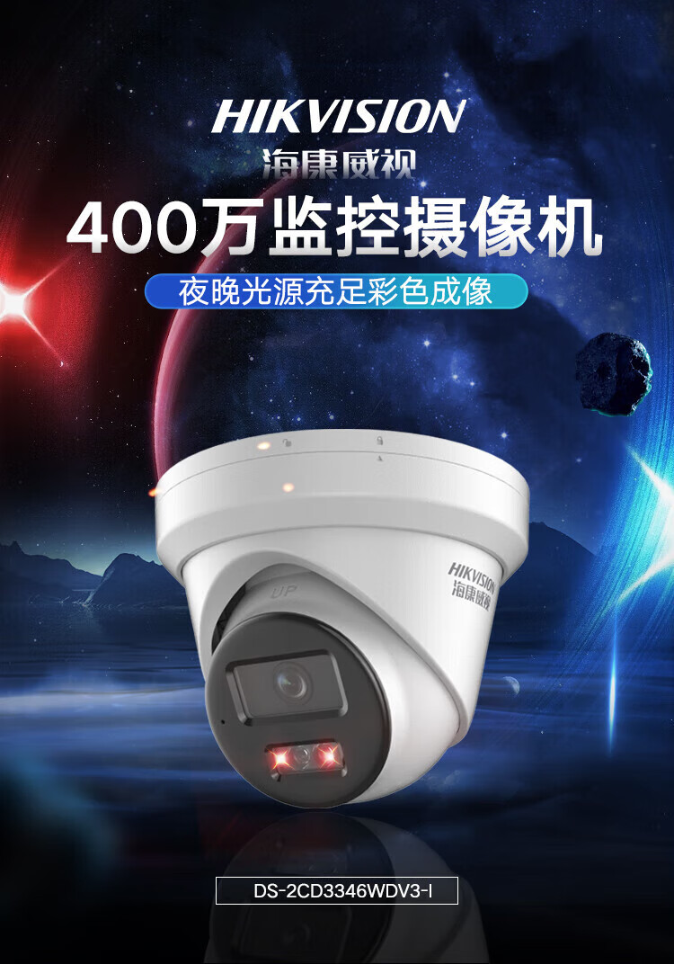 HIKVISION海康威视监控器400万星光夜视室内室外高清可录音网线供电监控器3346WDV3-I 2.8mm